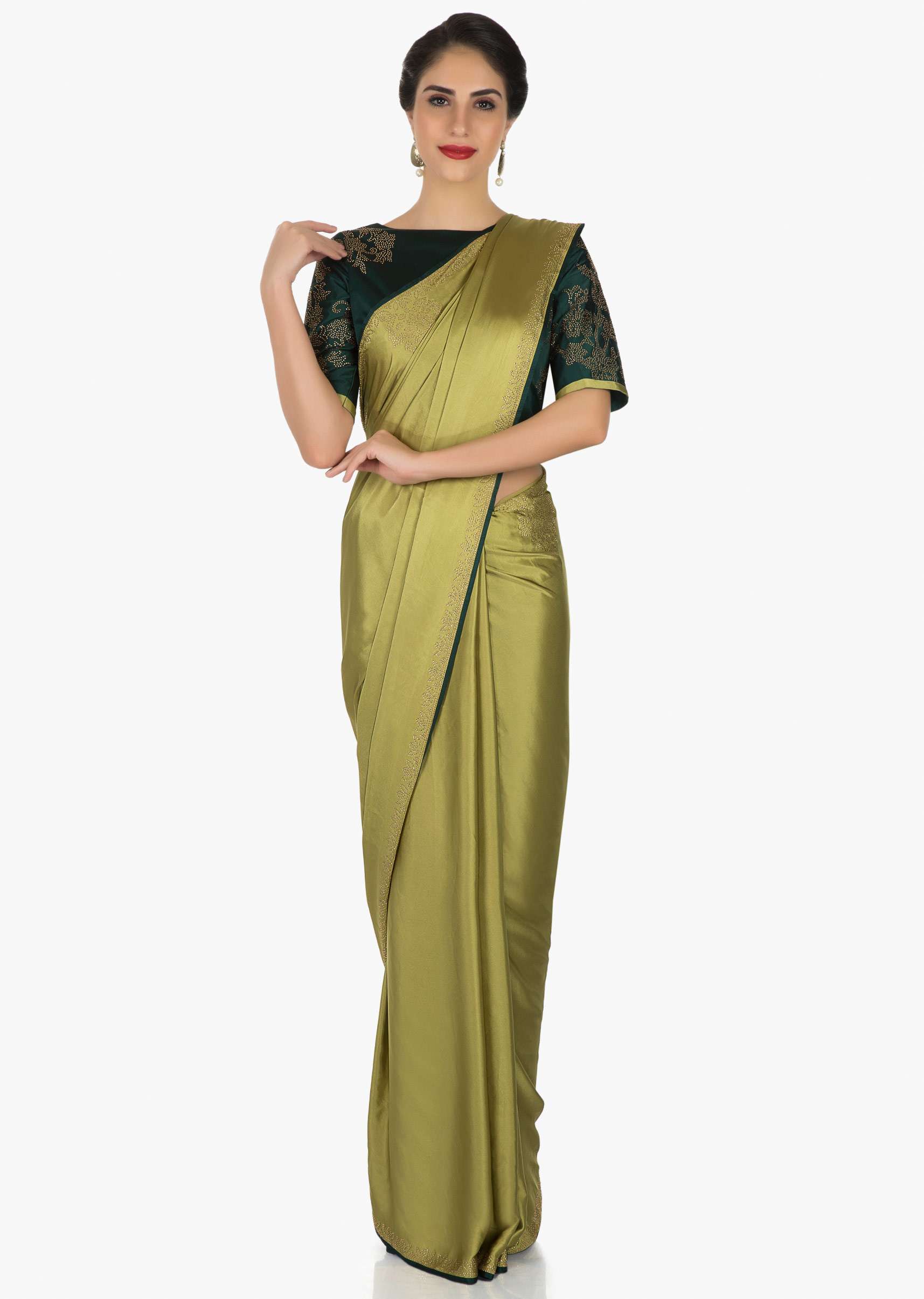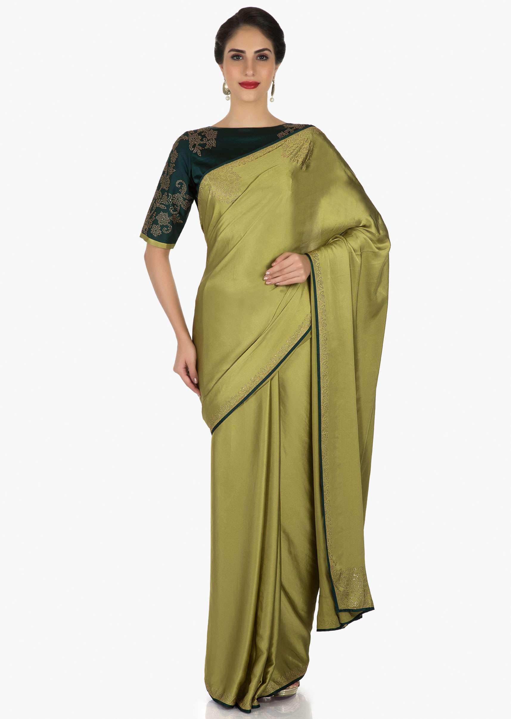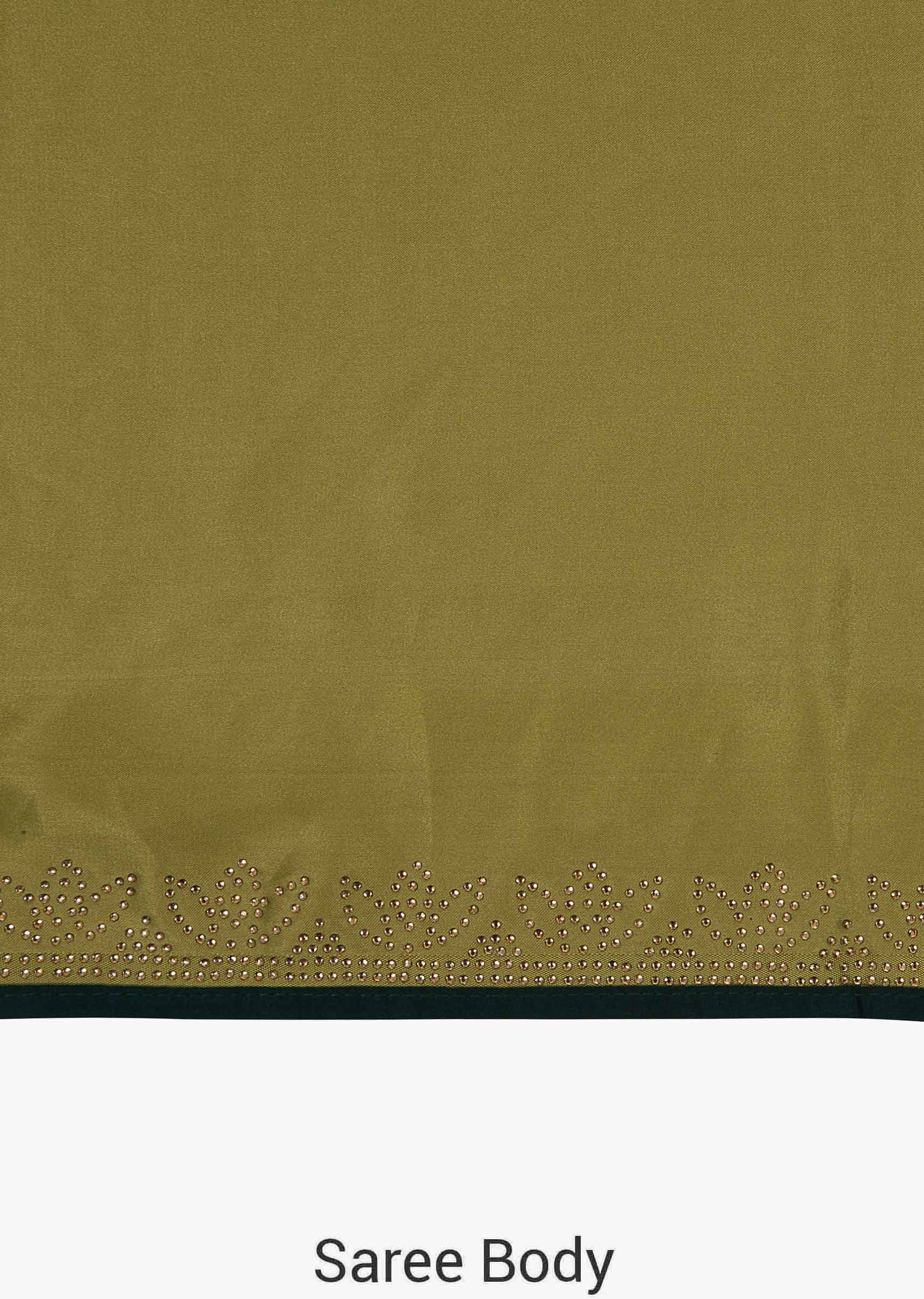 Olive Green Saree Beautified With The Kundan Embroidery Online - Kalki Fashion