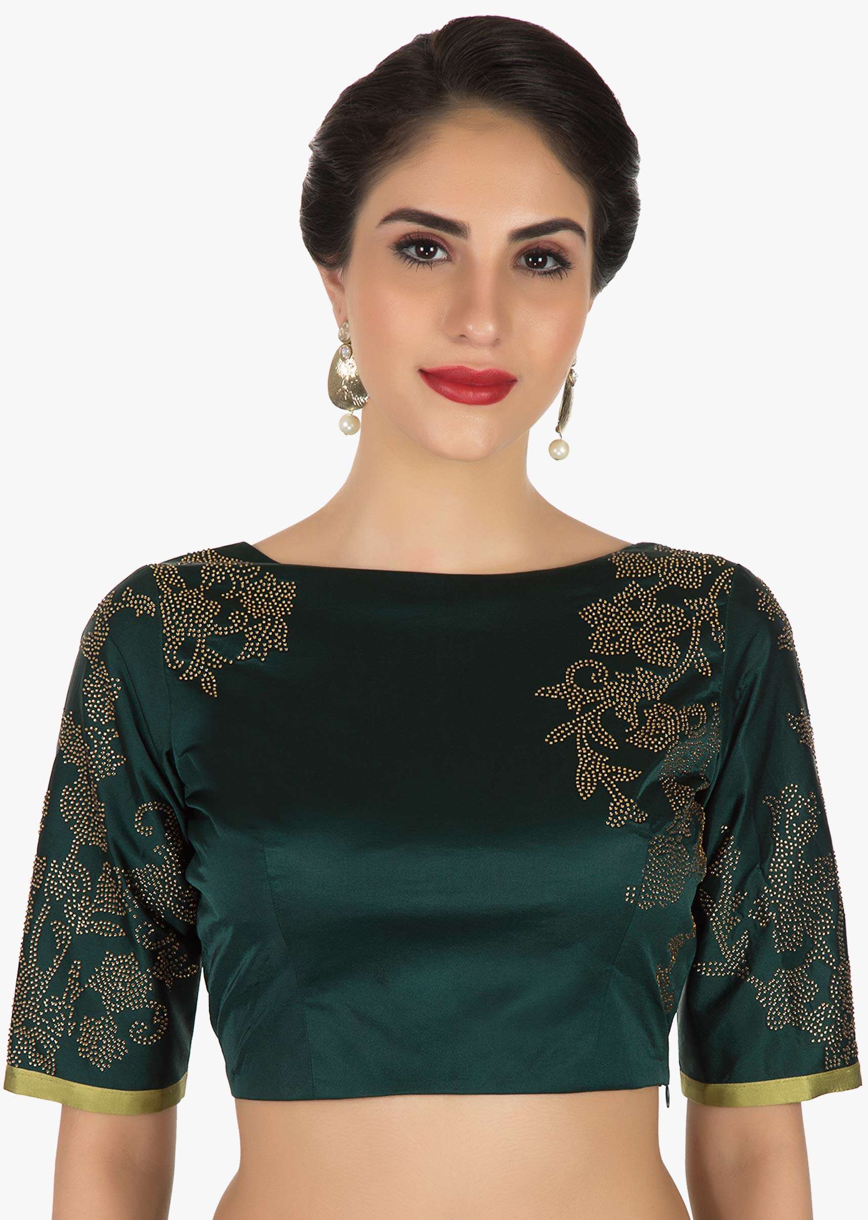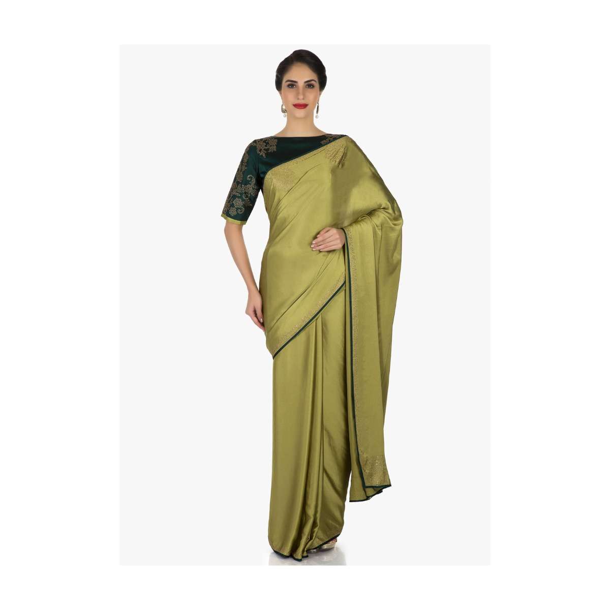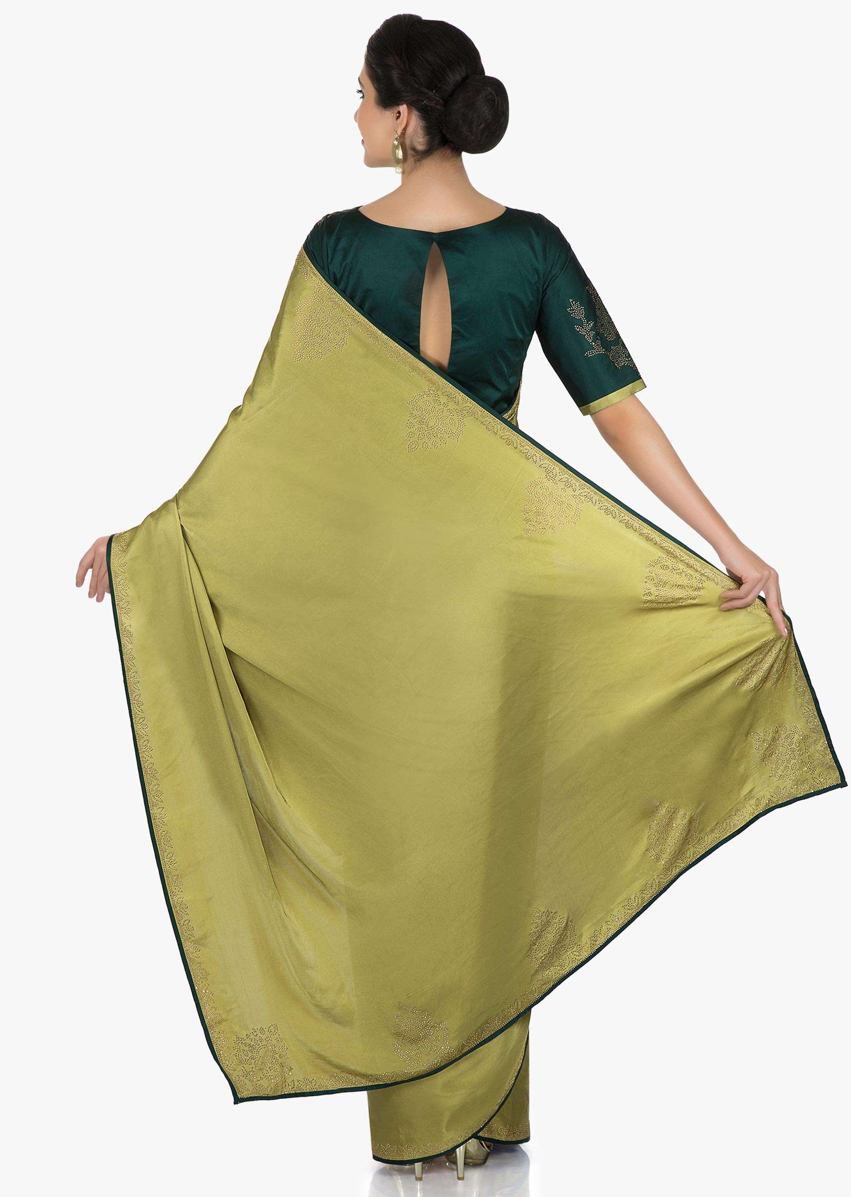 Olive Green Saree Beautified With The Kundan Embroidery Online - Kalki Fashion