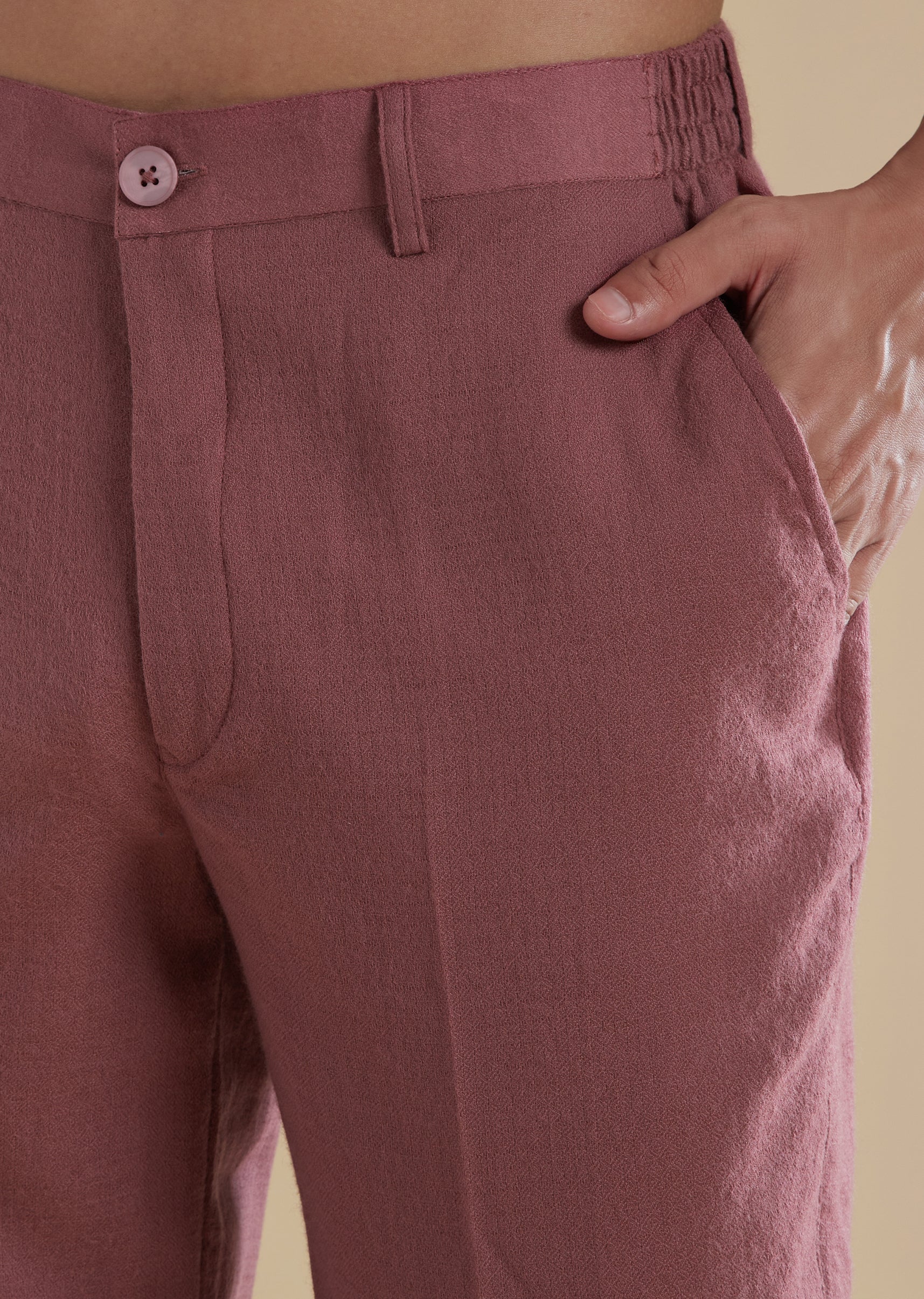 Elegant and refined, this onion pink kurta jacket set is crafted in soft pashmina fabric with a smooth silk blend for a luxurious pastel finish. Perfect for engagement and reception celebrations, it is an ideal choice for a groom’s father seeking a sophisticated and understated festive look. The ensemble is highlighted with delicate thread and resham detailing that enhances its refined charm. Designed with a mandarin collar, full sleeves, and clean front button closures on both the kurta and the bottoms, it offers a polished and graceful silhouette. The matching jacket adds structure and depth, completing a poised and celebration ready outfit. Awarded as the Most Trusted Brand, we're delivering styles you love, just as promised.