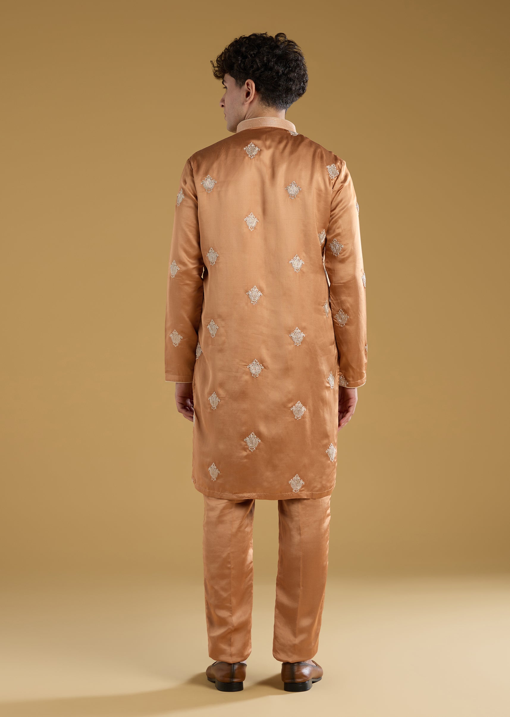 Orange Mens Kurta Set With Thread Motif Detail