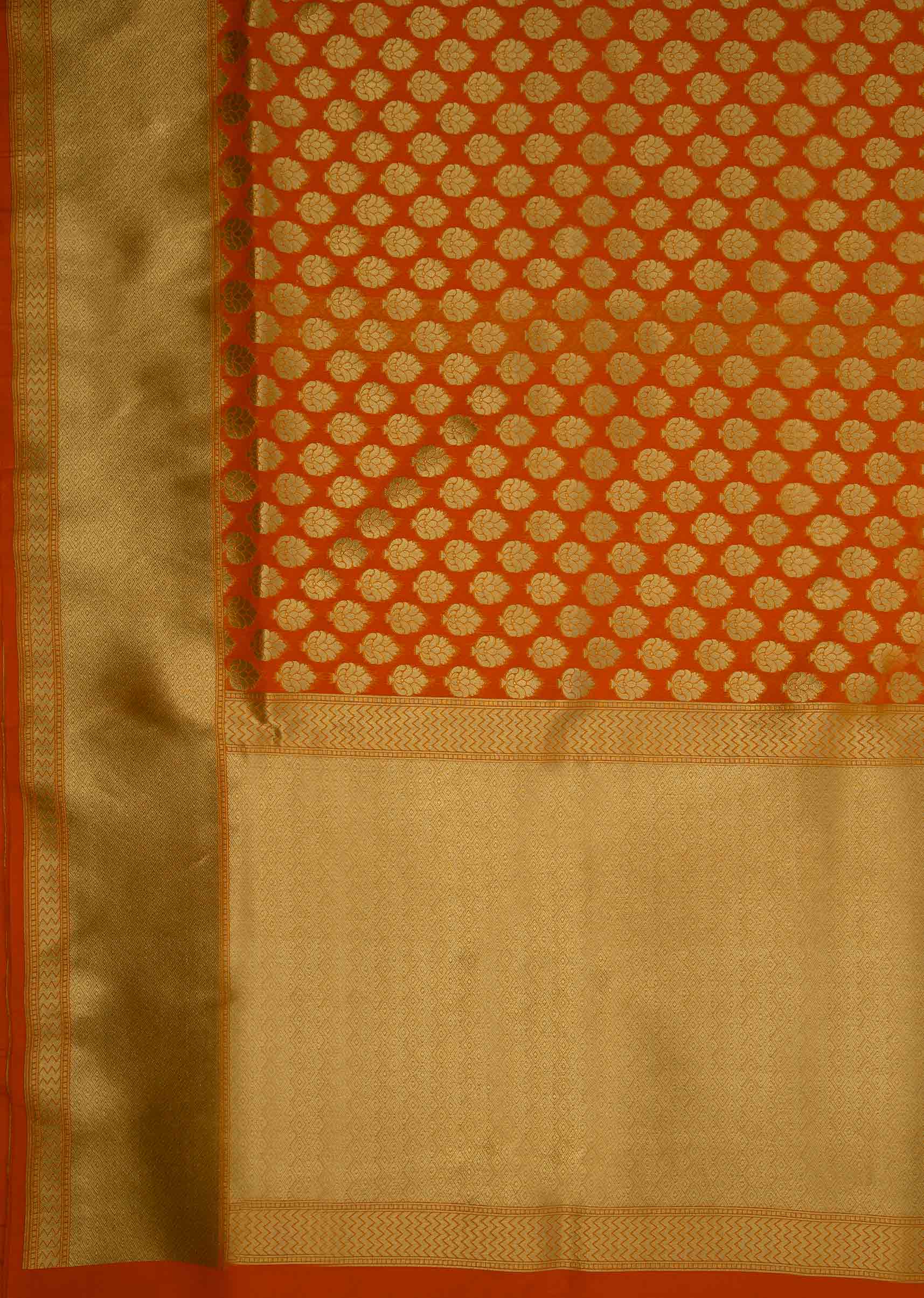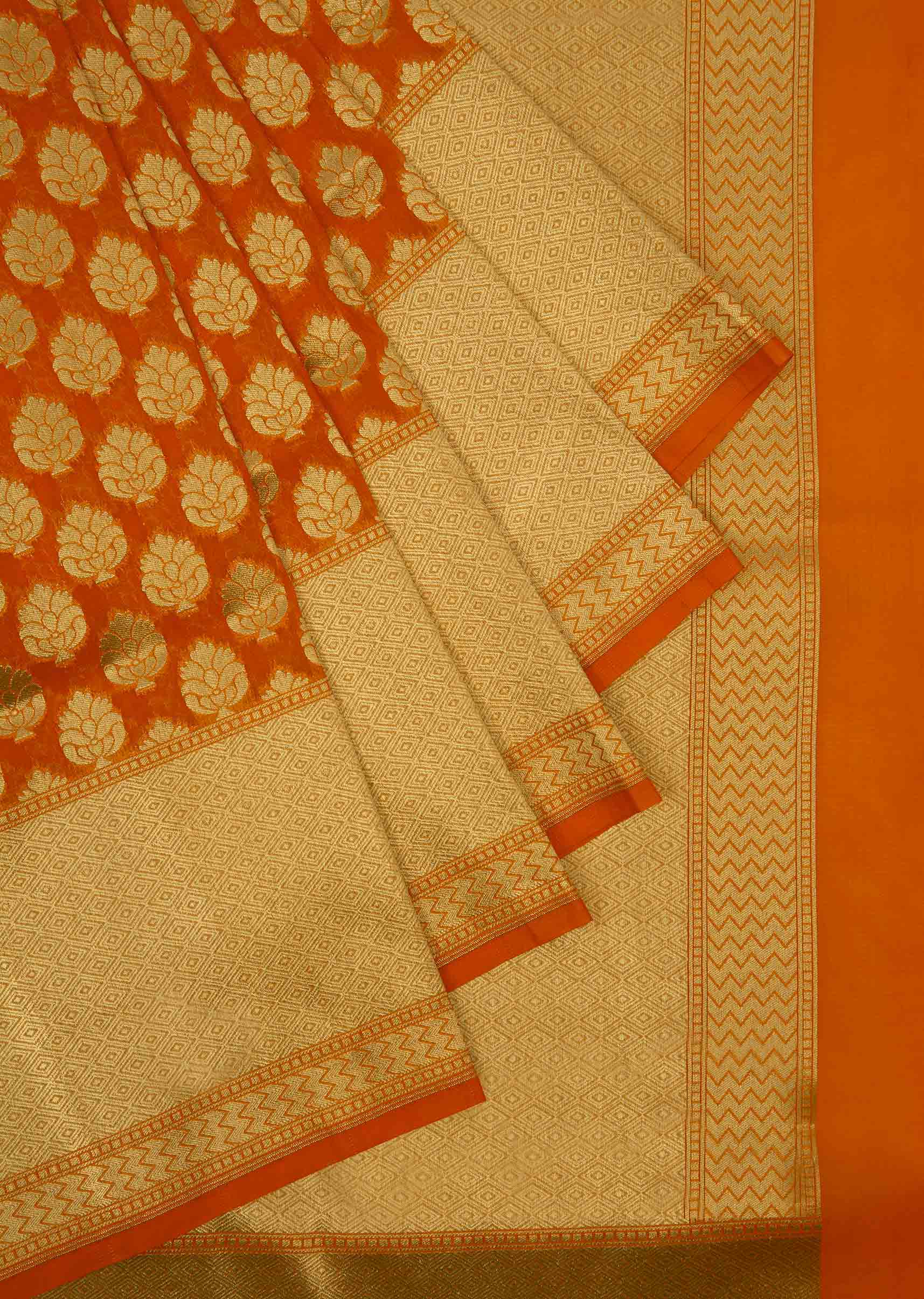 Orange Saree In Chanderi Silk With Weaved Butti Online - Kalki Fashion