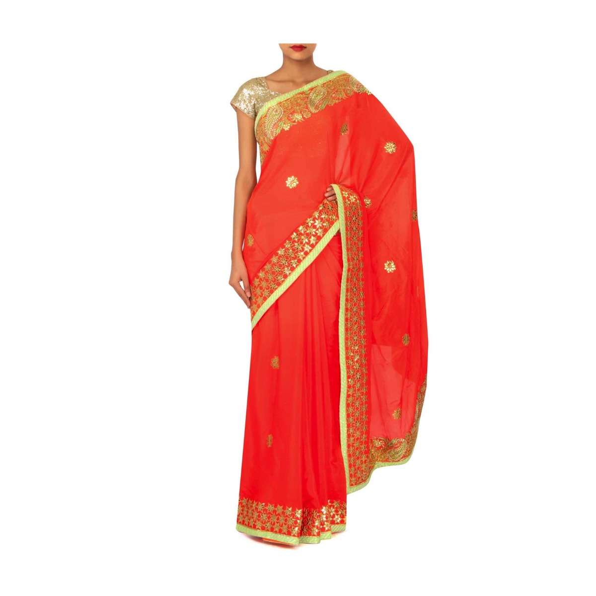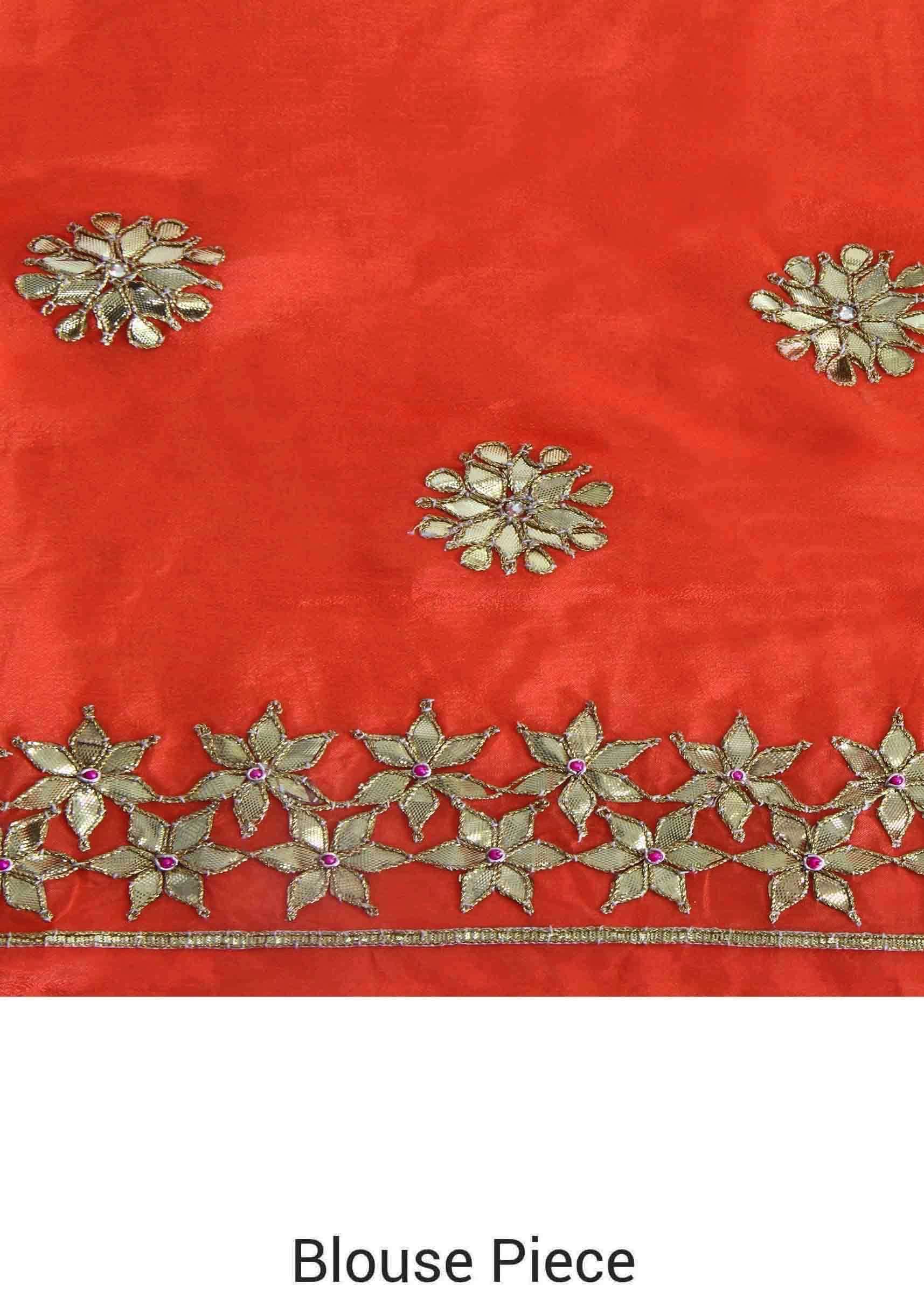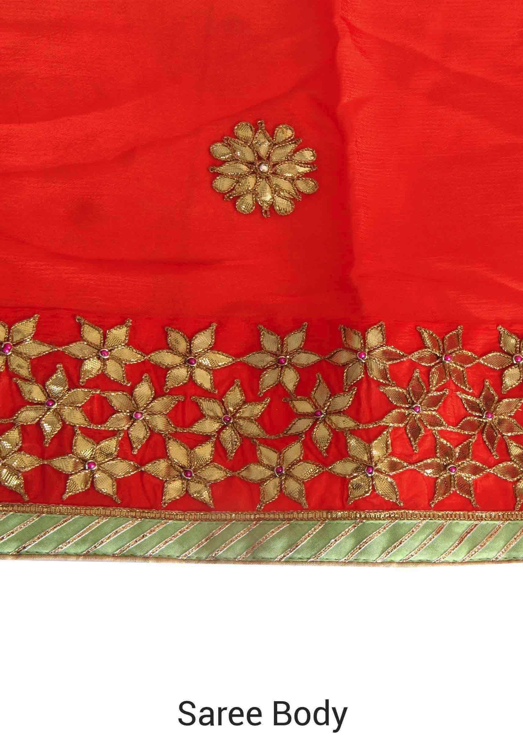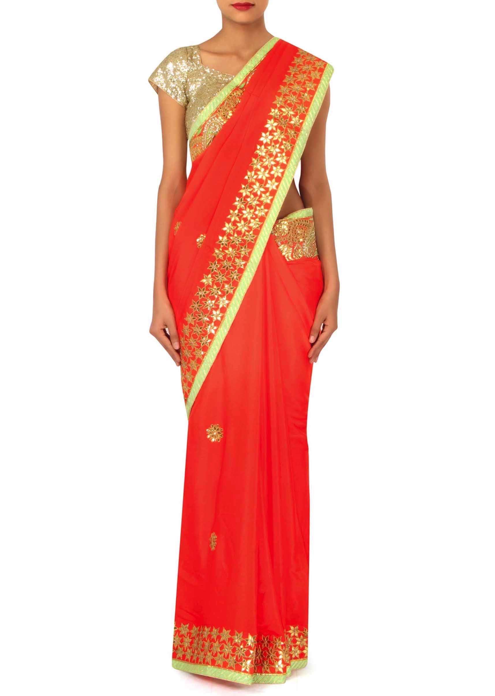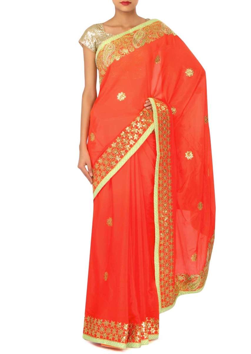Orange Saree With Gotta Patch Embroidered Border Online - Kalki Fashion