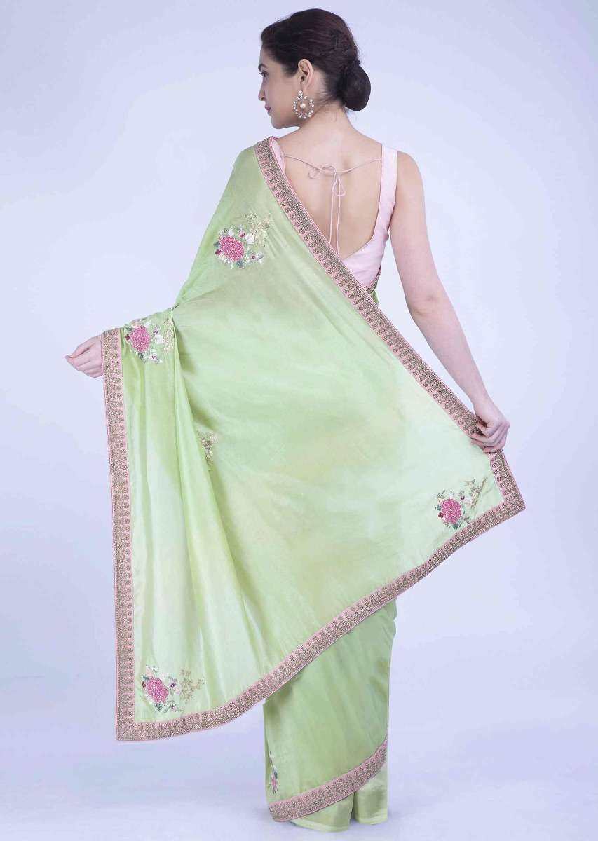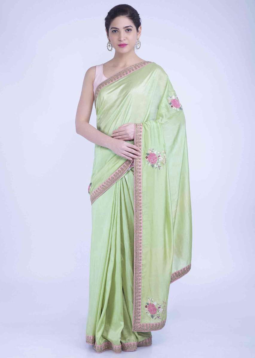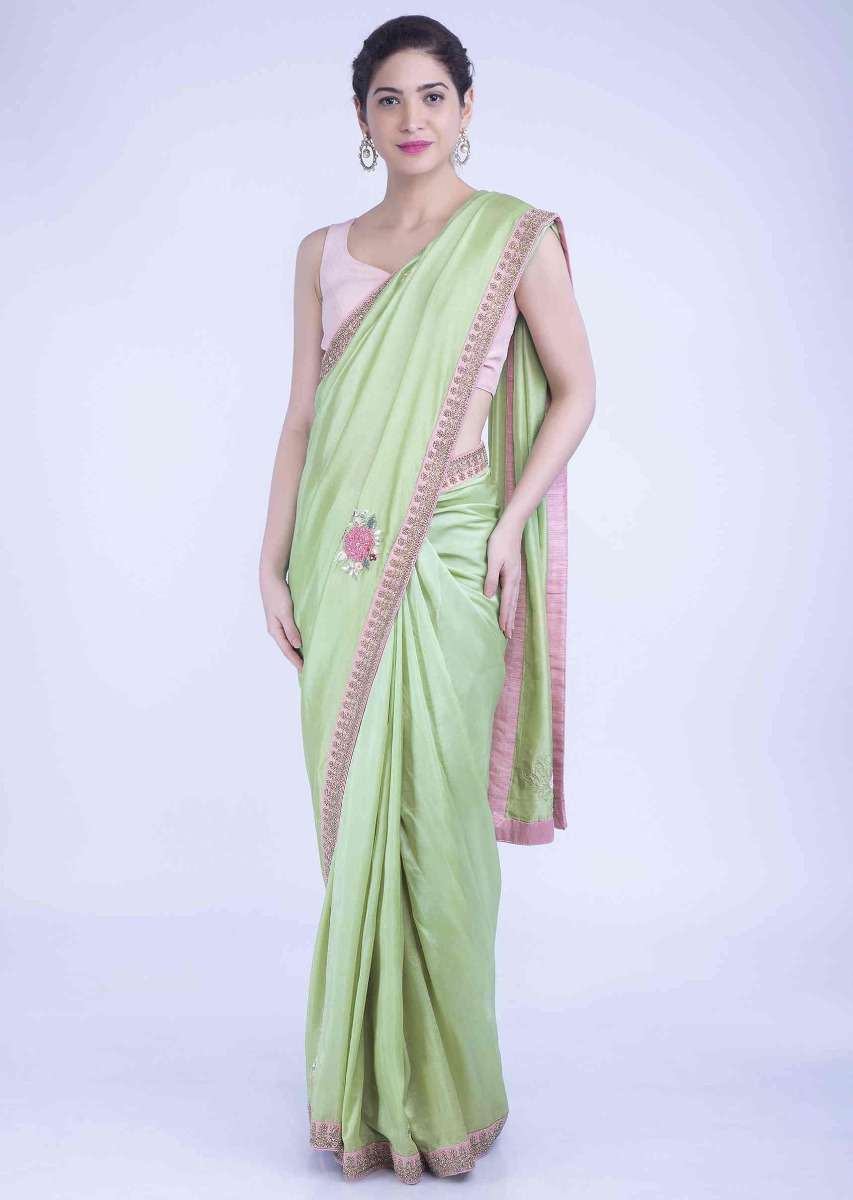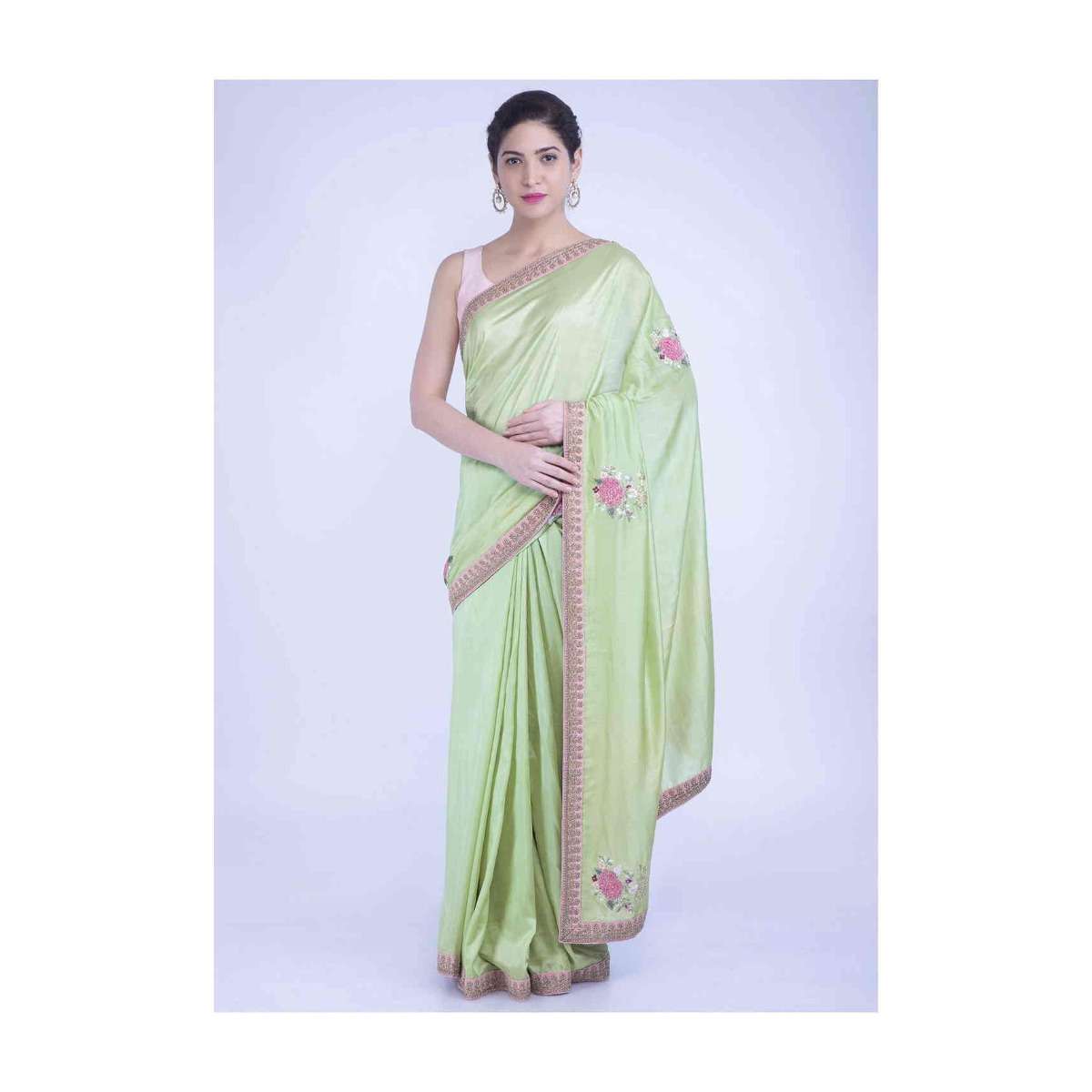Oxfam Green Saree In Silk With Matching Blouse Piece Online - Kalki Fashion