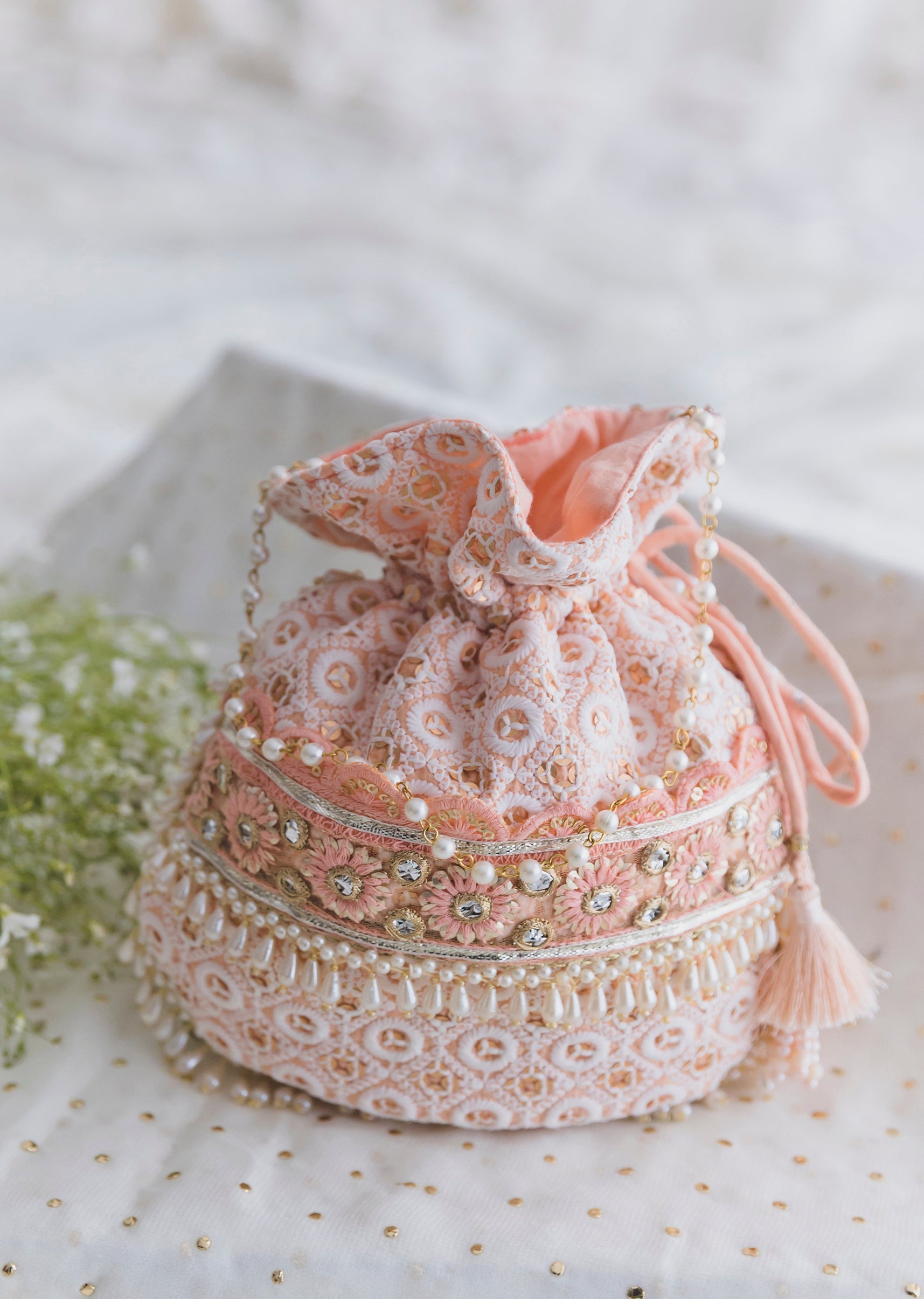 Peach Cotton Potli With Embroidery