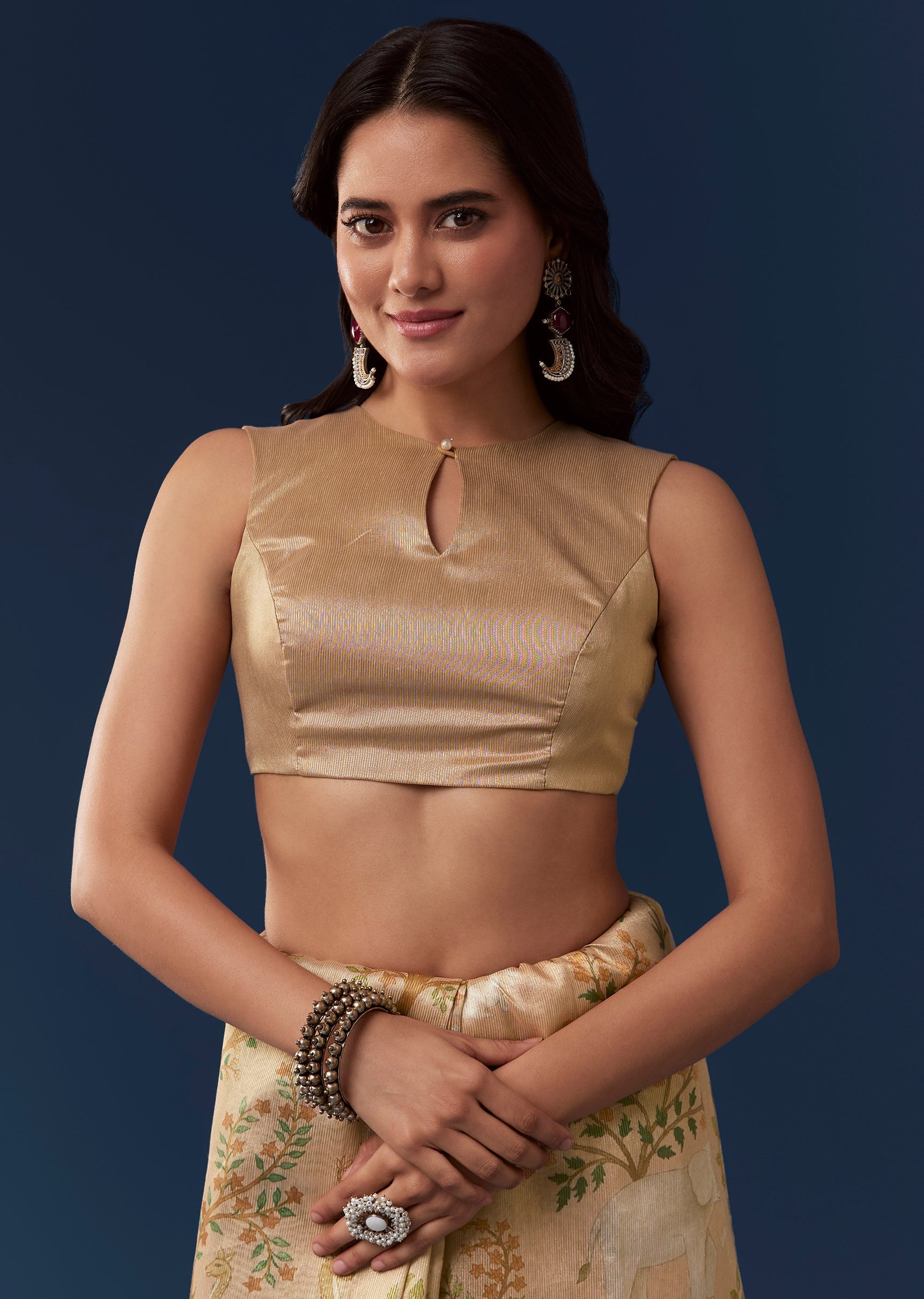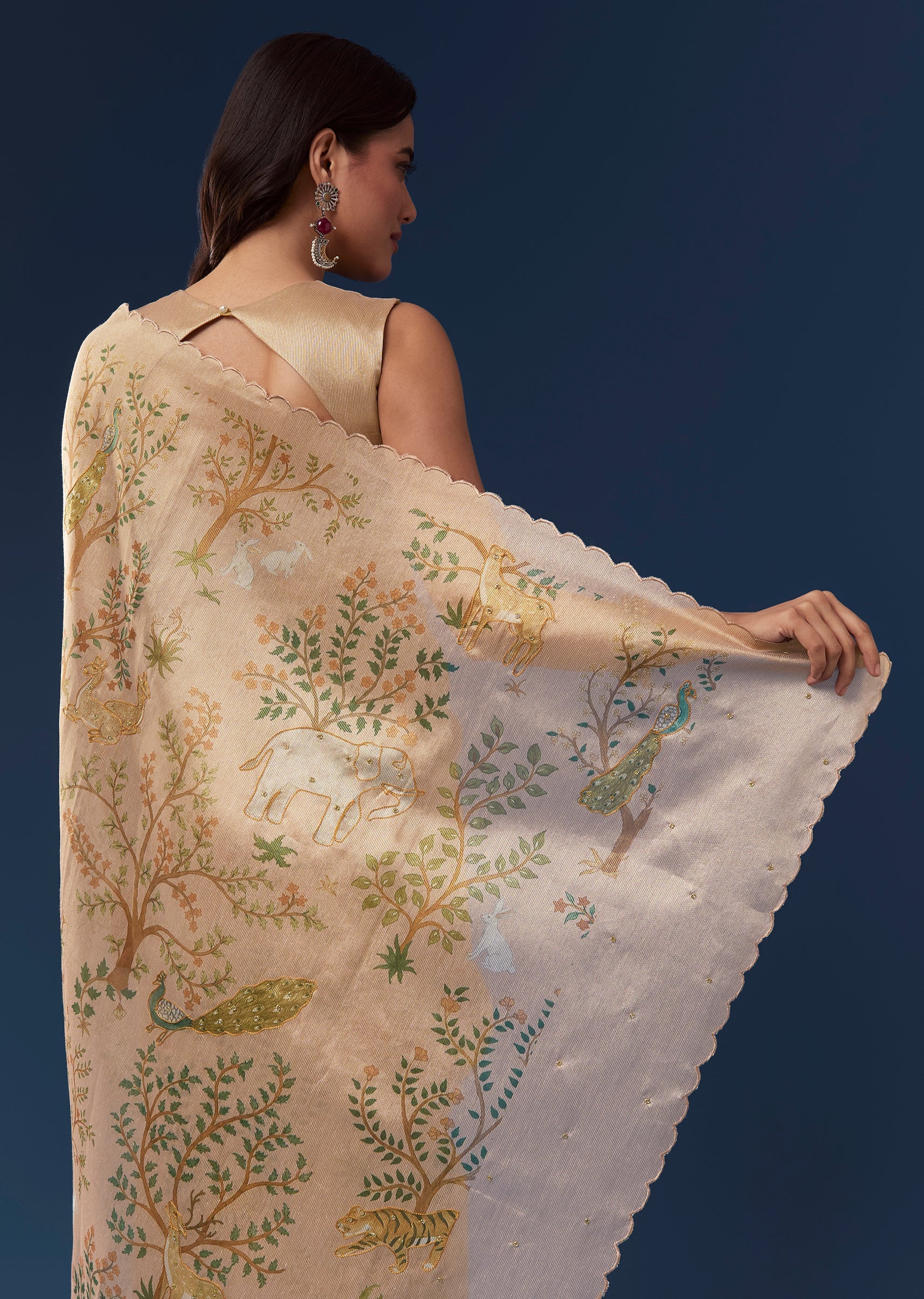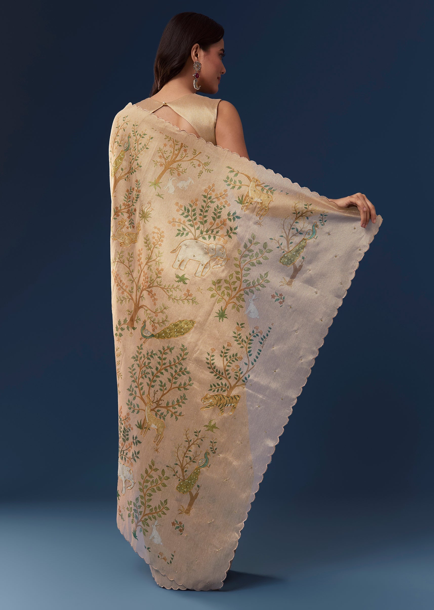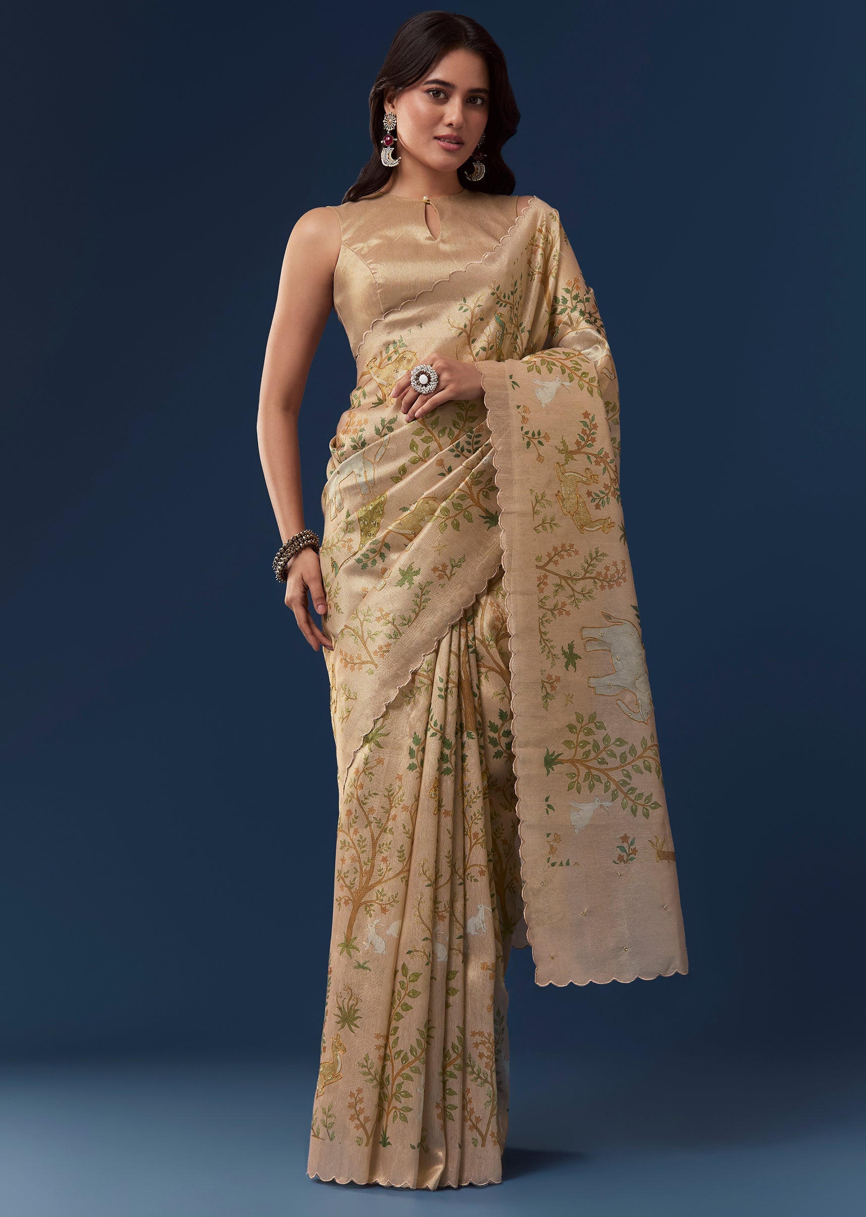 Fit Tips:Drape the saree so the scallop border falls evenly and the motifs are displayed prominently for a neat and polished appearance.