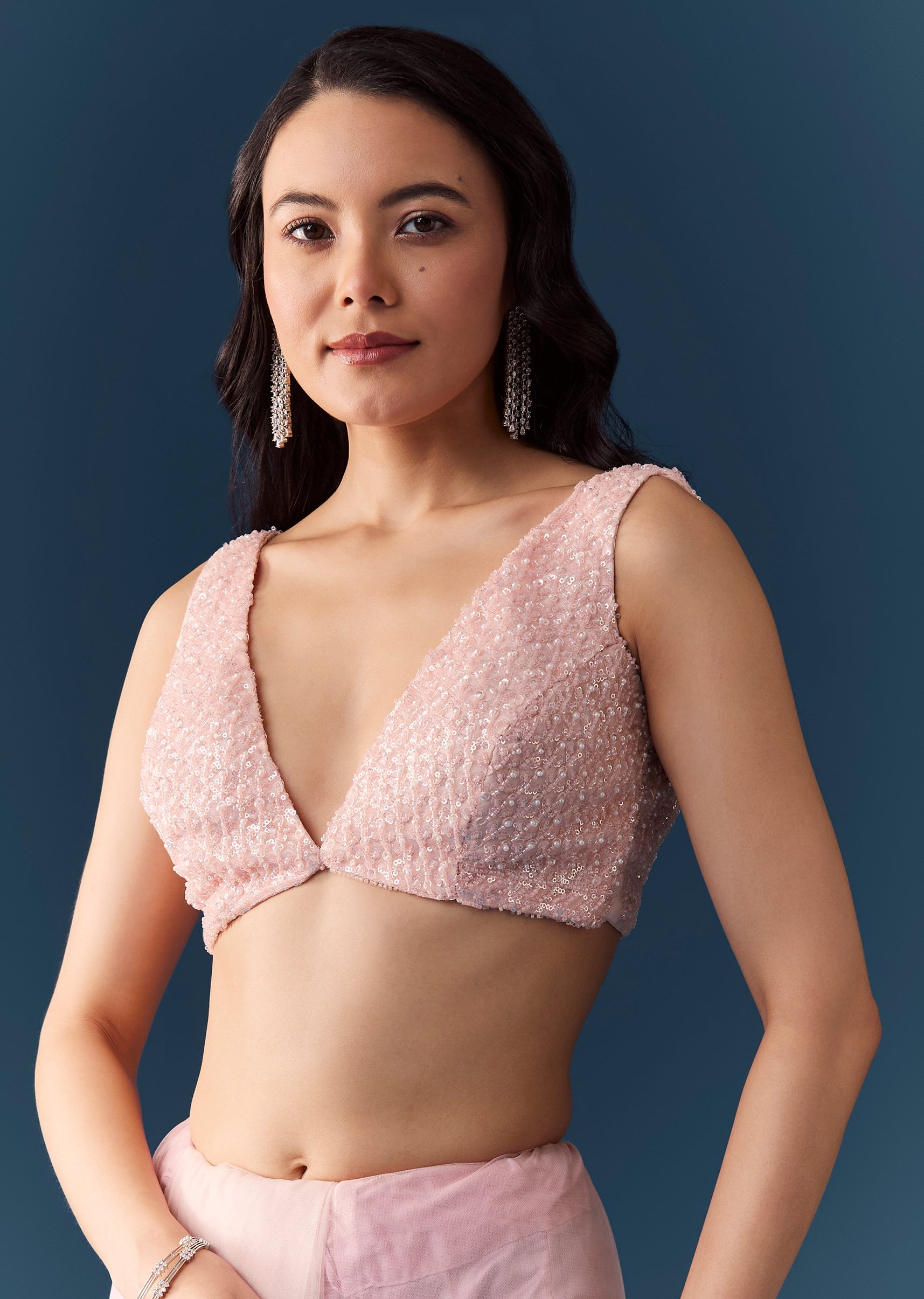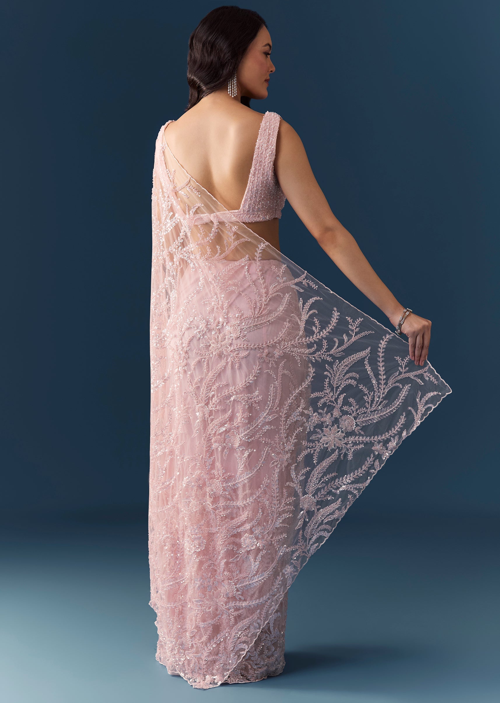 Fit Tips:Stitch the blouse for a well-fitted, structured silhouette to complement the saree’s flowing, elegant drape.