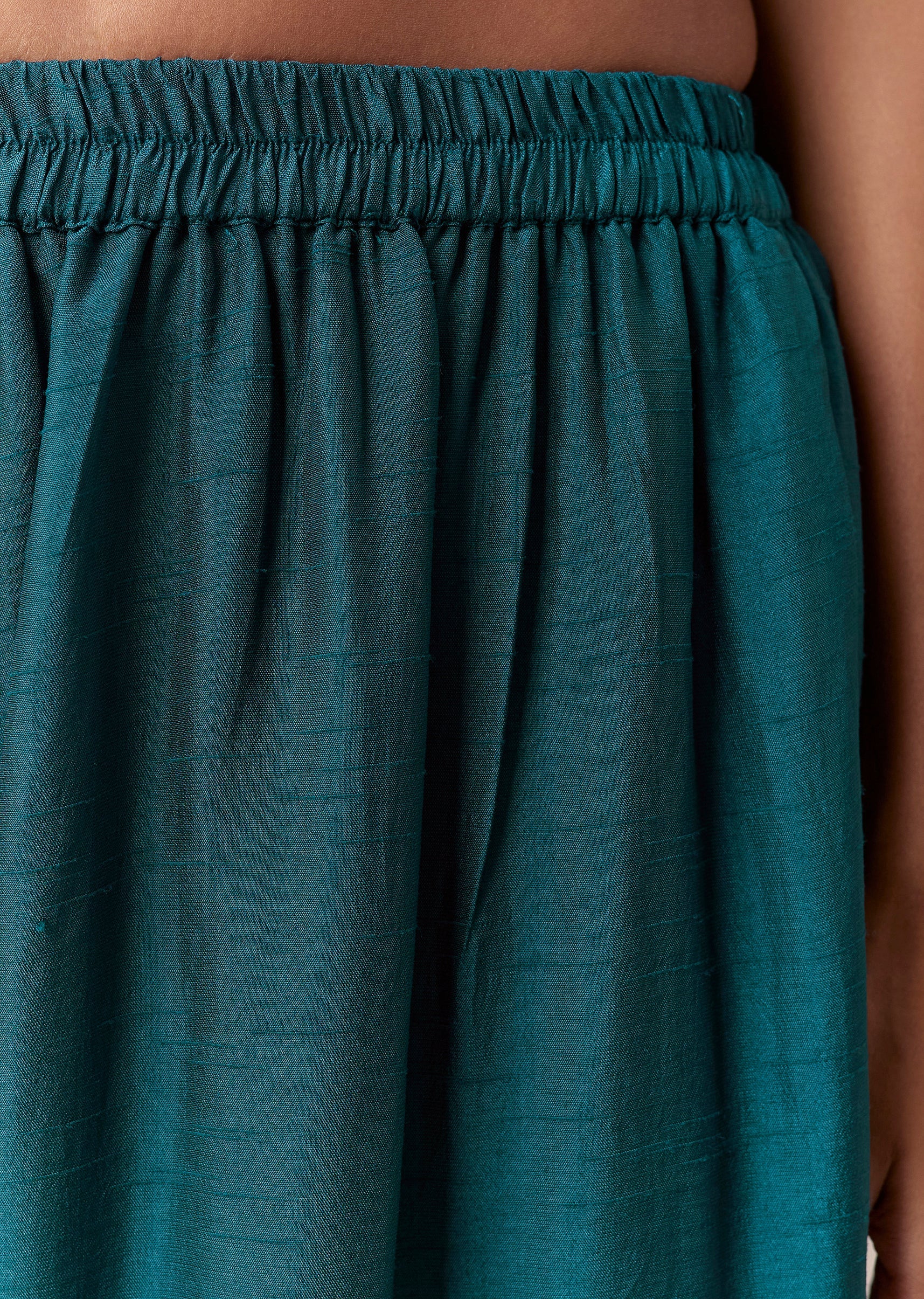 This contemporary co-ord set is crafted in smooth dola silk and designed to make a statement. Featuring a thread and moti embroidered cape layered over a matching inner, it is paired with wide palazzo pants for effortless movement. The round neckline and clean construction give it a polished festive appeal, while the elasticated waist ensures comfort. Awarded as the Most Trusted Brand, we're delivering styles you love, just as promised.