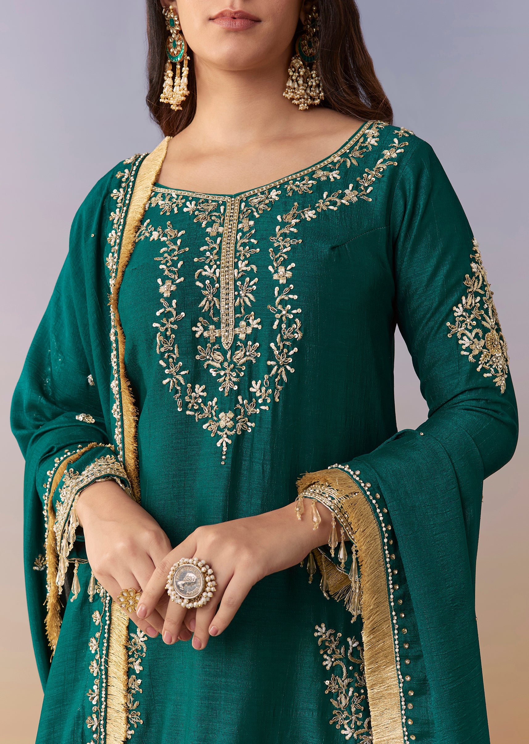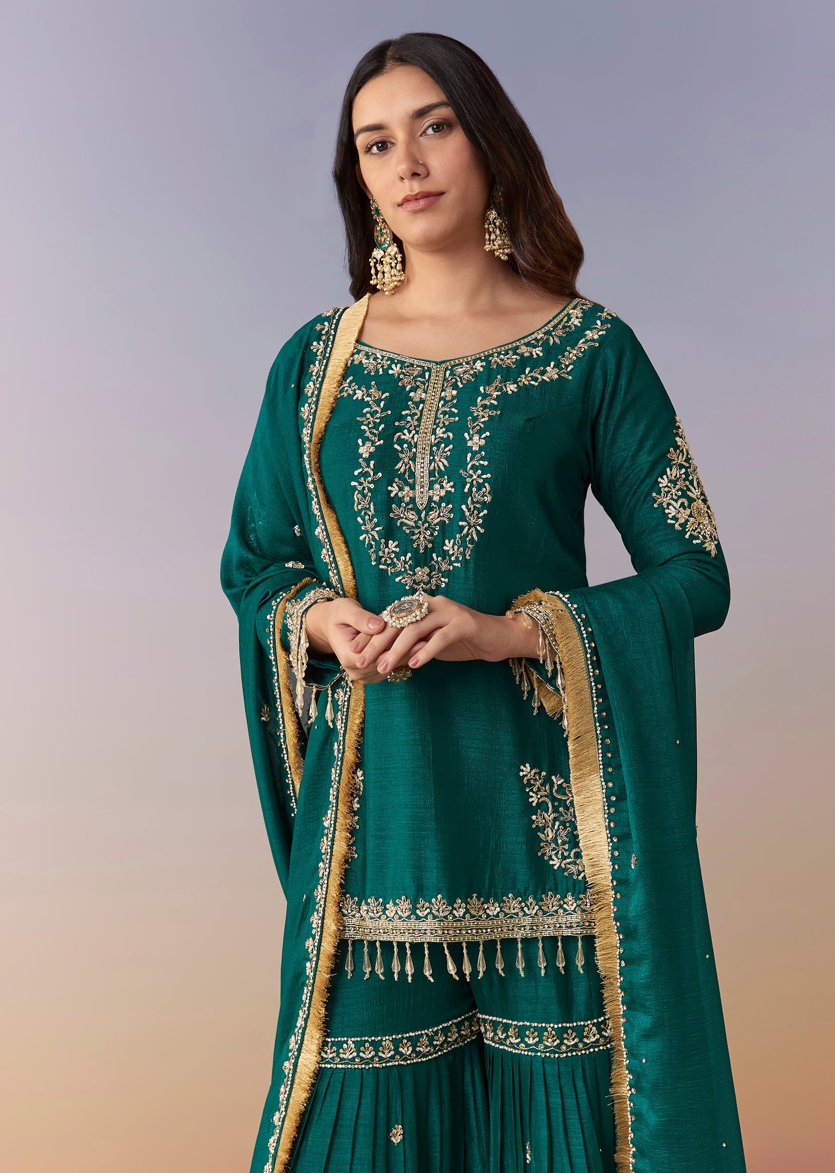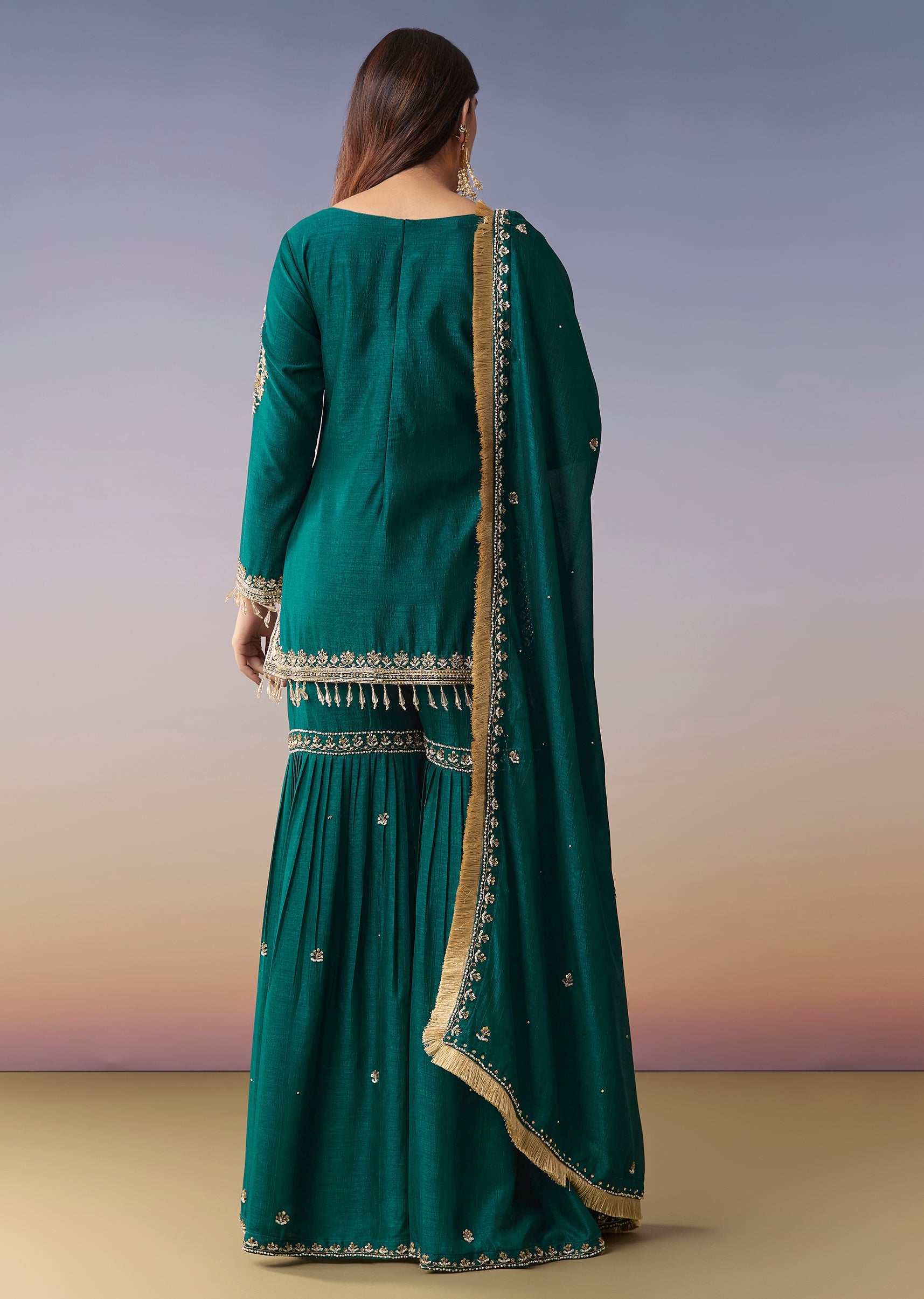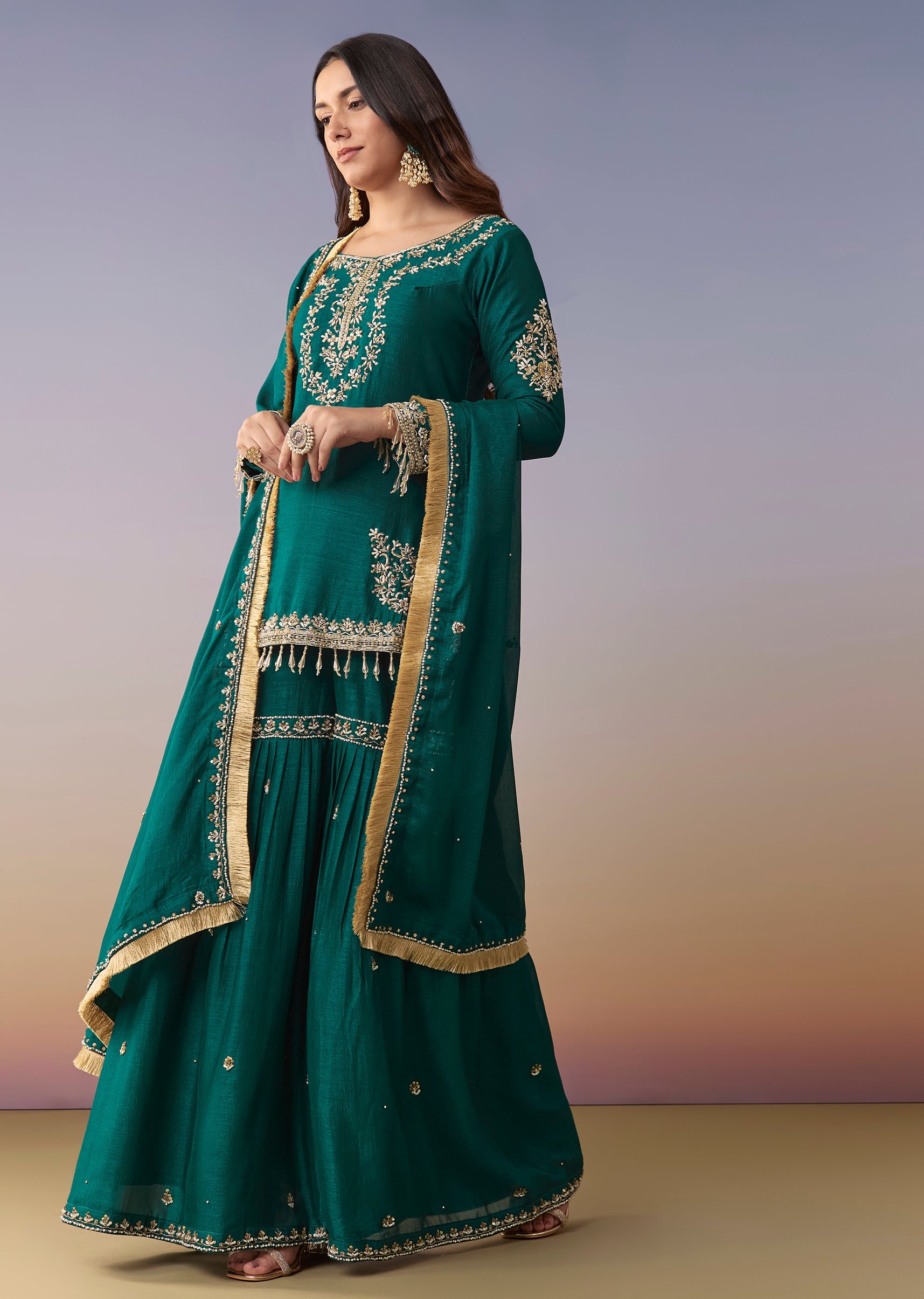 Peacock Blue Zardosi Sharara Suit Set With Dupatta