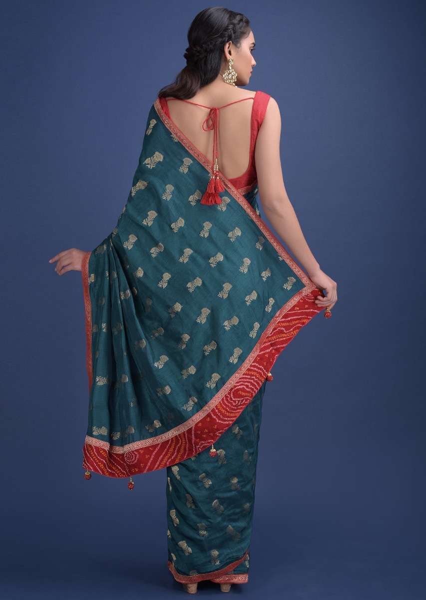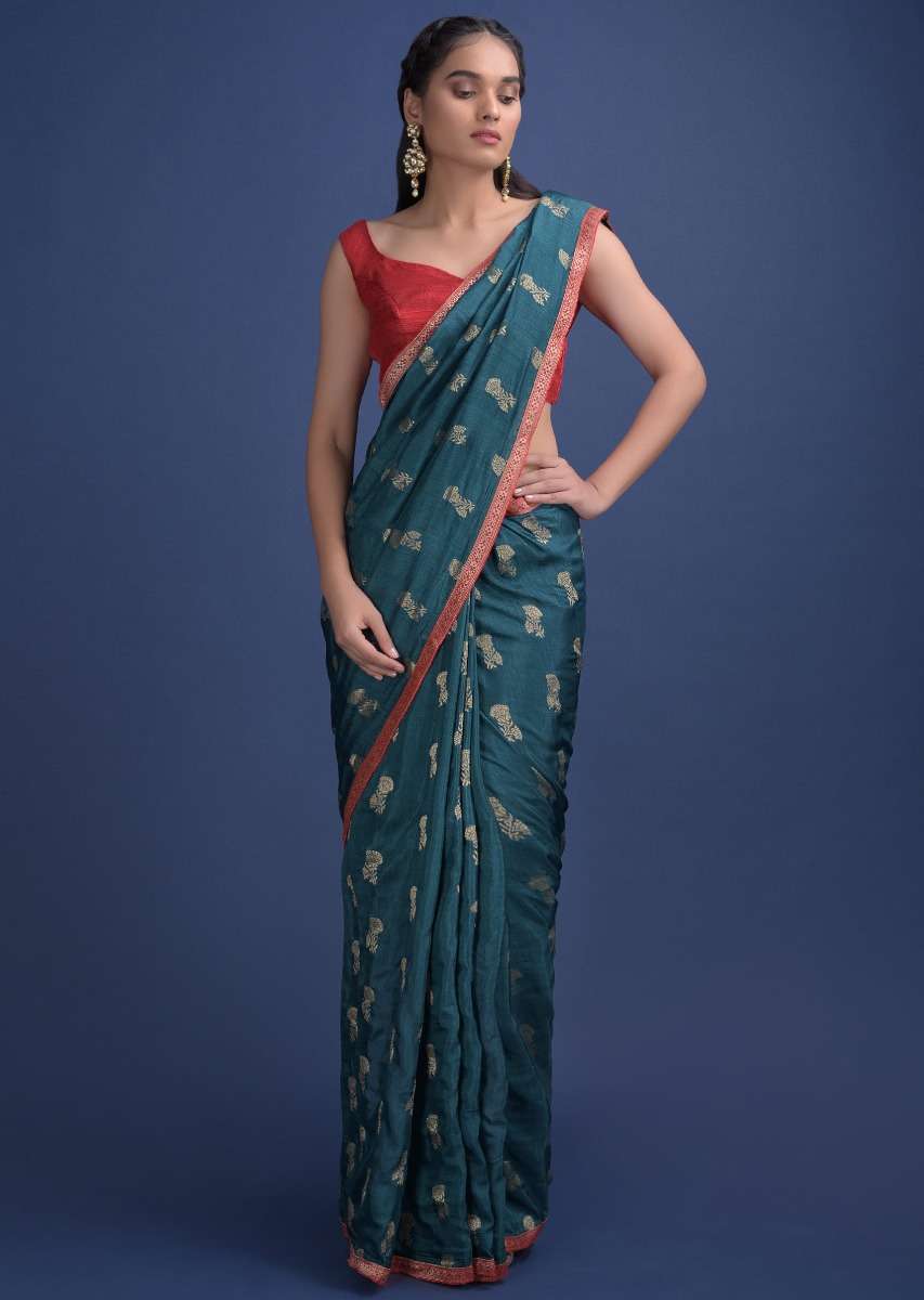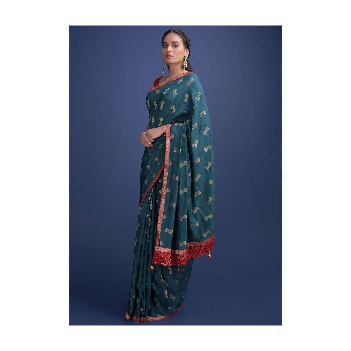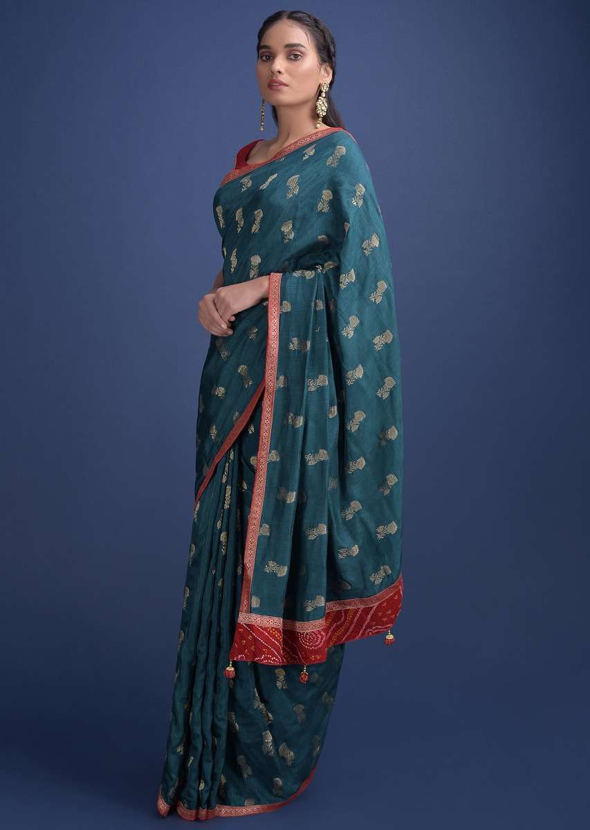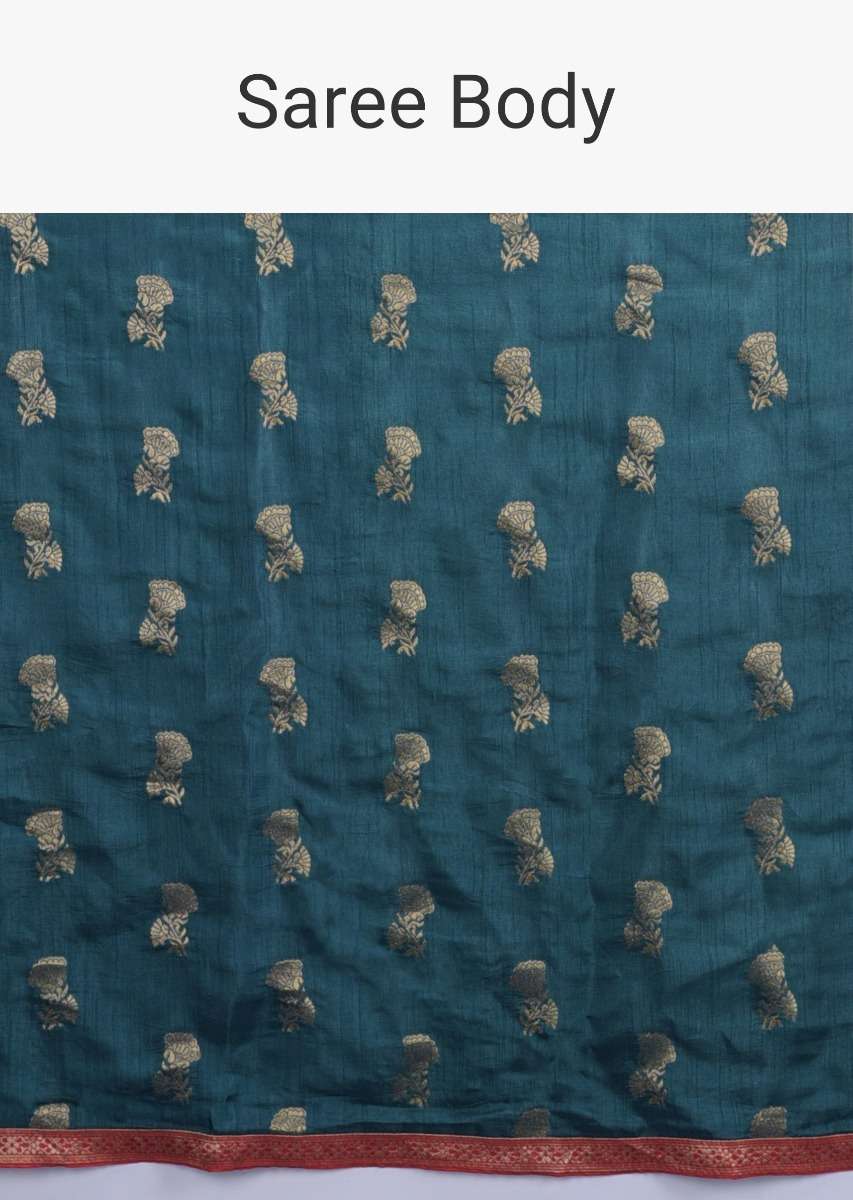 Peacock Green Saree In Cotton Silk With Weaved Floral Buttis All Over Online - Kalki Fashion