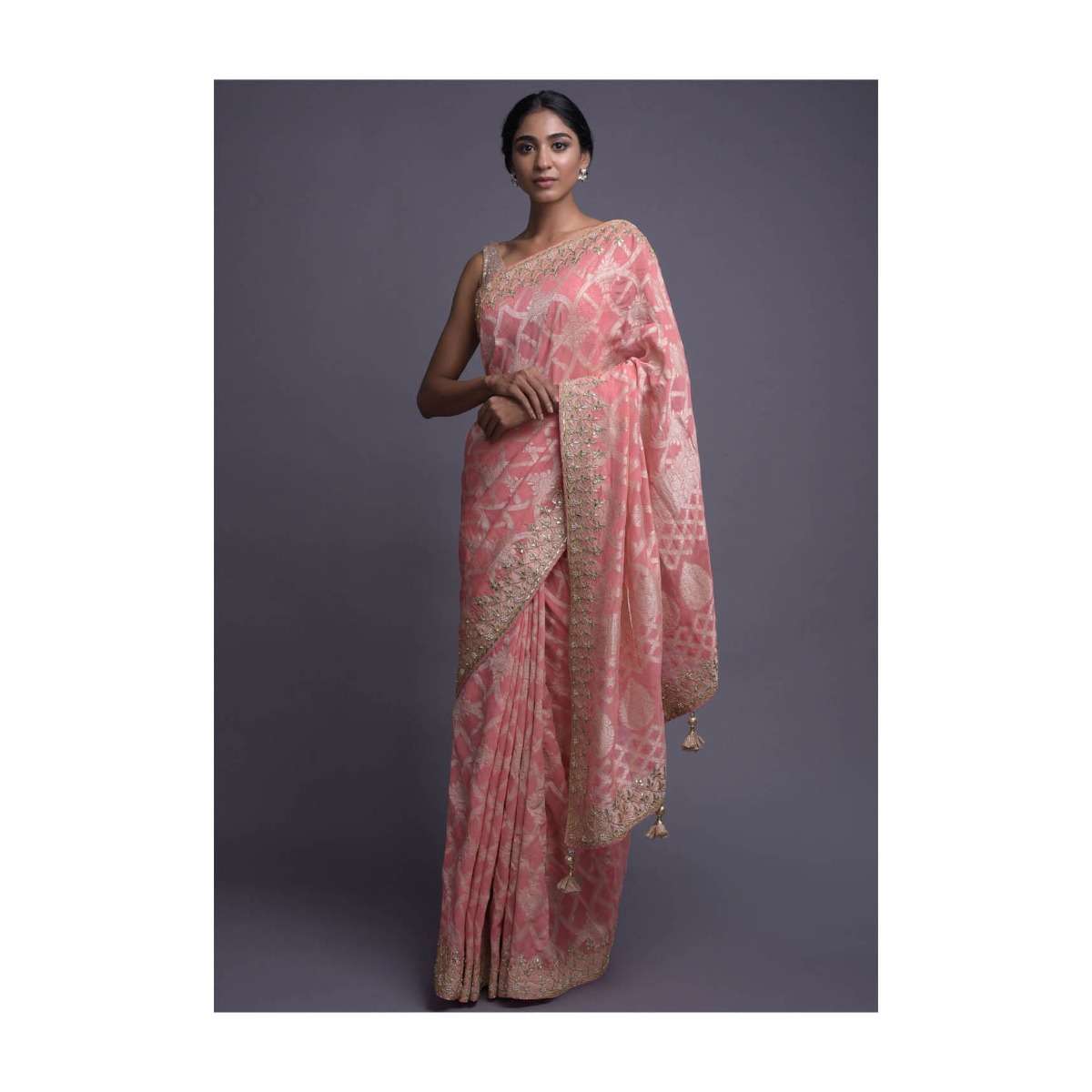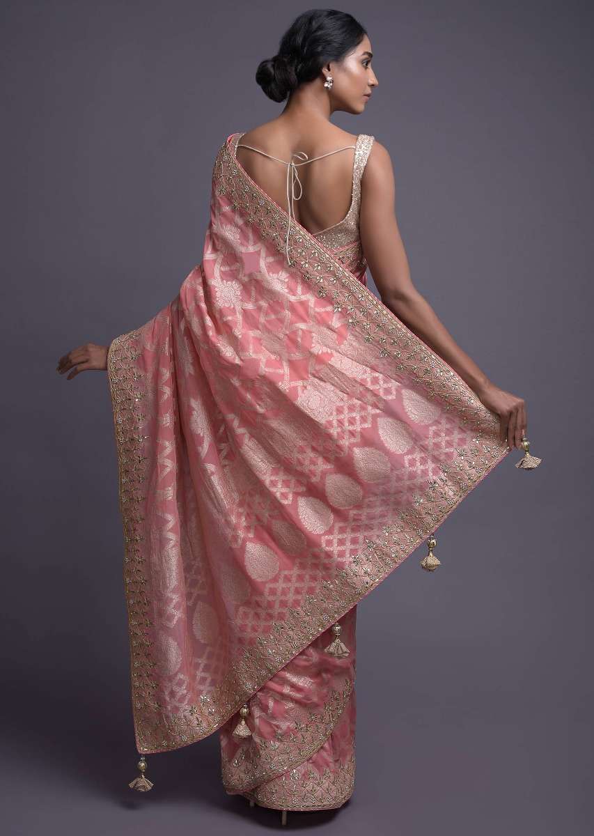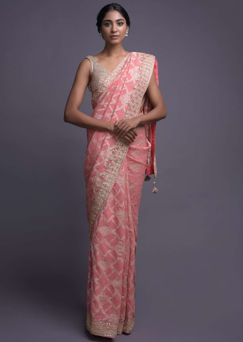 Pearl Pink Saree In Georgette With Weaved Pattern And Gotta Work Online - Kalki Fashion