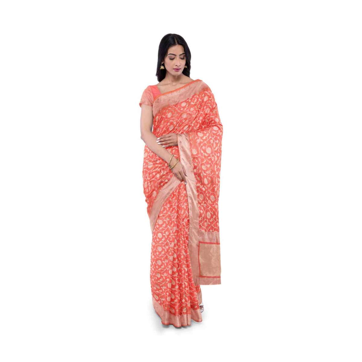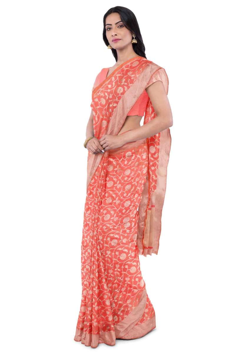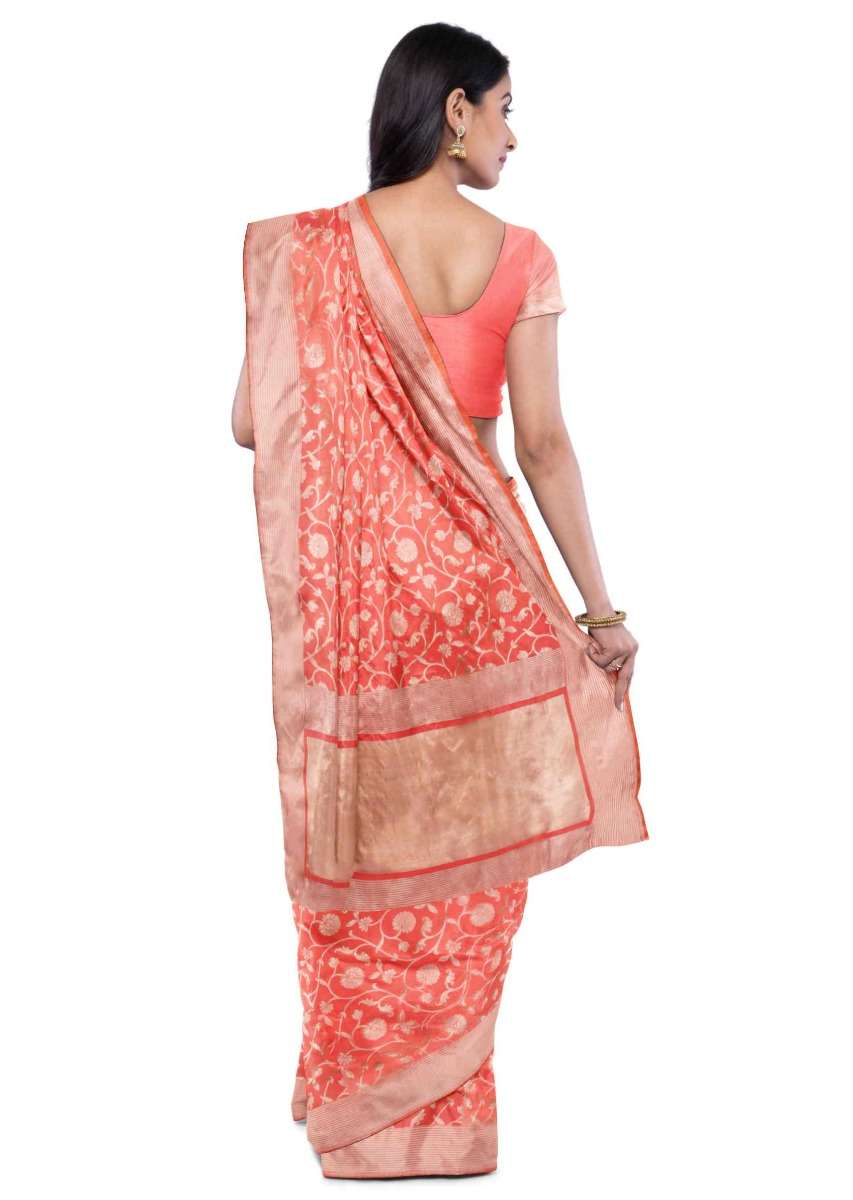 Pink Banarasi Saree In Two Toned Silk With Matching Blouse Piece Online - Kalki Fashion