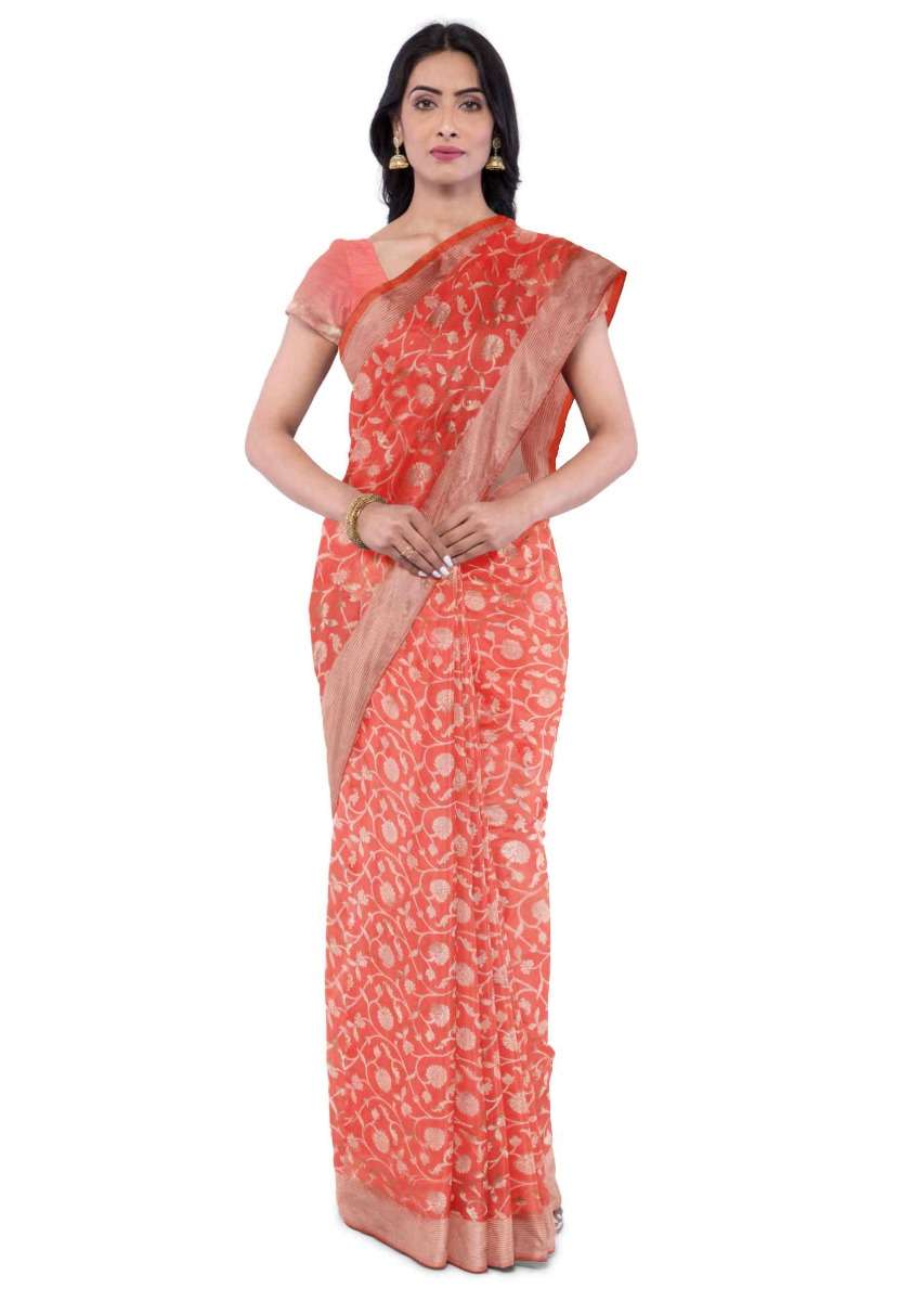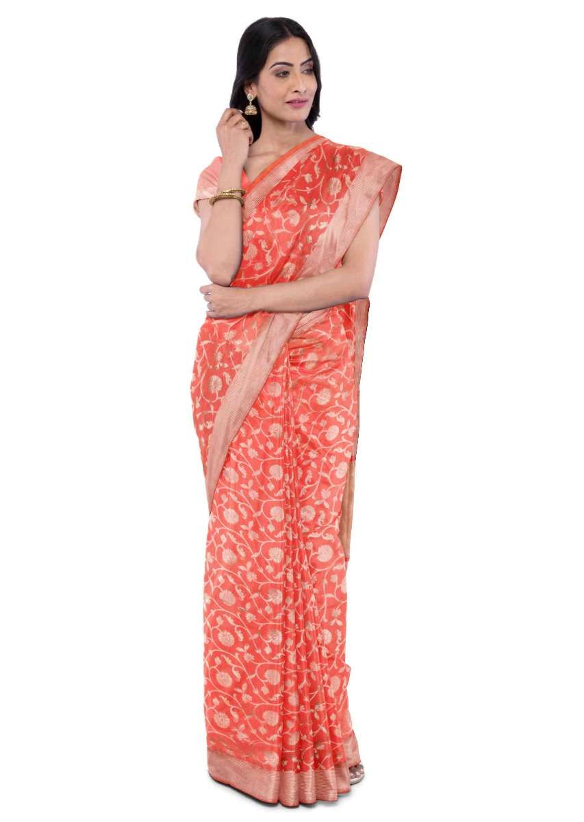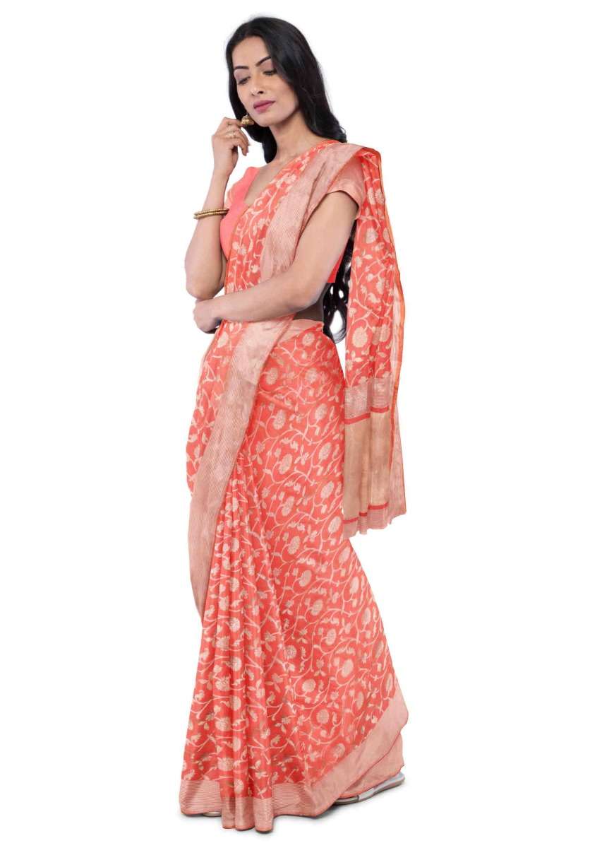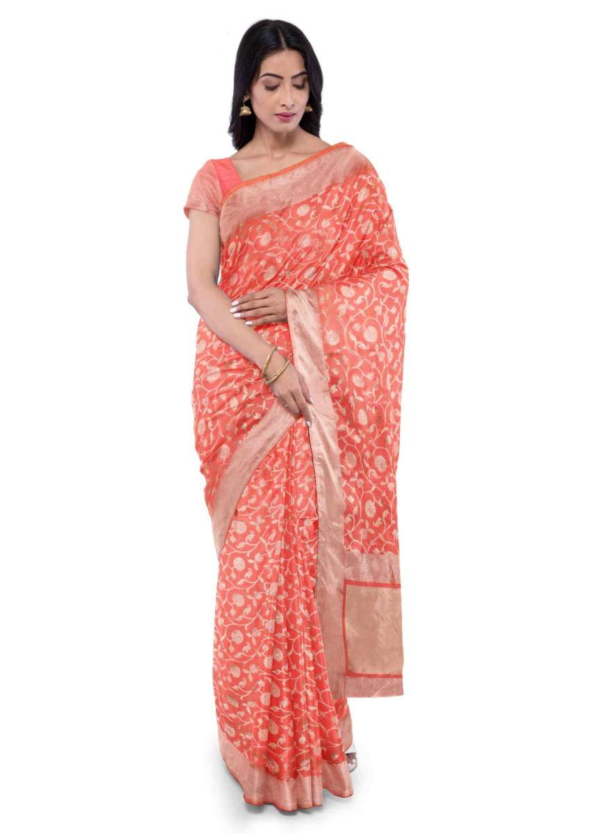 Pink Banarasi Saree In Two Toned Silk With Matching Blouse Piece Online - Kalki Fashion