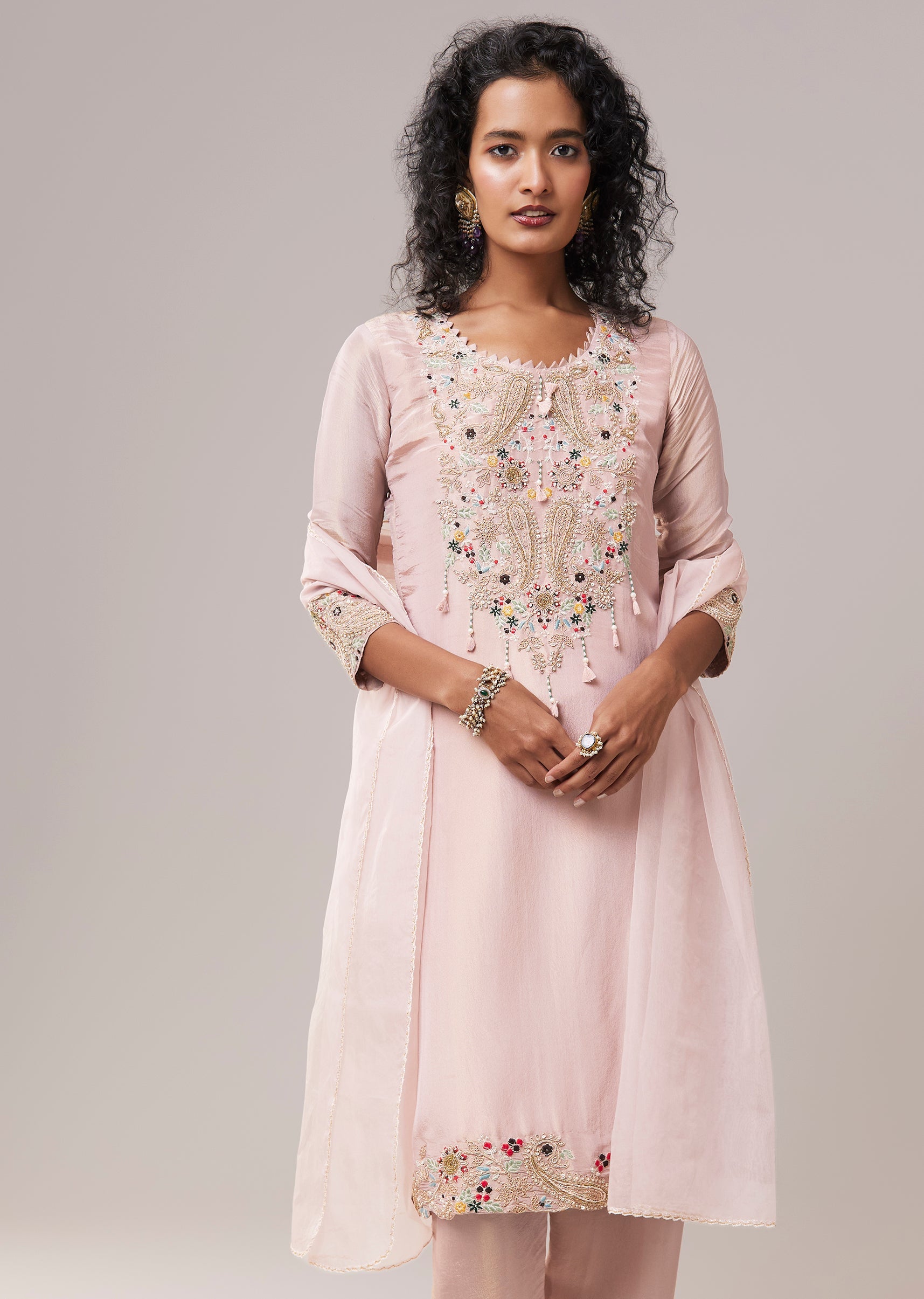 Subtle luxury meets graceful design in this zardosi and bead work kurta set, crafted for elegant festive dressing. The tissue kurta is adorned with delicate embroidery that adds refined texture... More Product Details