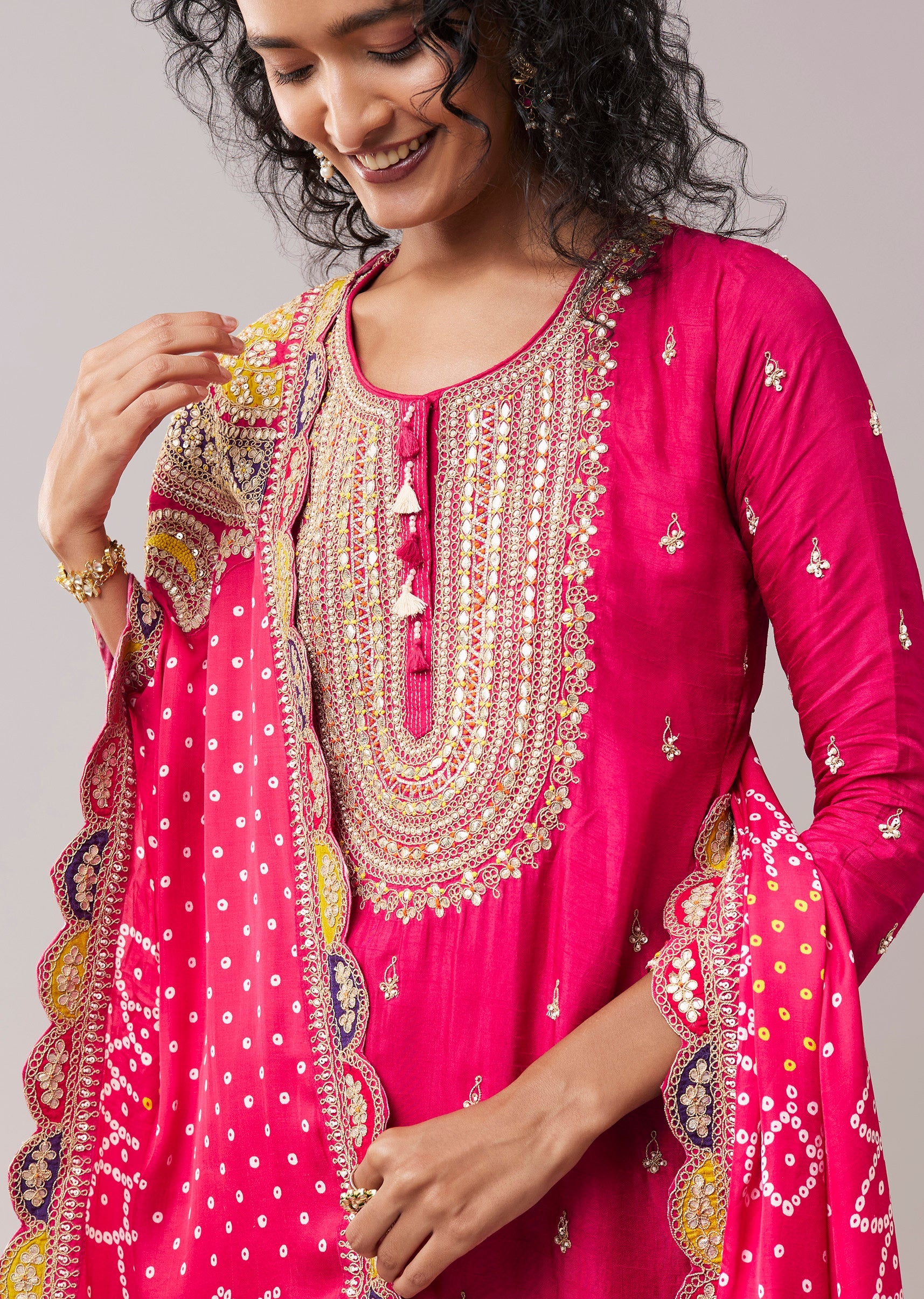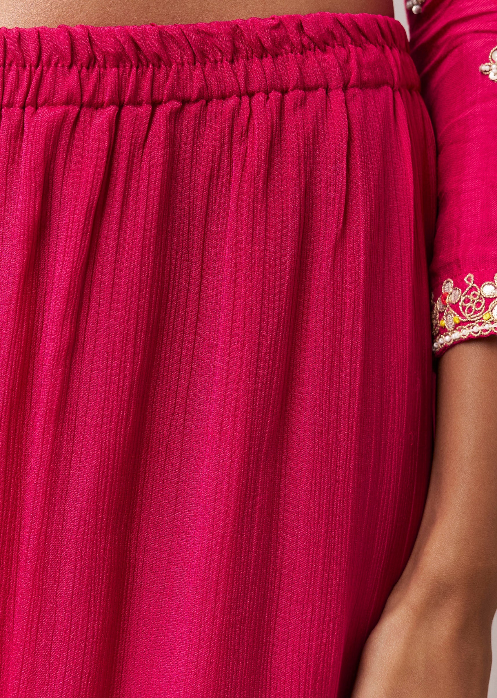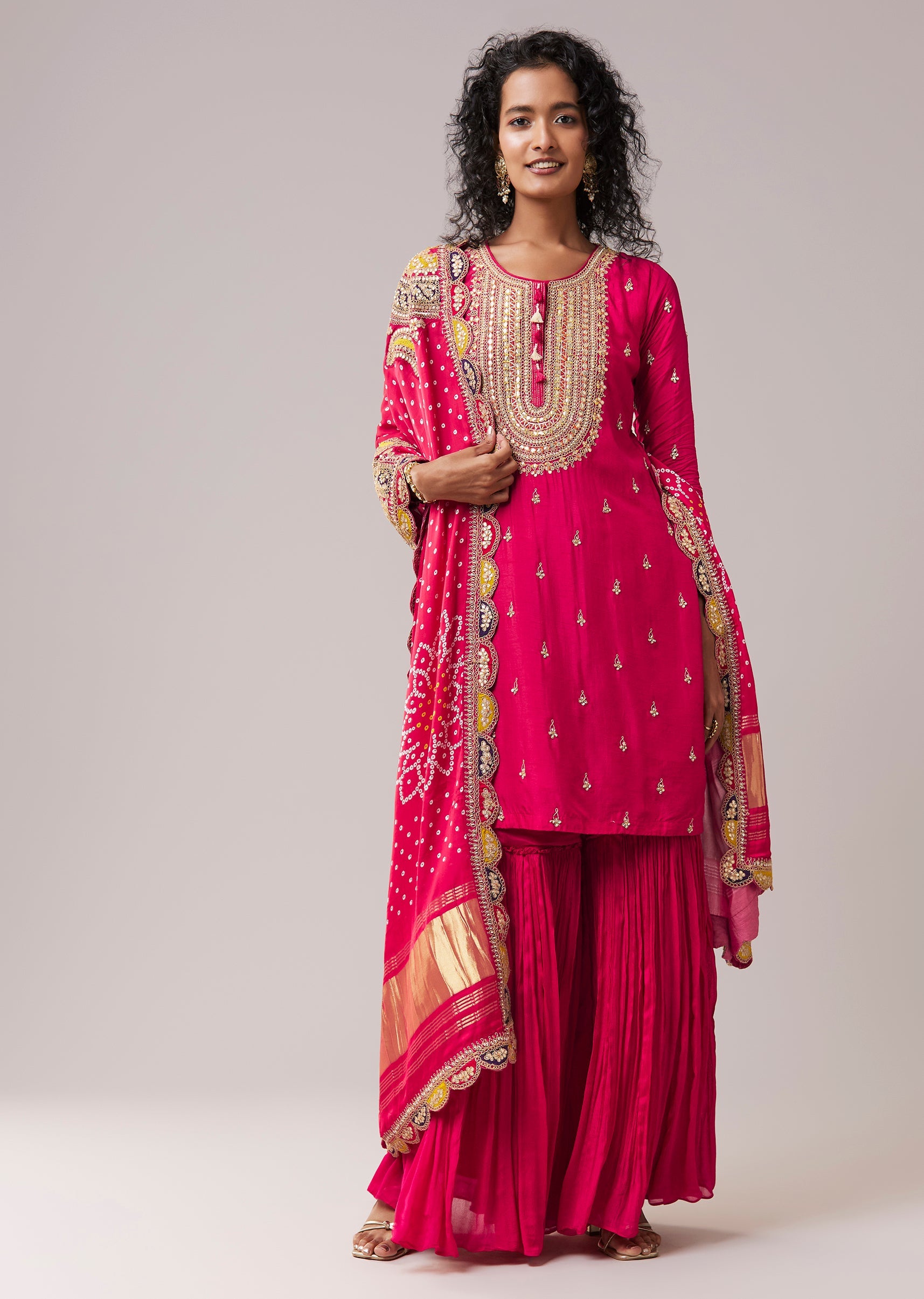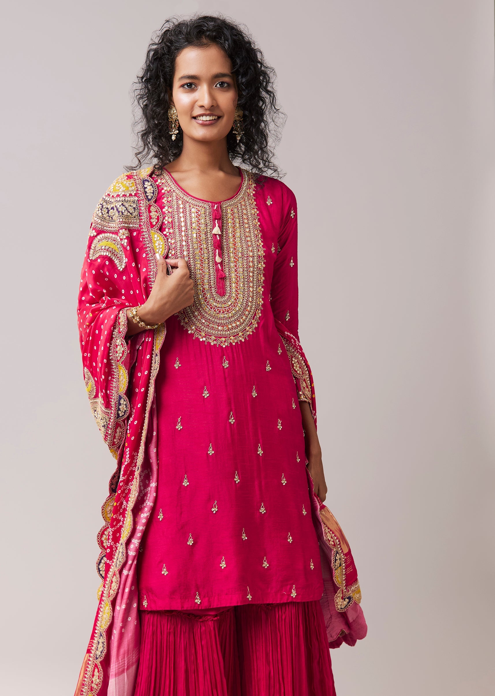 Pink Chinon Silk Kurta Sharara Set with Zari Work