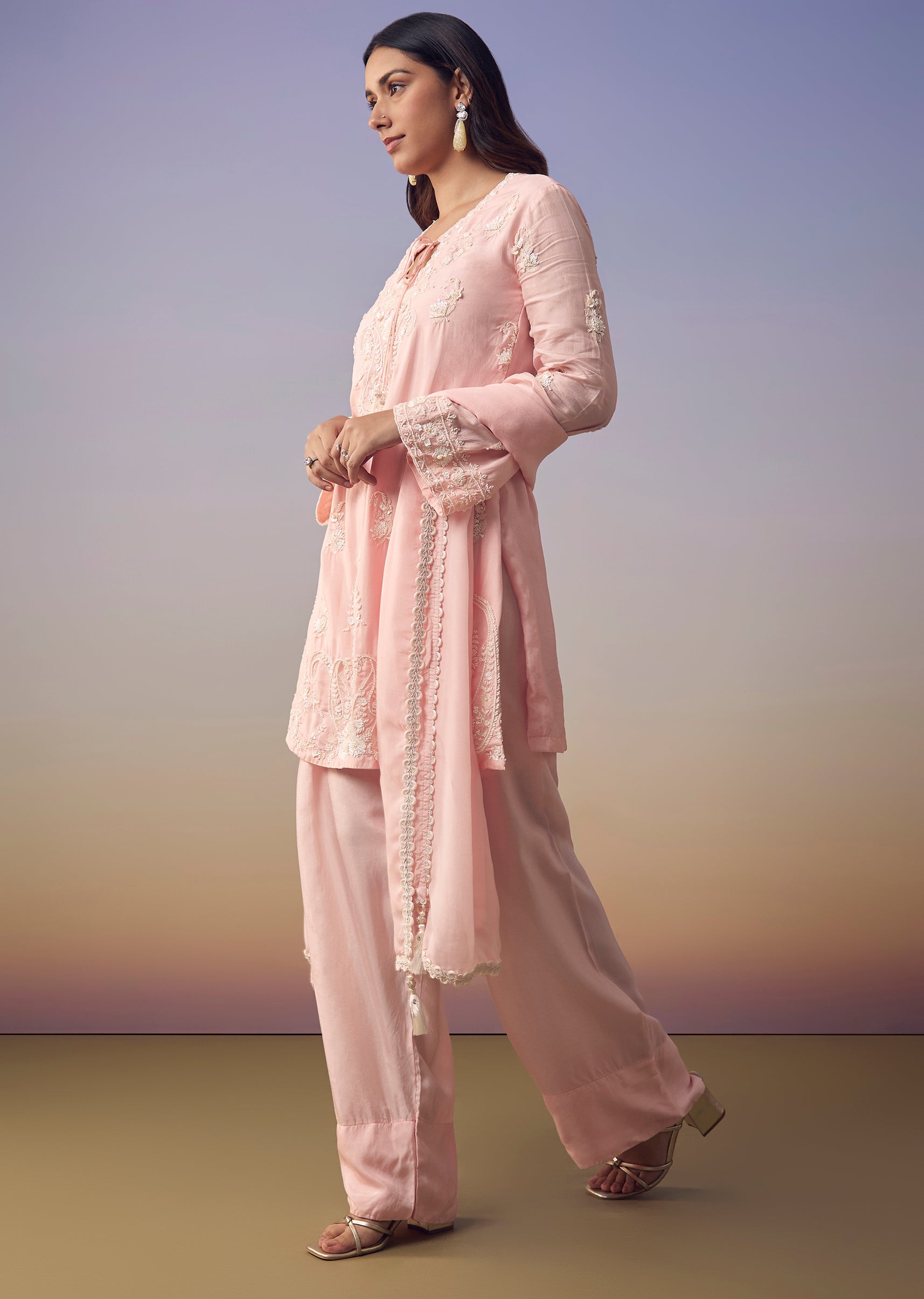 Pink Cutdana Embroidered Kurta Set
