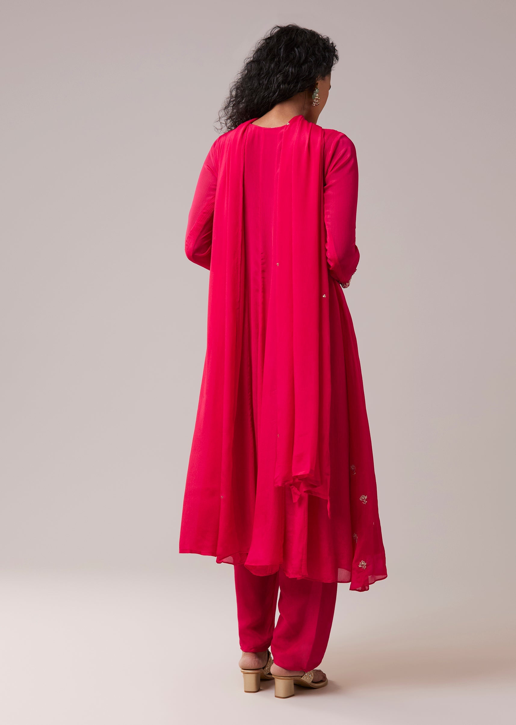 Light, fluid, and delicately radiant, this cut dana and sequins work anarkali is designed for effortless festive elegance. Crafted in airy chinon, the silhouette flows gracefully while the fine embroidery... More Product Details