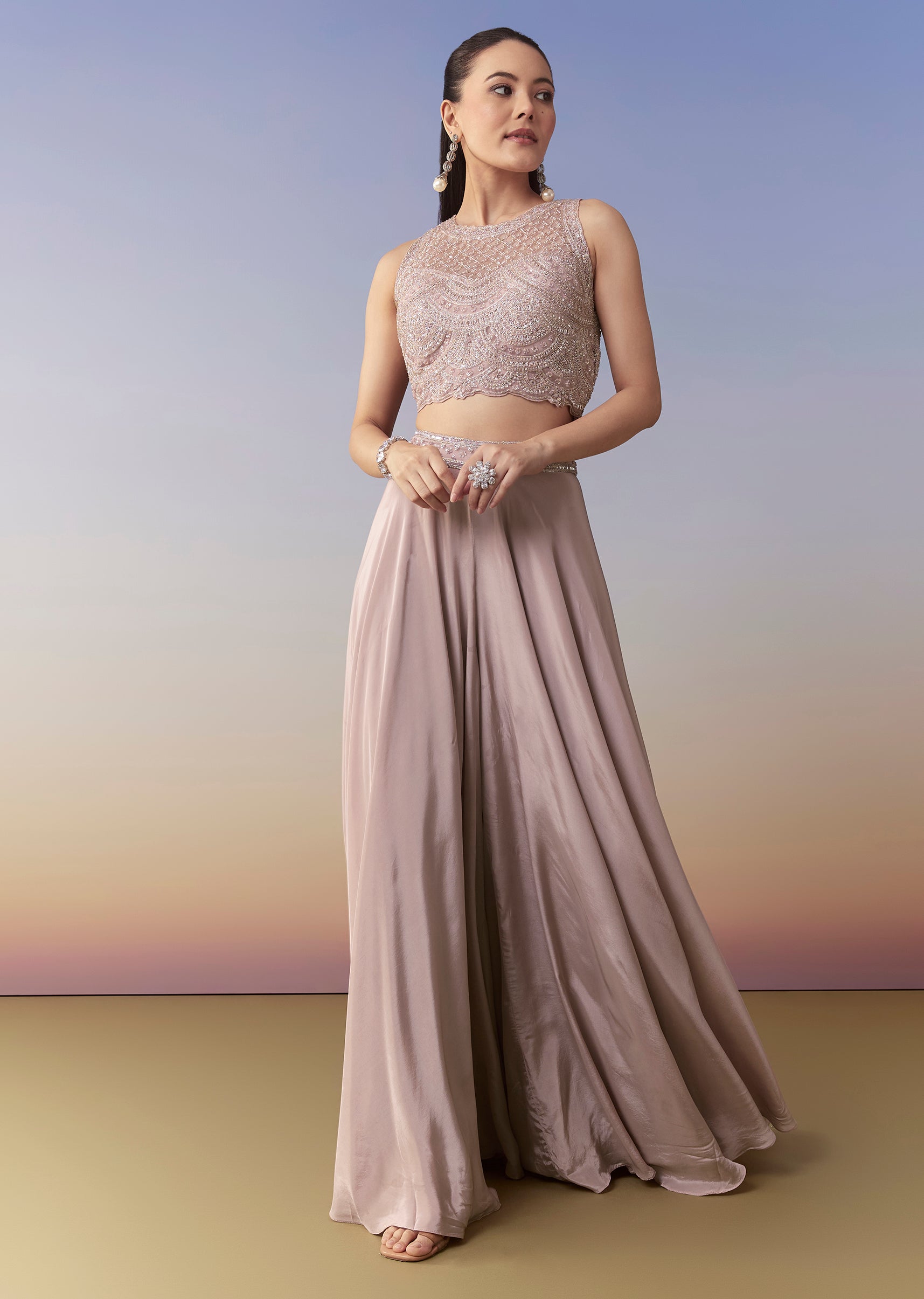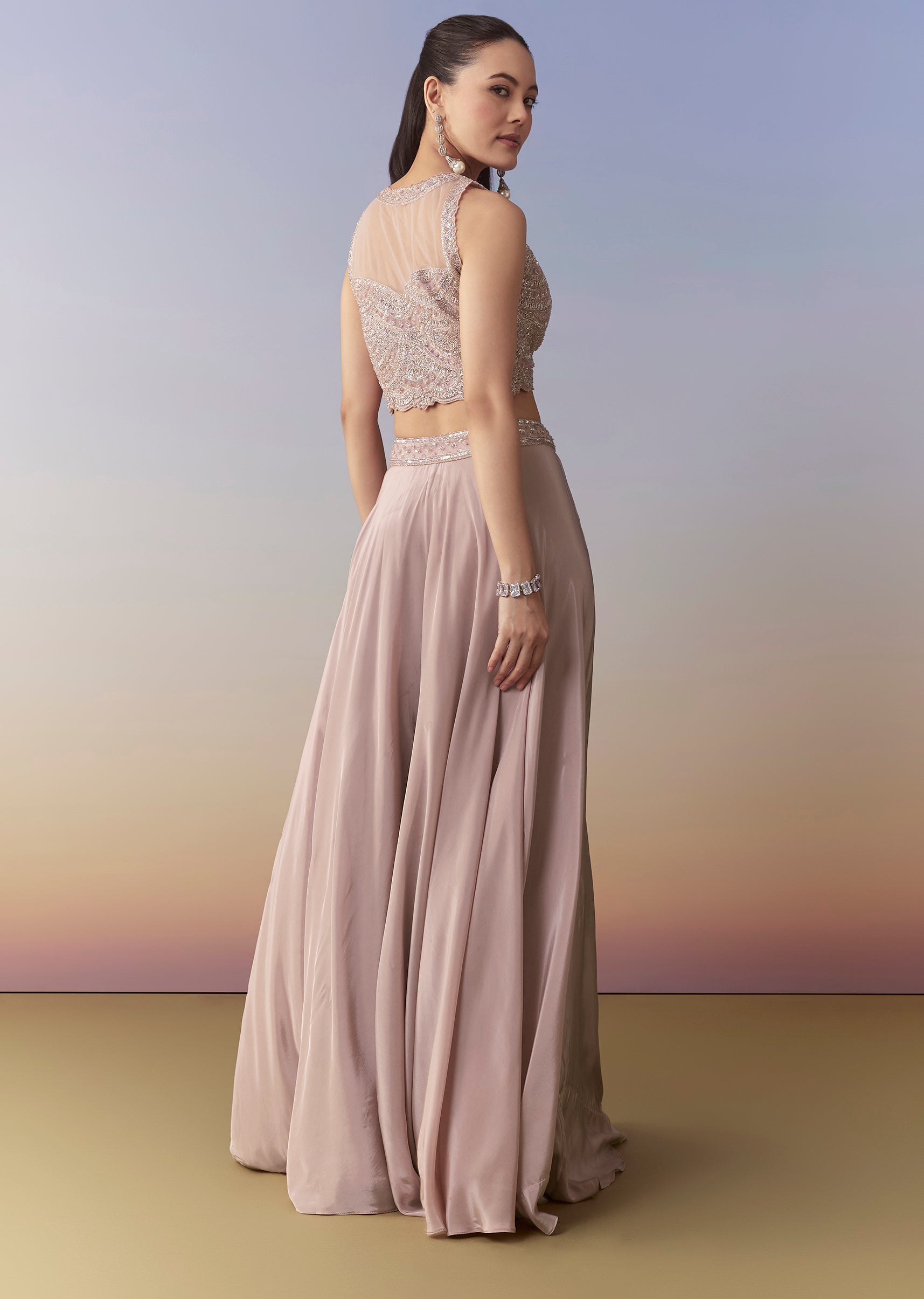 Pink Embellished Indo Western Crop Top Palazzo Set