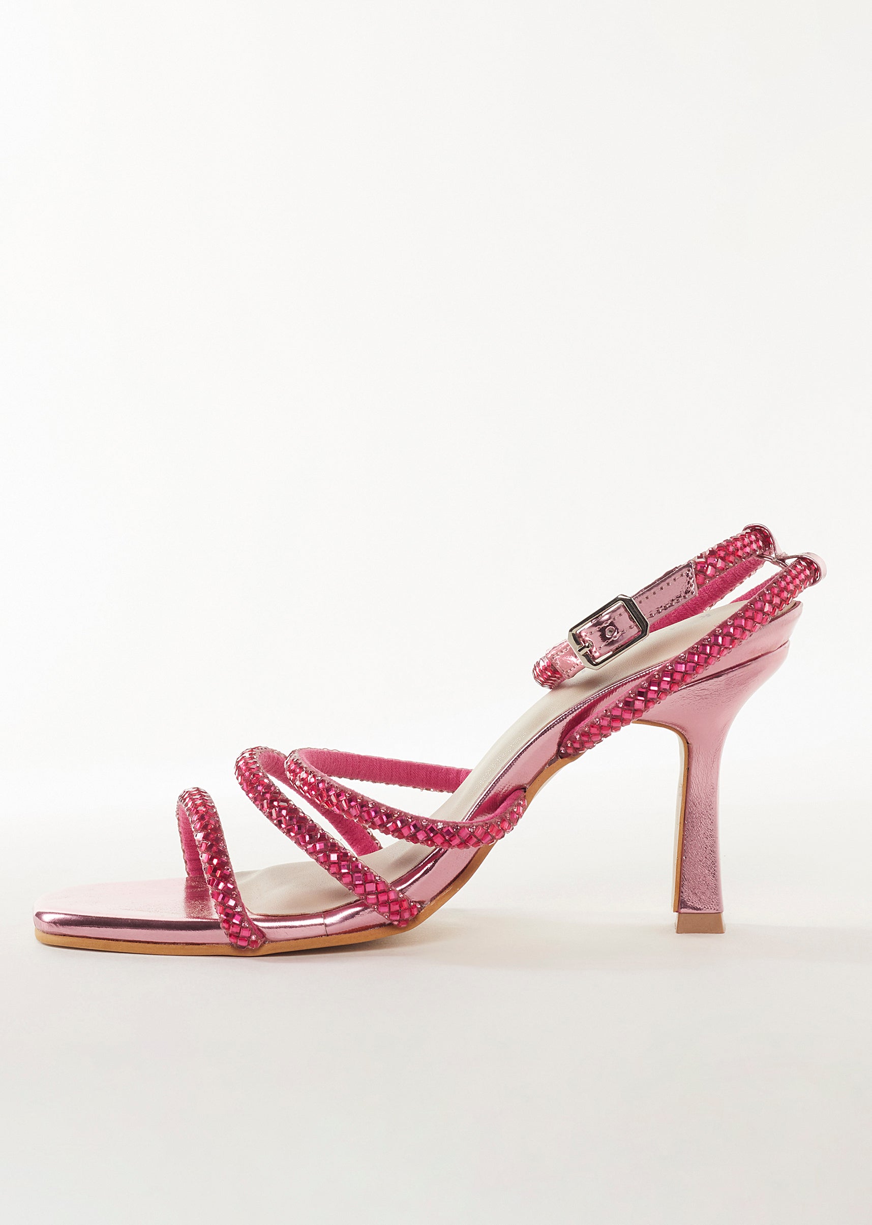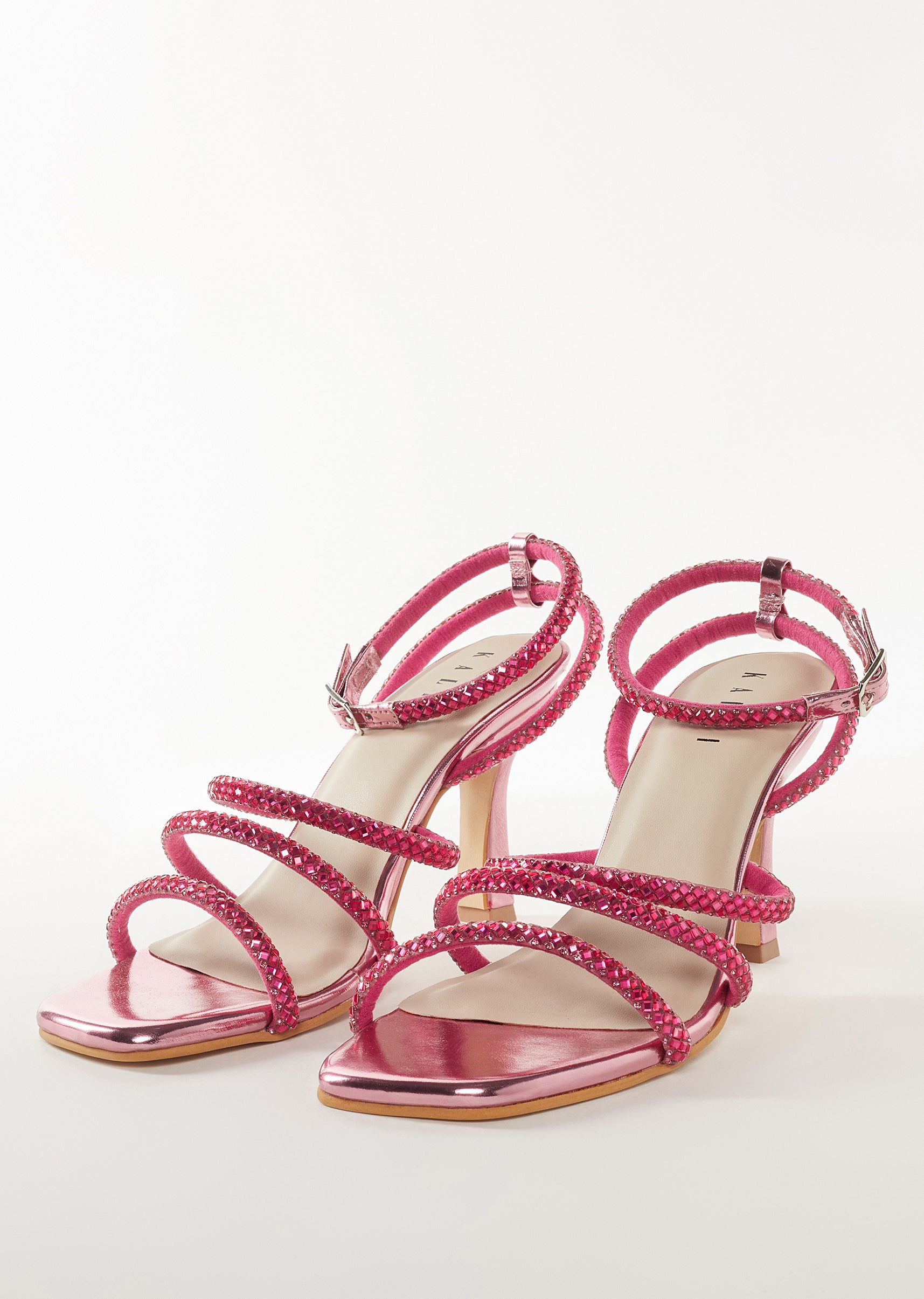 Chic and festive, these pink womens footwear pieces are crafted in smooth faux leather with delicate embellished detailing that adds a subtle shimmer. The tabletop face silhouette allows easy slip... More Product Details