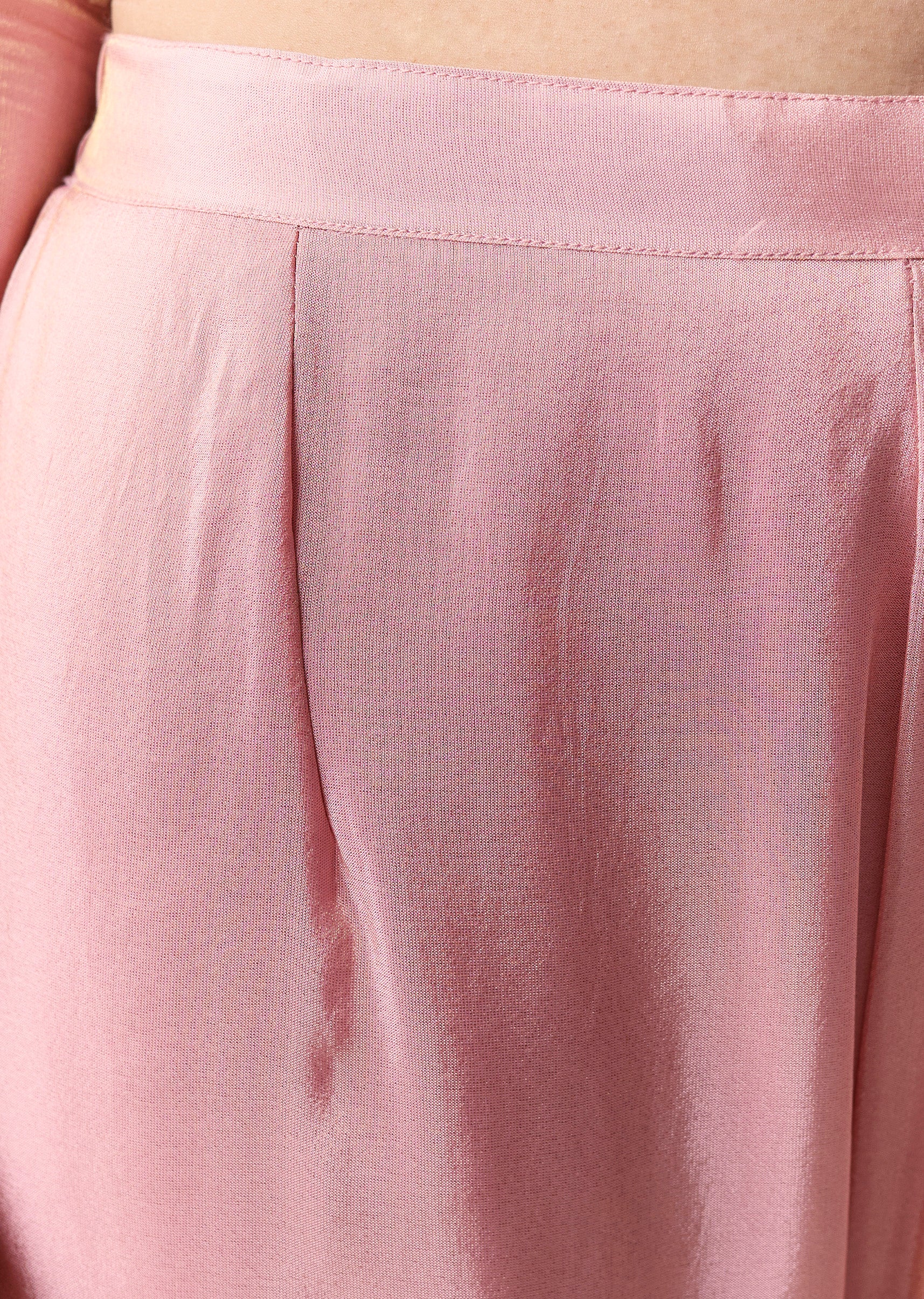 Pink Gotta Lace Tissue Anarkali Suit Set With Pant And Dupatta