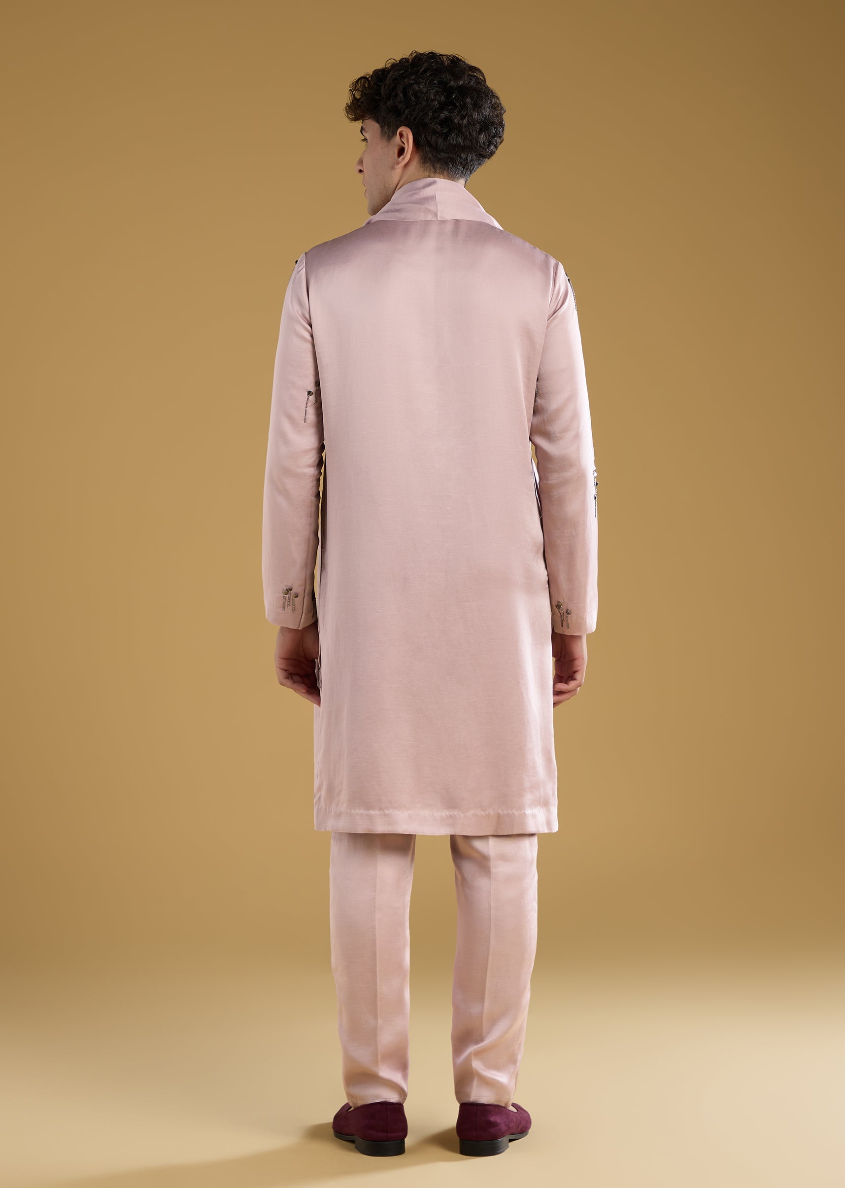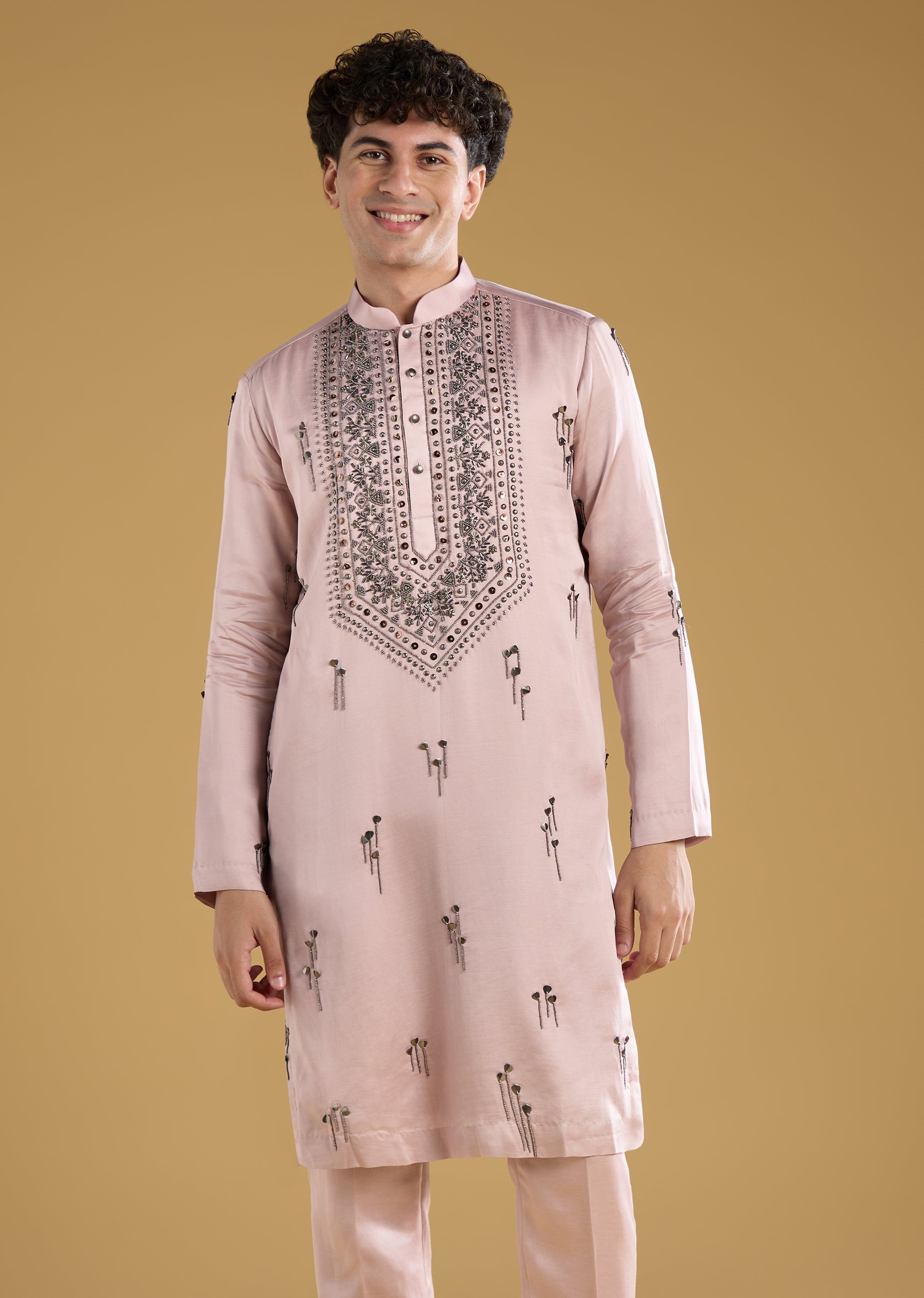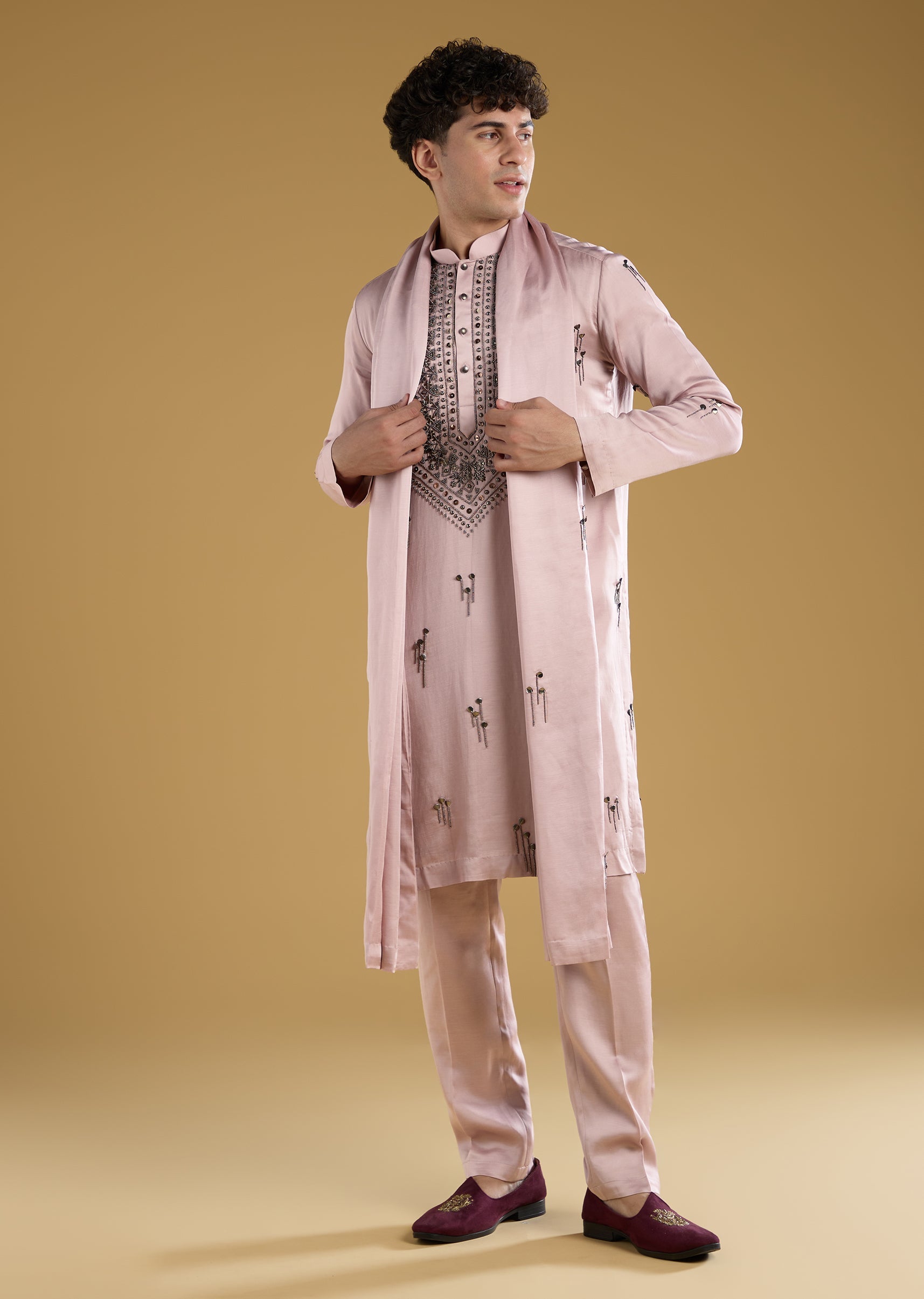 Pink Mens Kurta Set With Thread Metal And Beads Detail