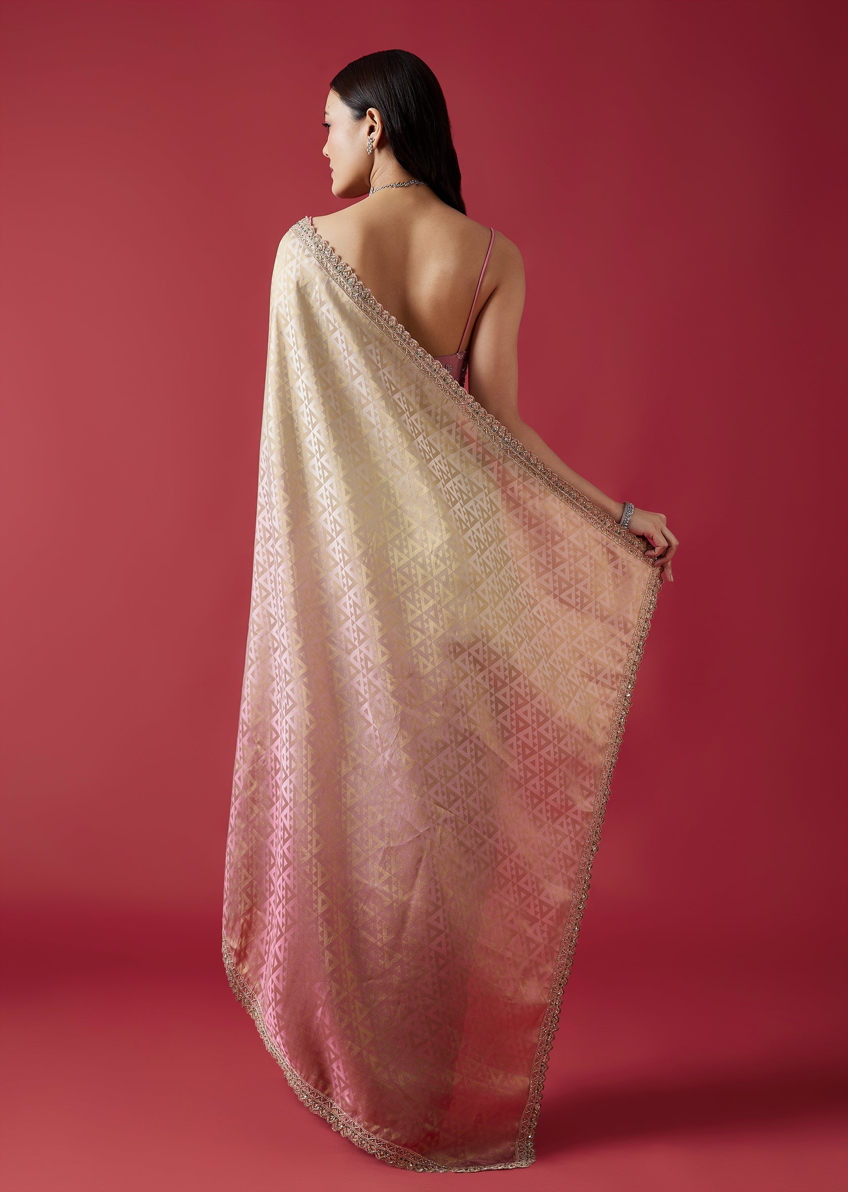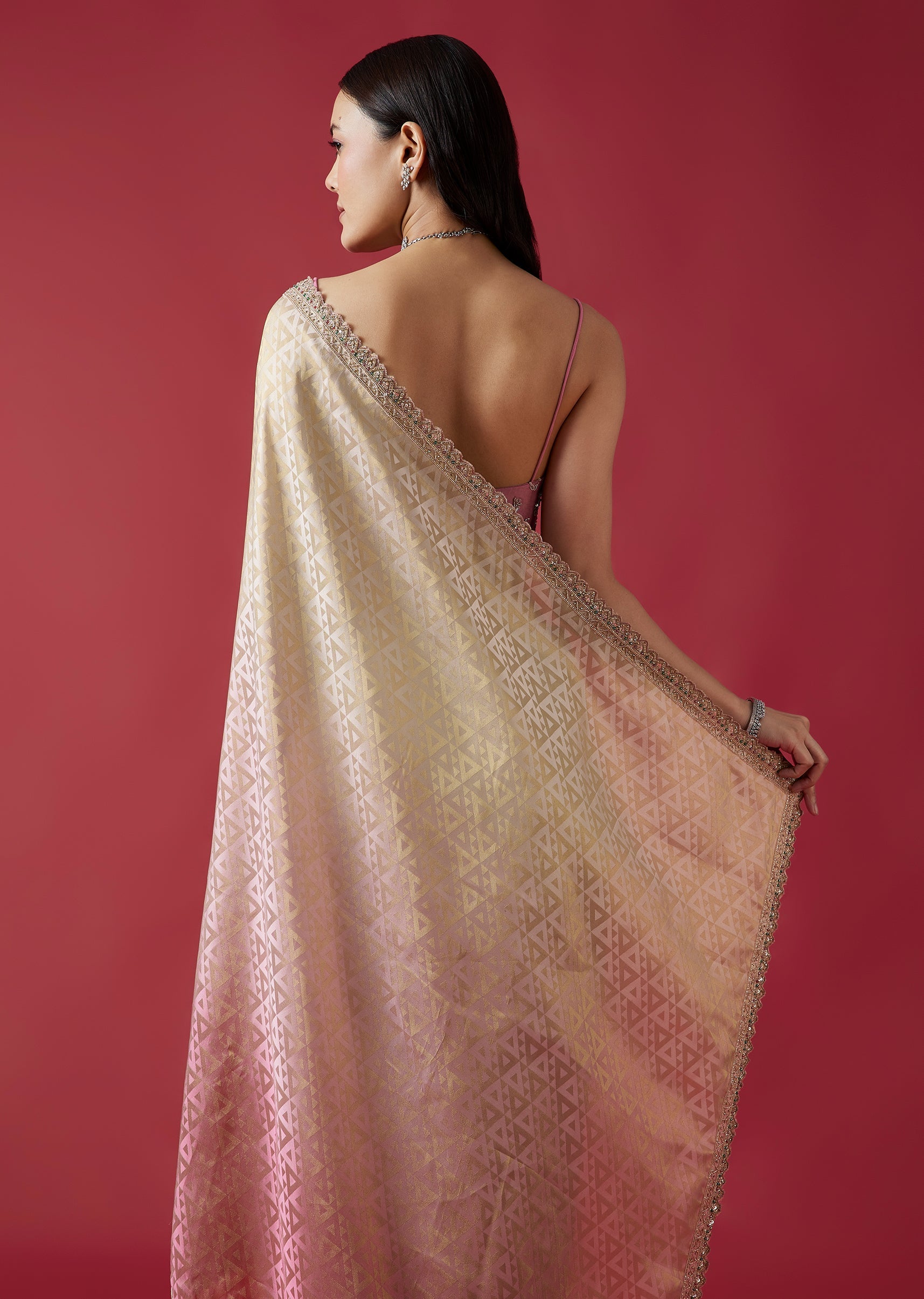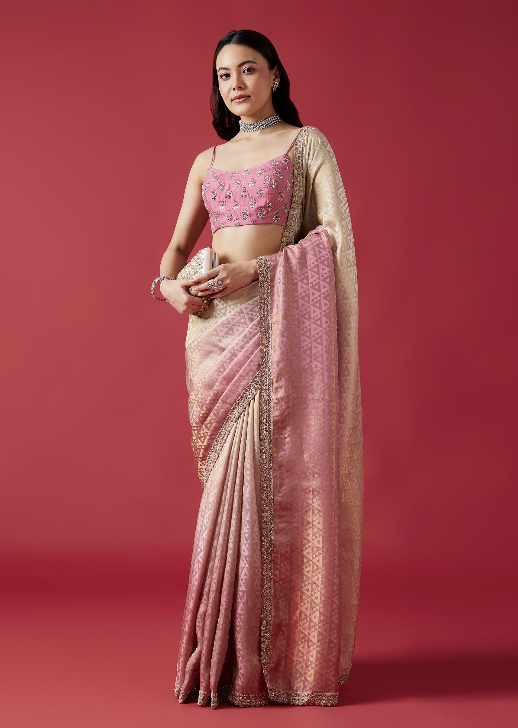 Pink Shaded Jacquard Silk Saree With Embroidered Border