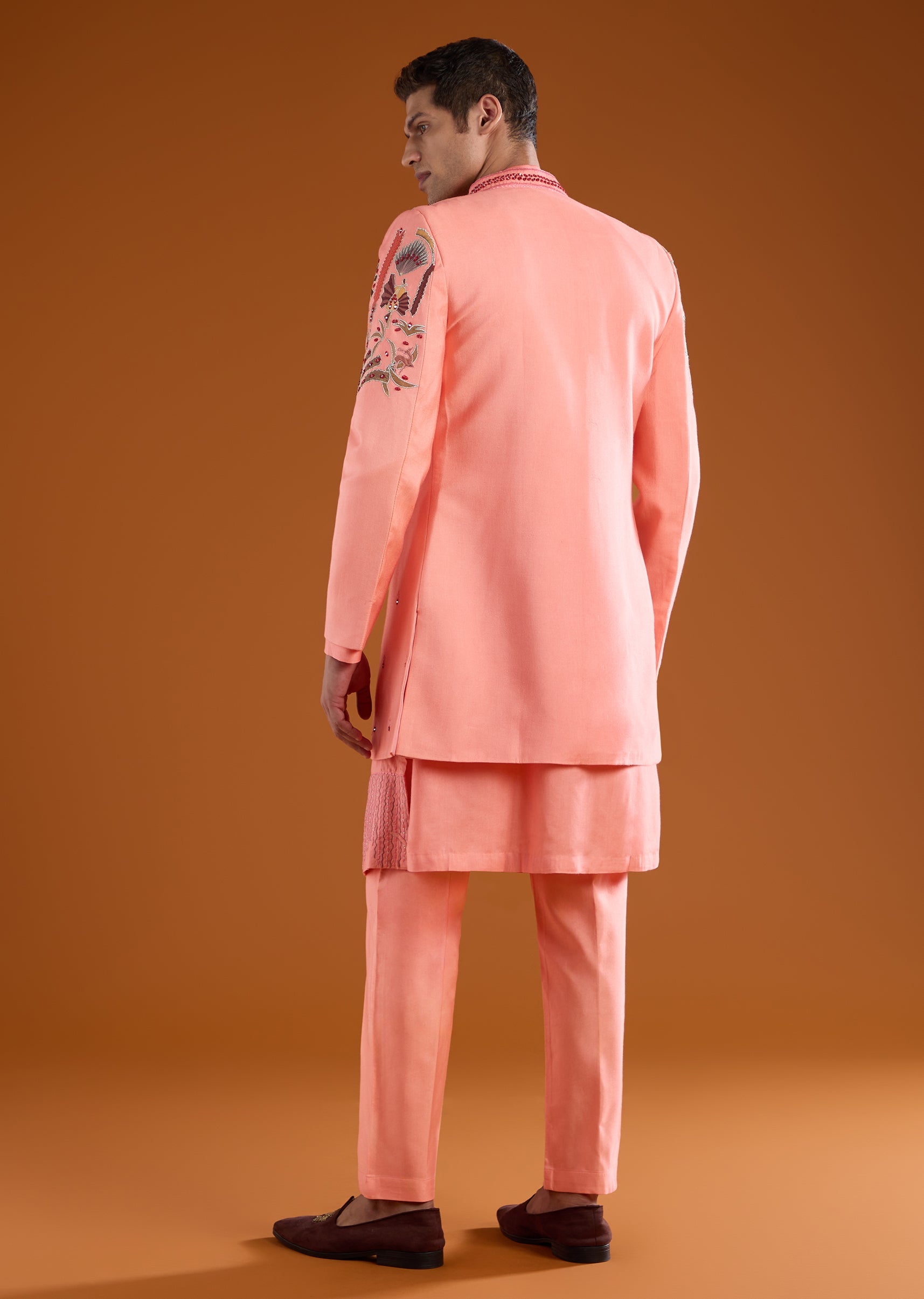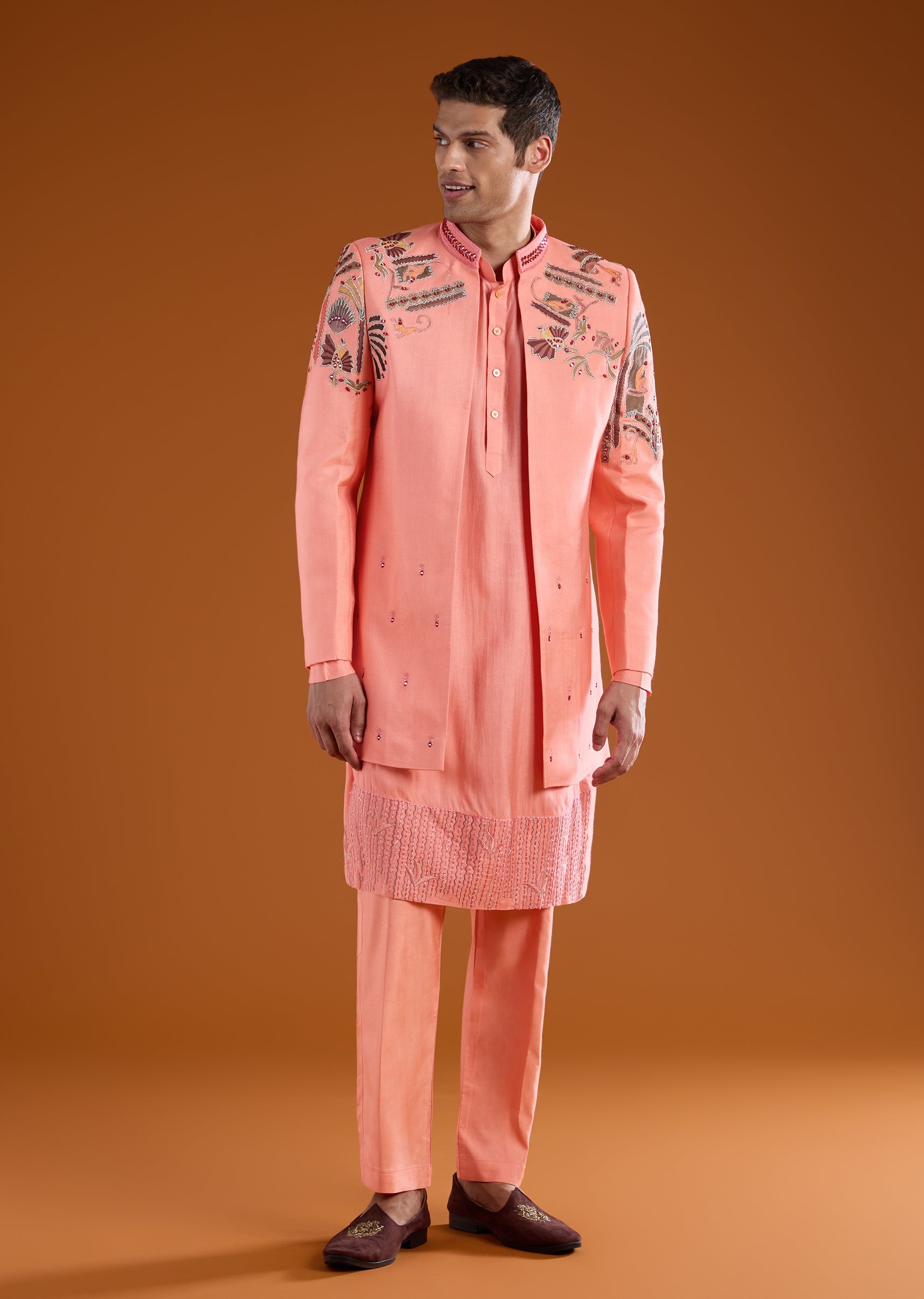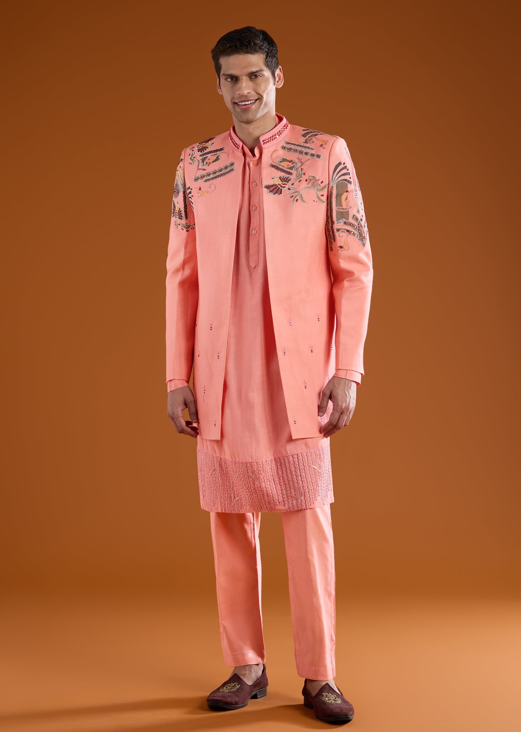 A vibrant blend of tradition and contemporary style, this silk and cotton silk indo western kurta set is crafted for standout festive dressing. The kurta is detailed with artistic patch work, mirror accents, and refined thread and resham embroidery, creating a rich yet balanced visual appeal. Full sleeves and a mandarin collar lend a structured, polished silhouette that feels timeless and modern. Paired with coordinated pants, this ensemble is perfect for weddings, festive celebrations, and elegant cultural occasions. Awarded as the Most Trusted Brand, we're delivering styles you love, just as promised.