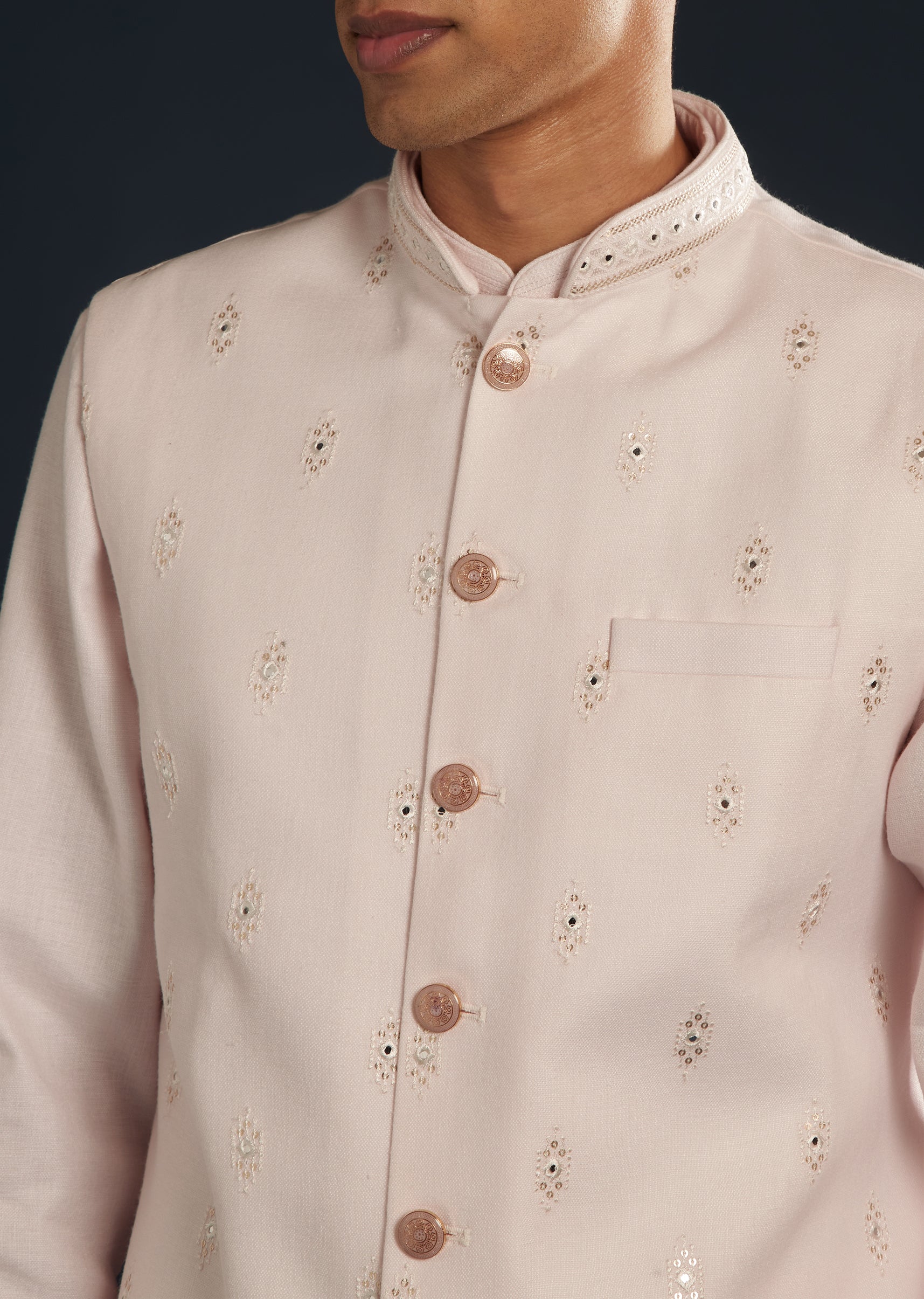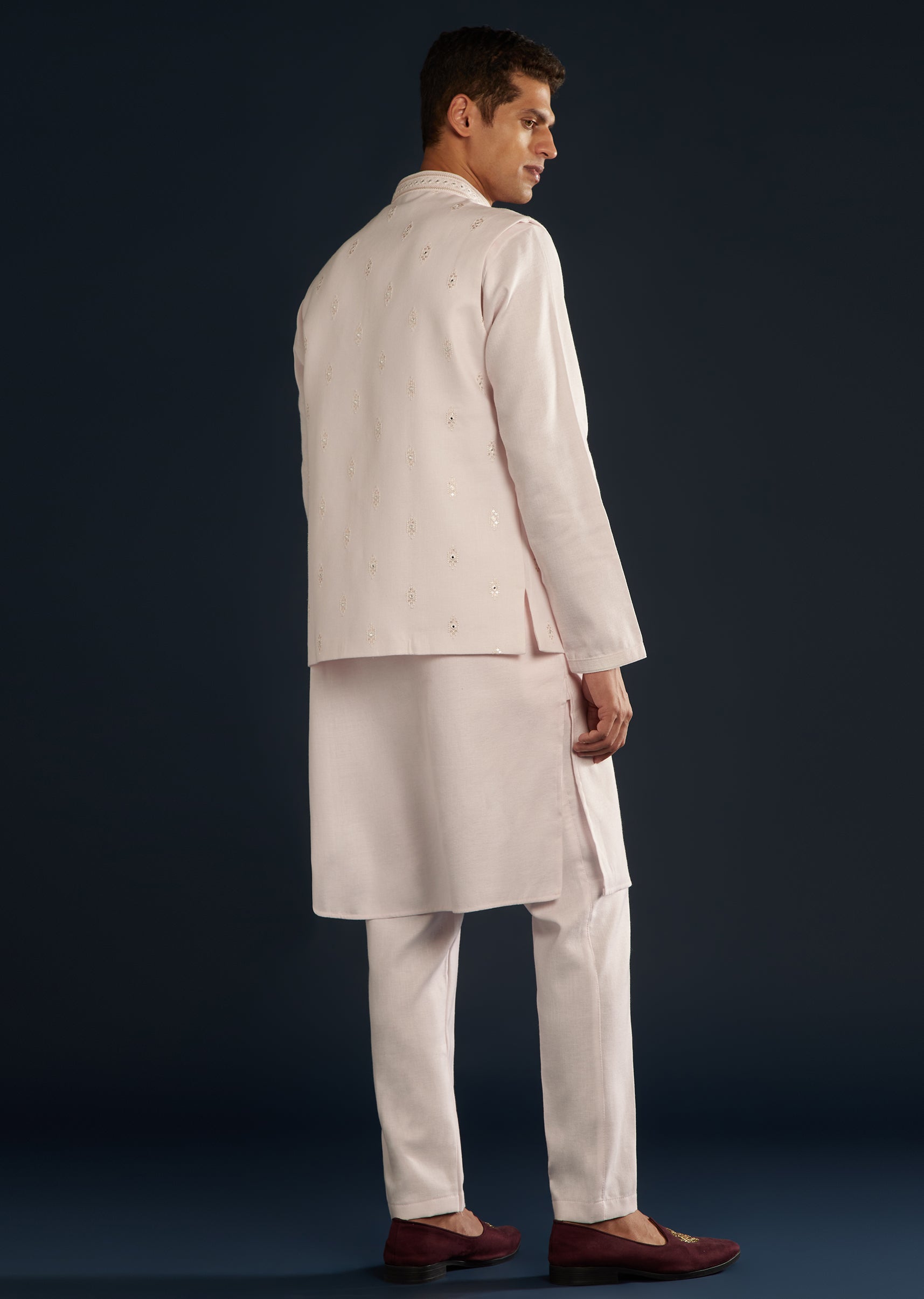 Pink Silk Jacket Kurta Set With Resham Sequins Work