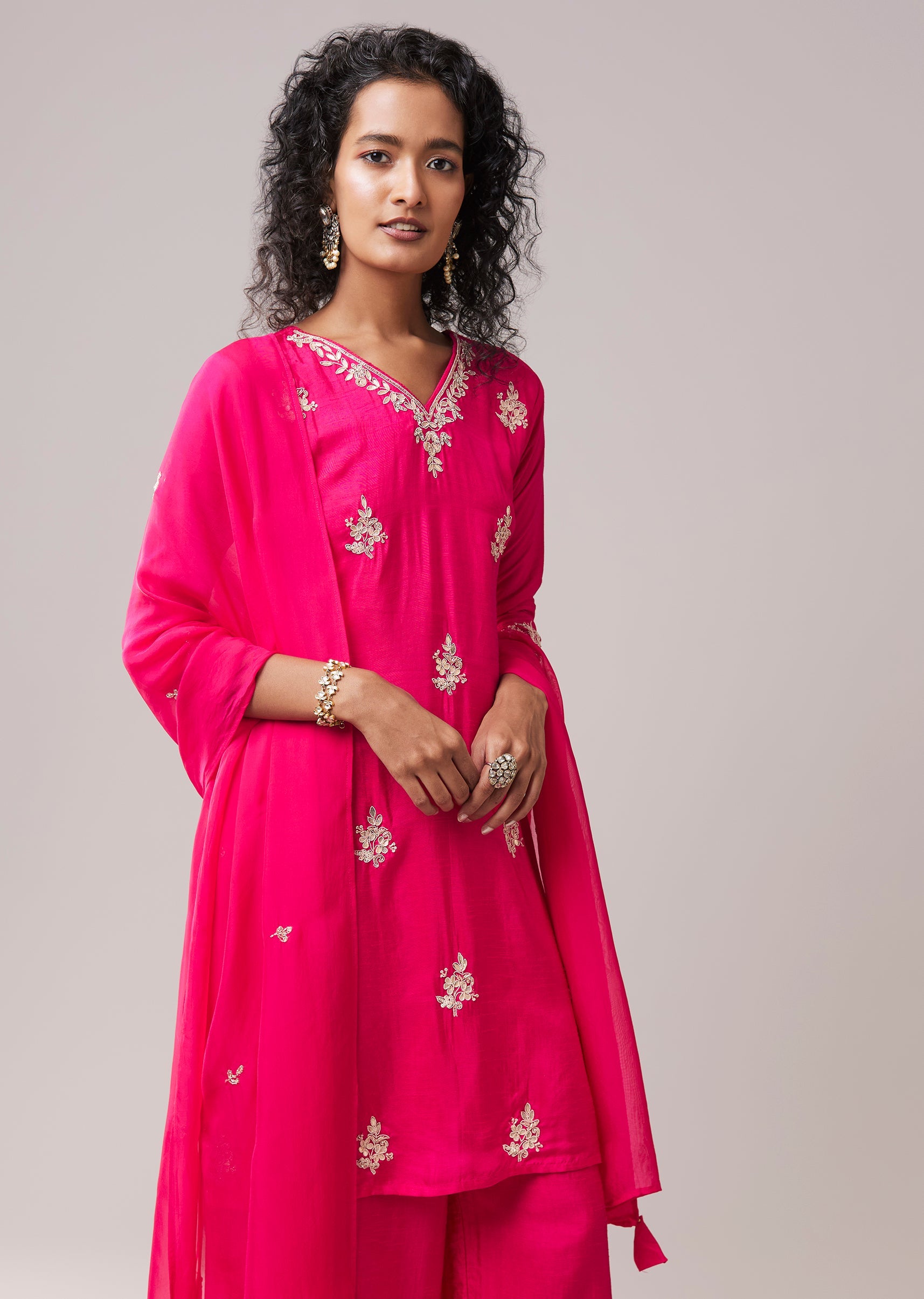 Rooted in festive tradition with a refined finish, this gotta and zardosi work kurta set is crafted for elegant celebrations. The silk kurta features intricate embroidery that adds richness without... More Product Details