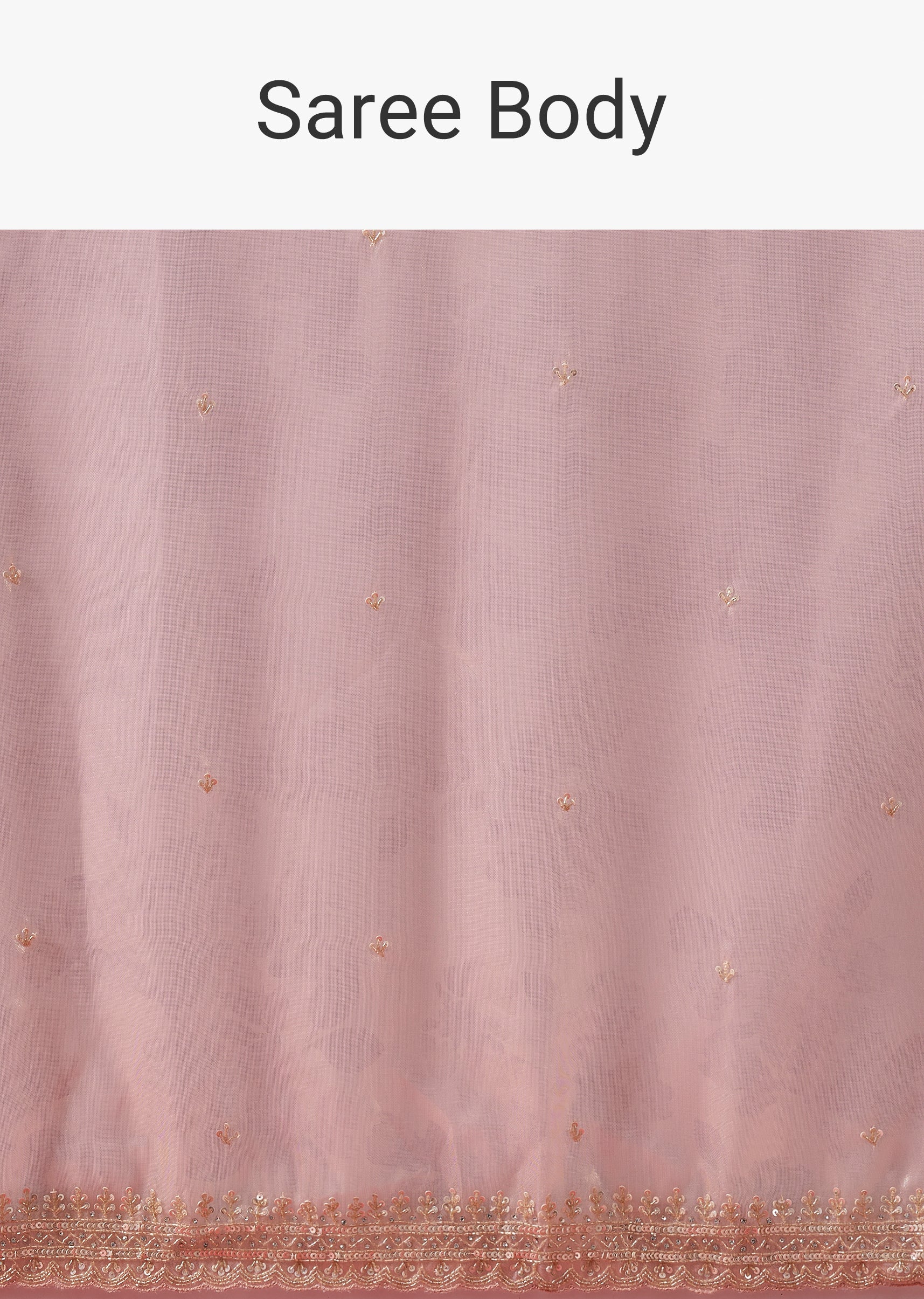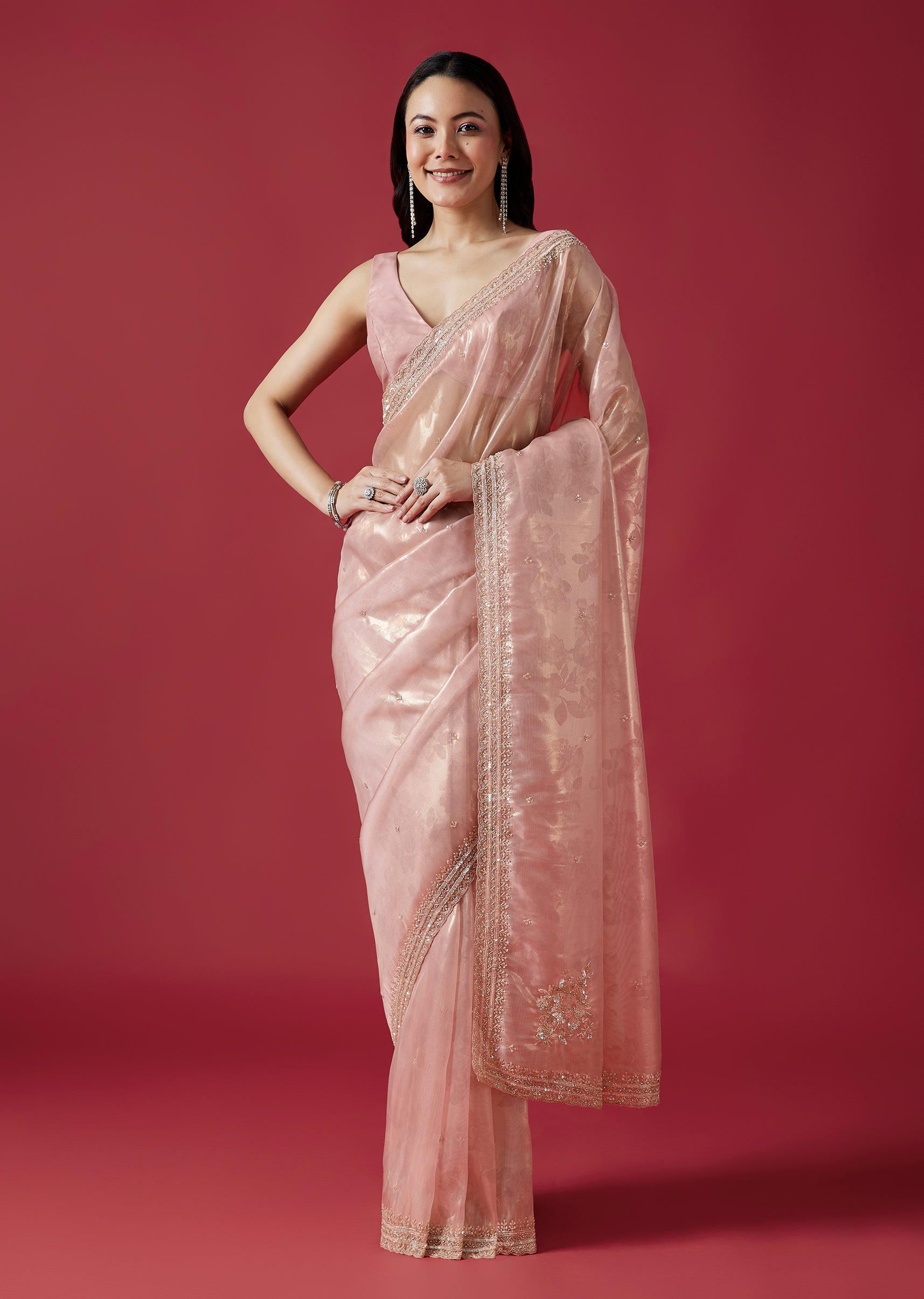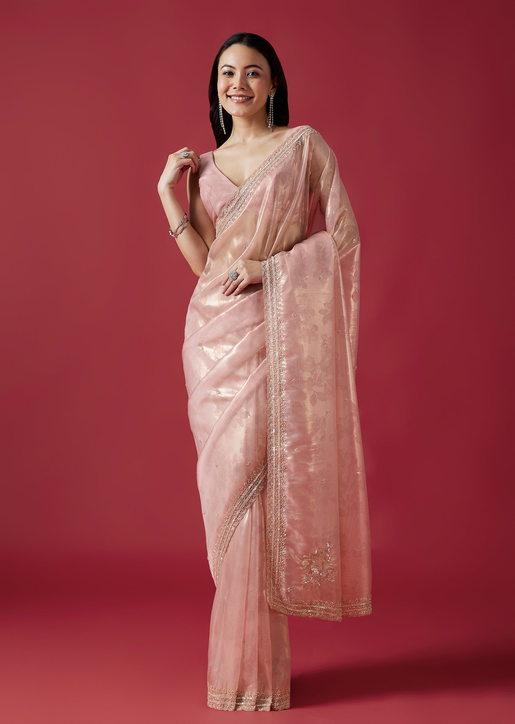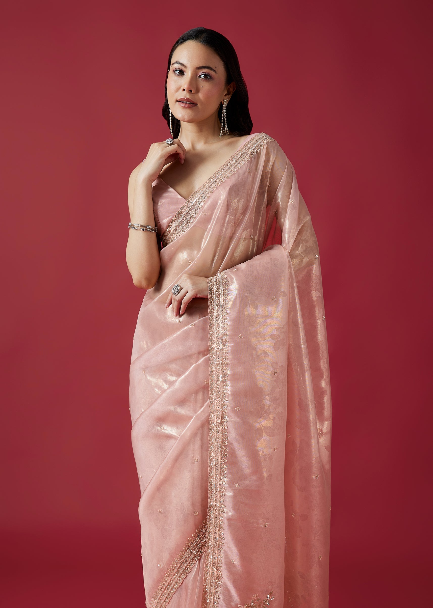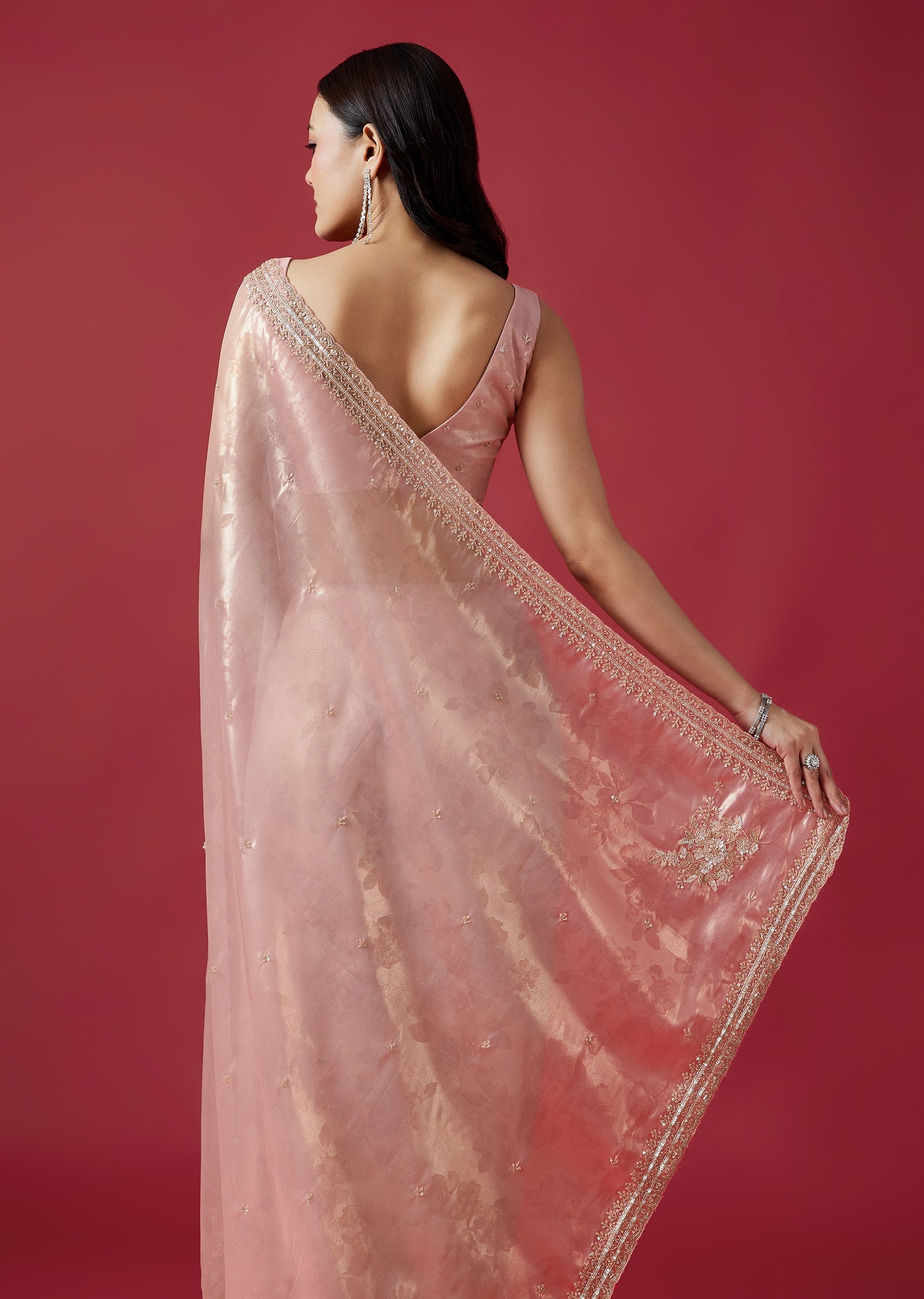 Pink Tissue Organza Jacquard Saree With Embroidered Scallop Border