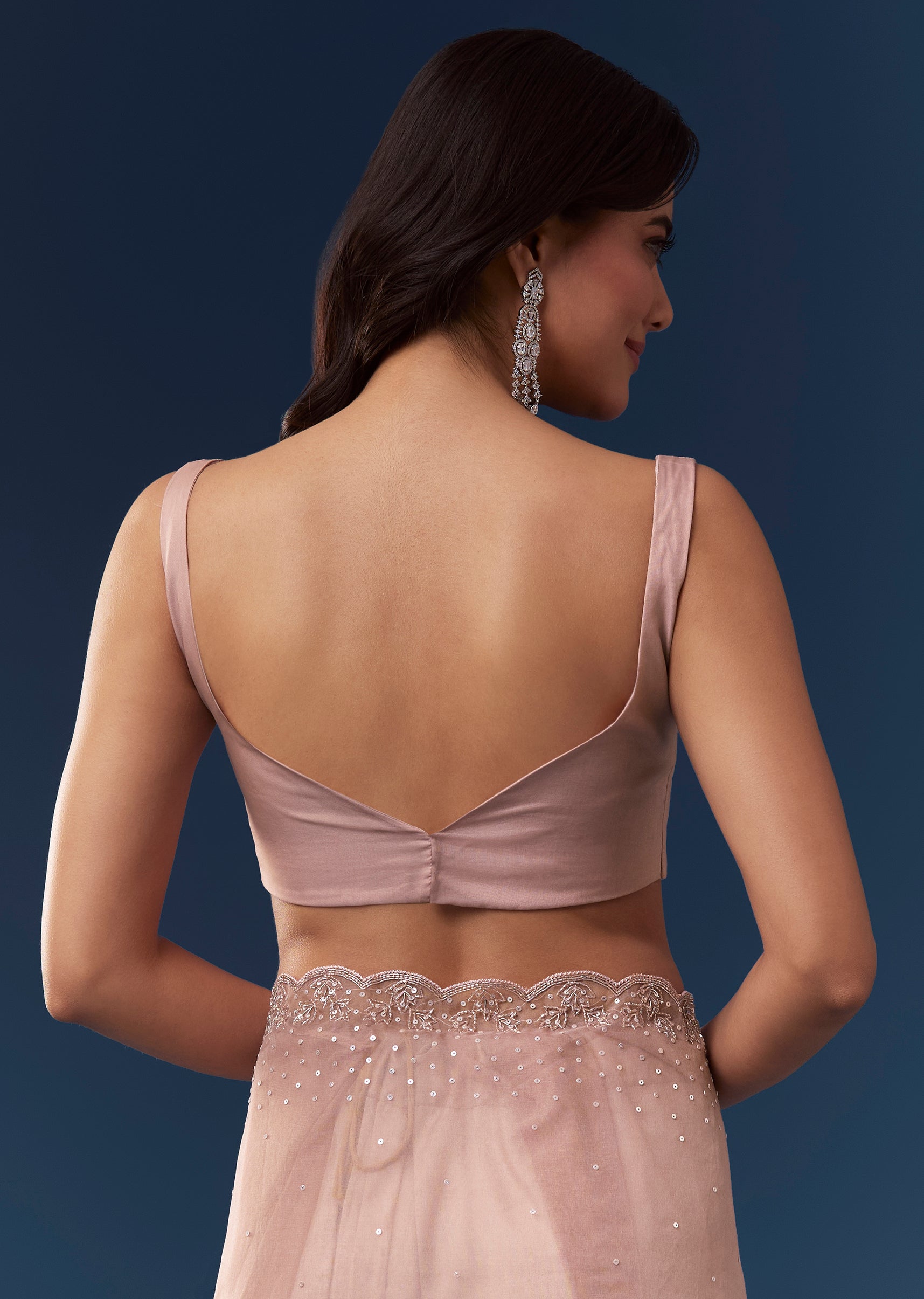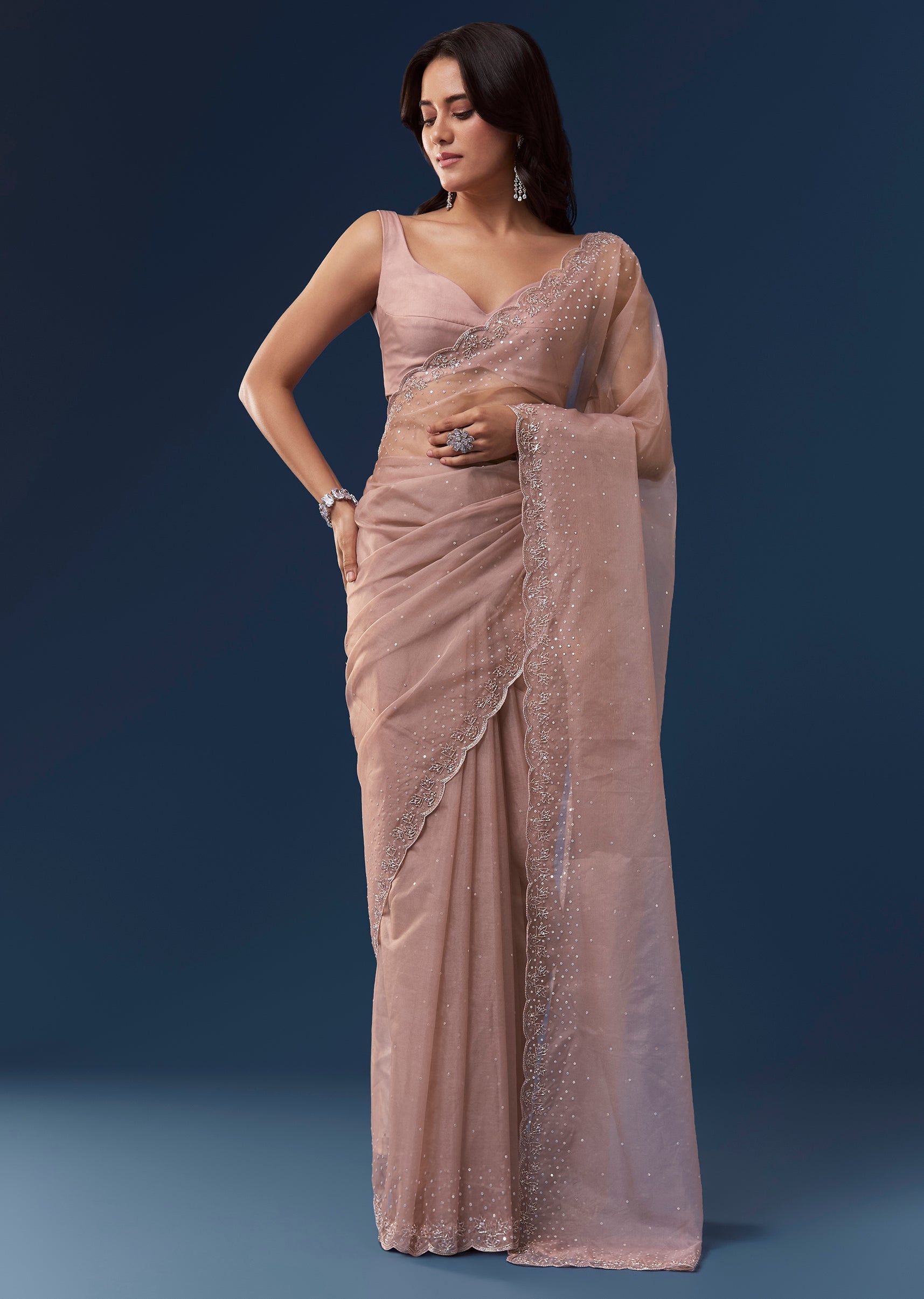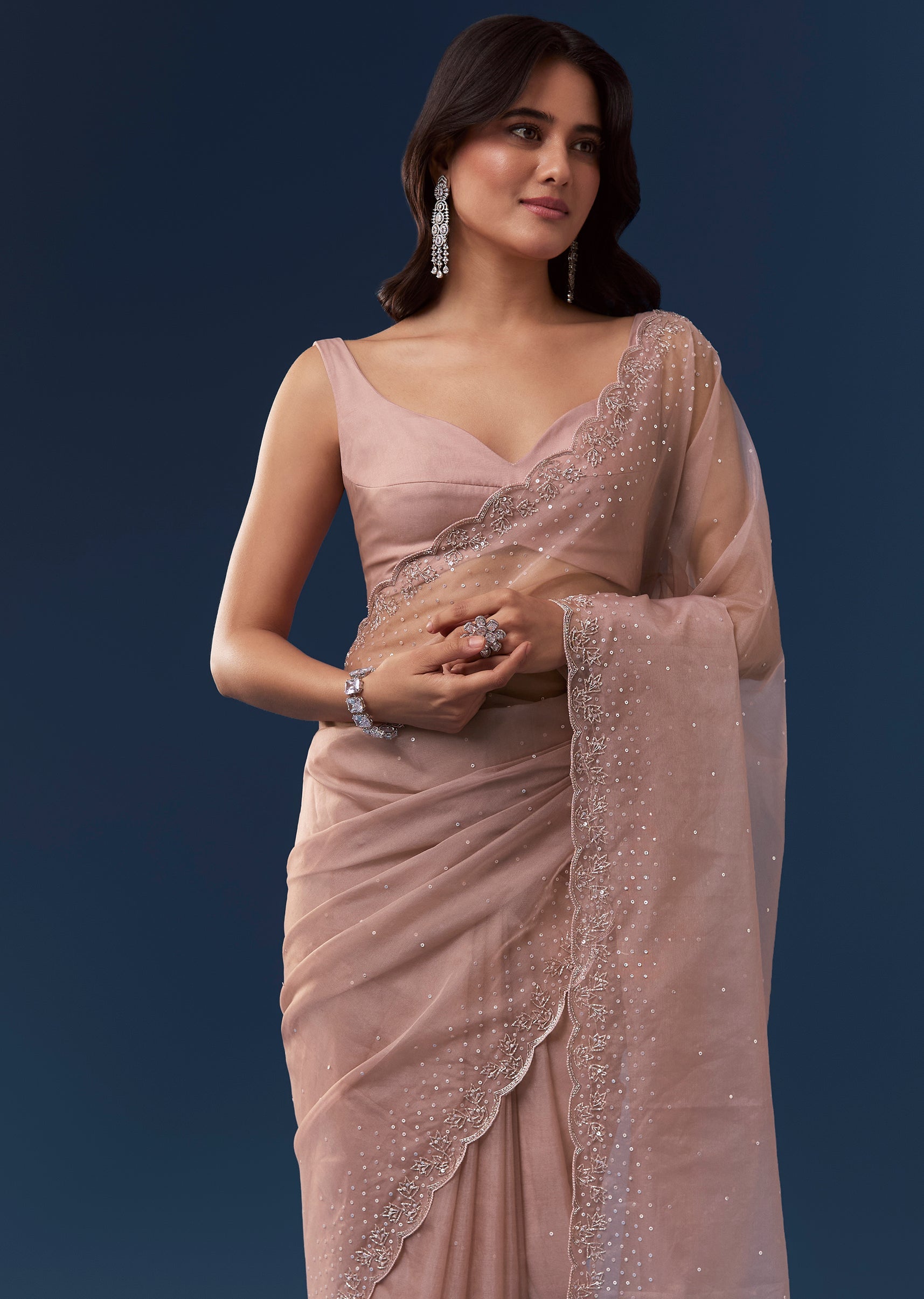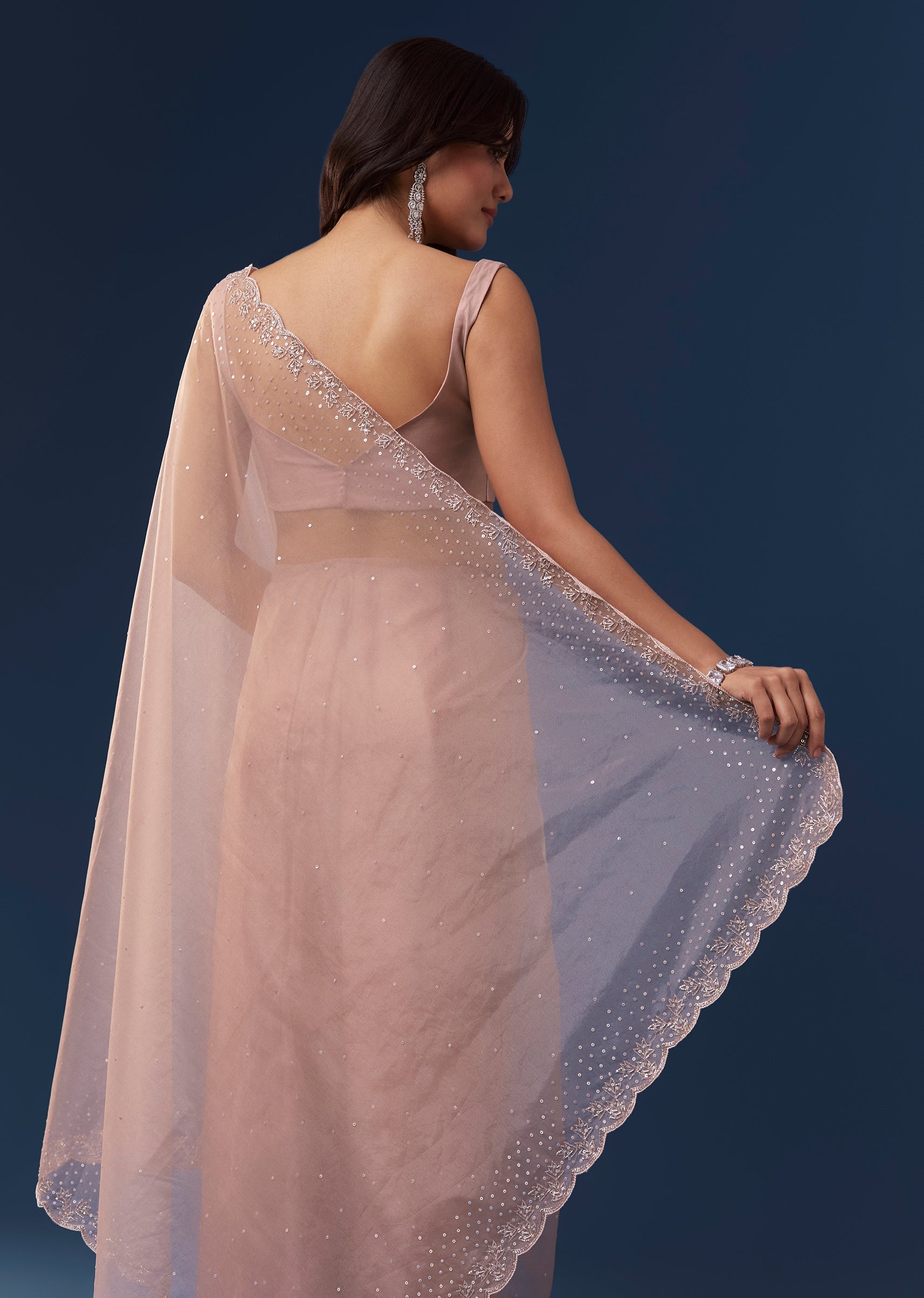 Pink Tissue Saree With Scallop Border And Cutdana Sequin Embroidery