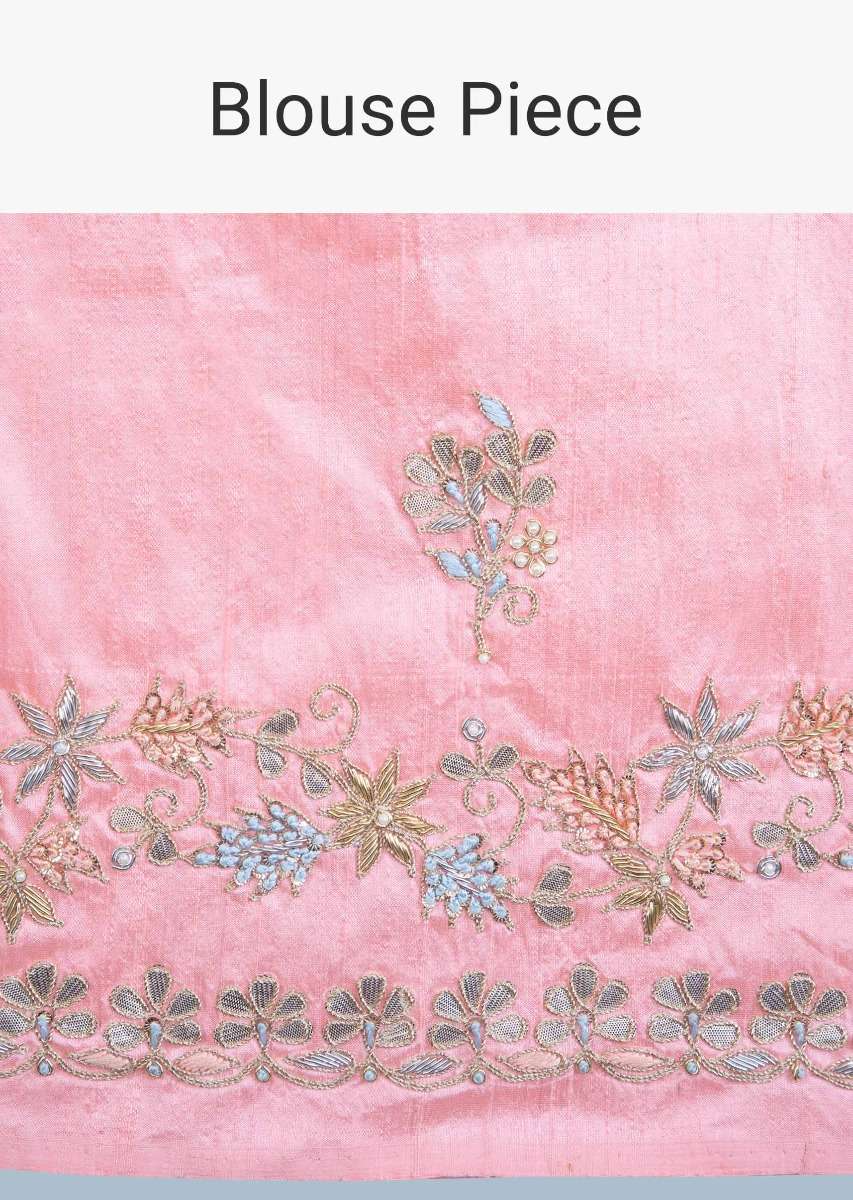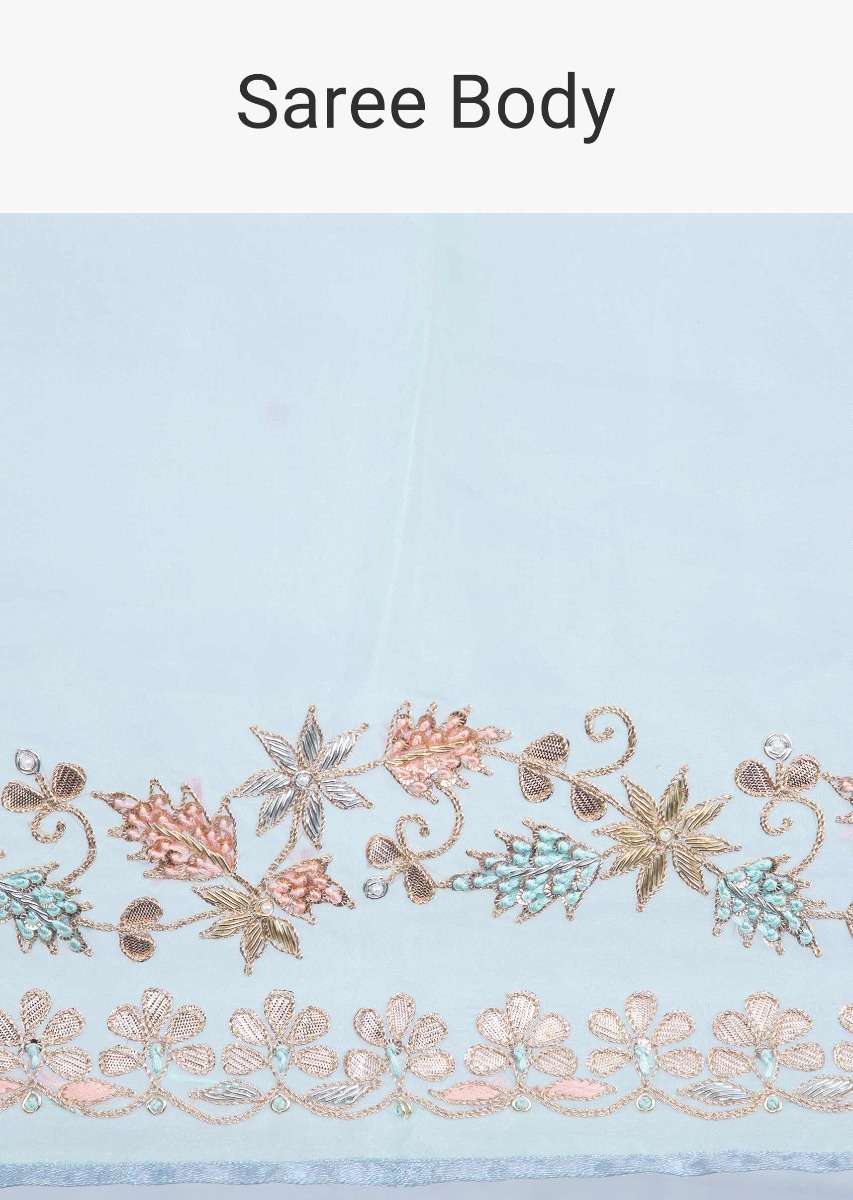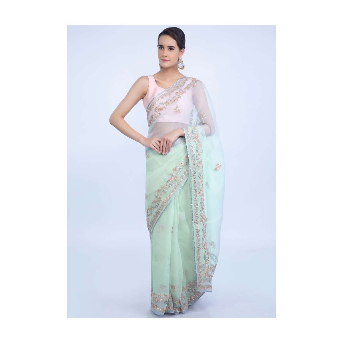 Pista green organza saree with floral embellished butti and border only on Kalki