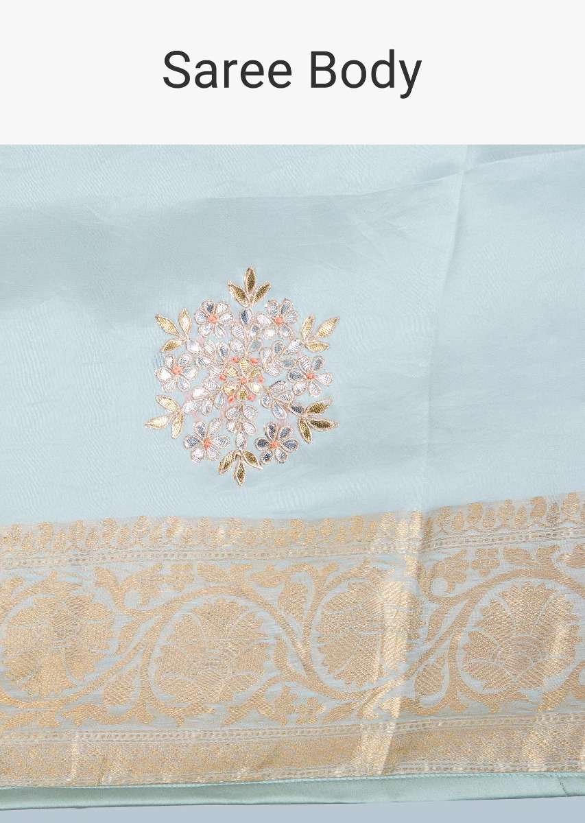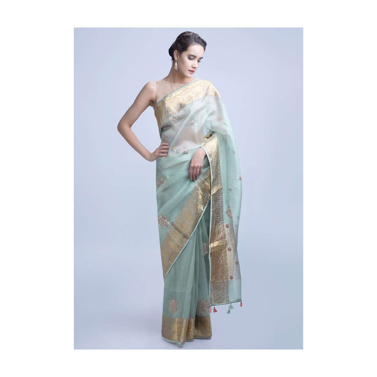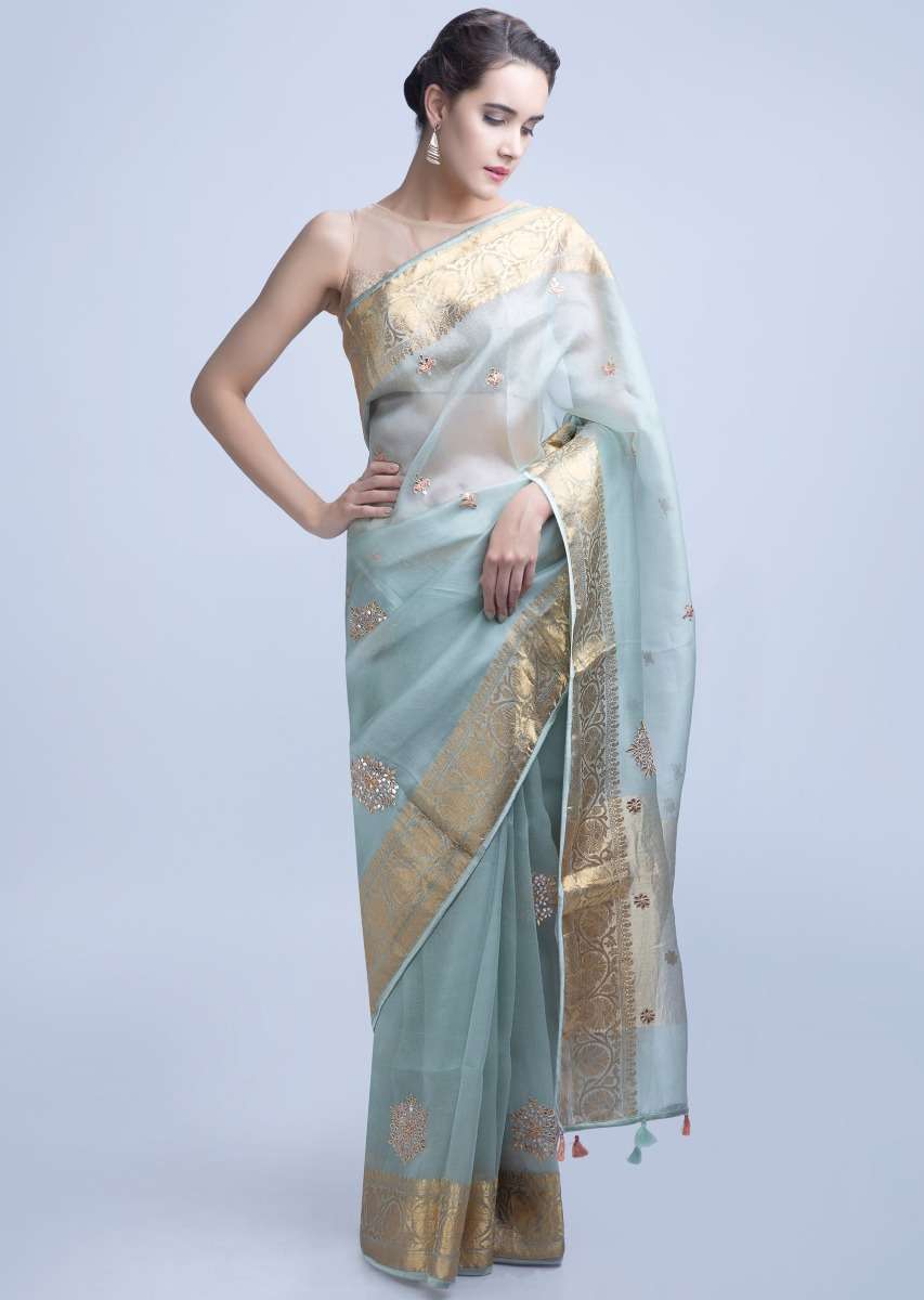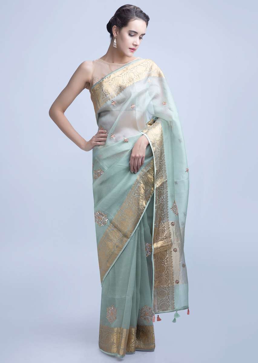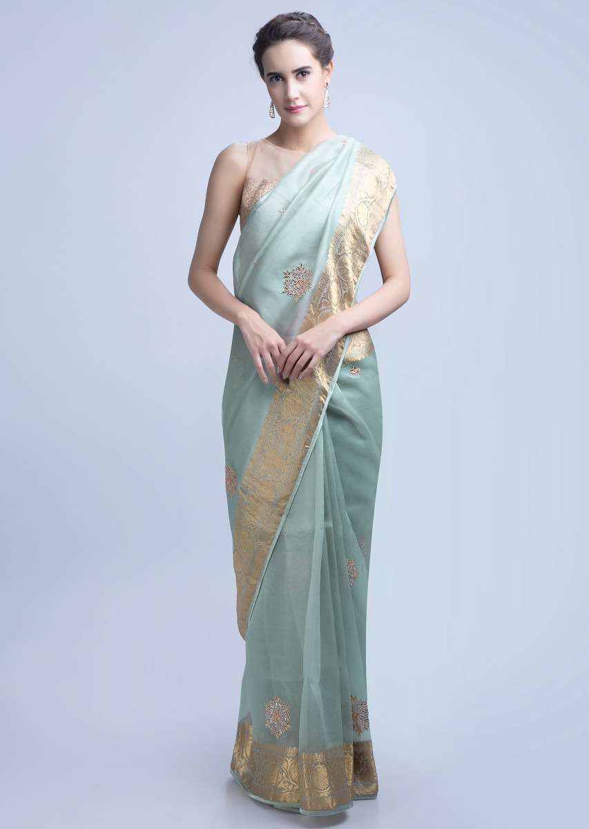 Pista green organza saree with gotta embroidered butti only on Kalki