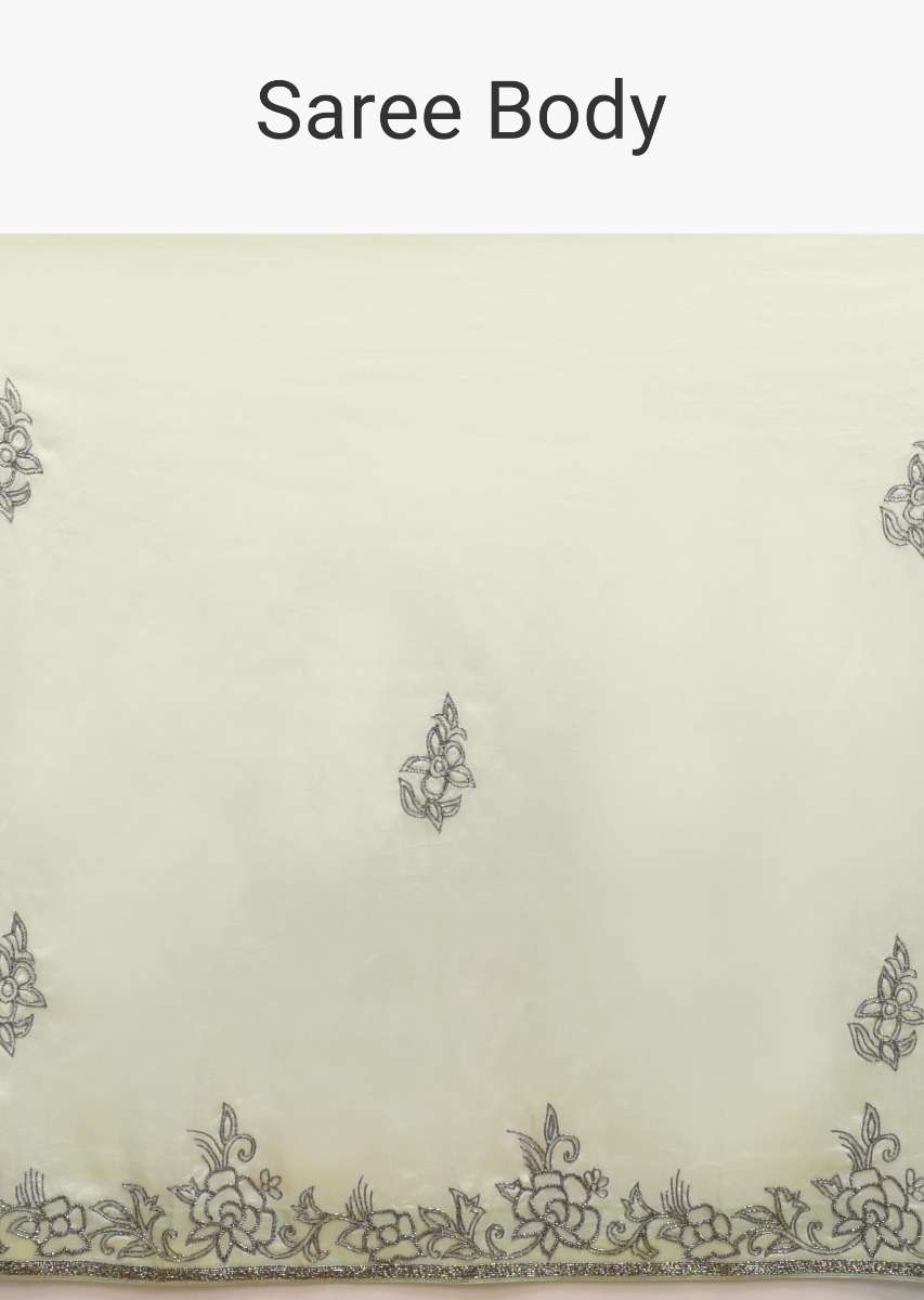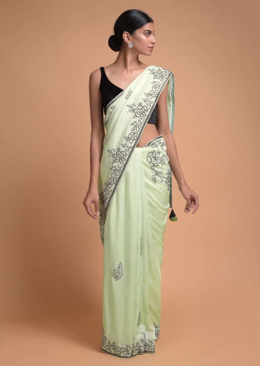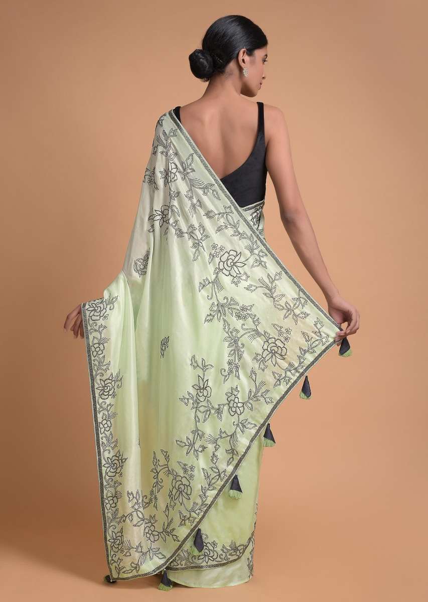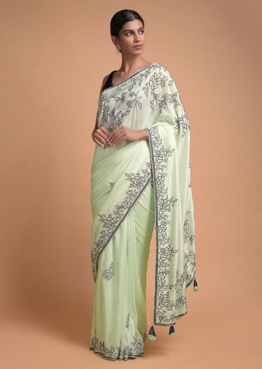 Pista Green Saree In Crepe With Beads In Floral Buttis And On The Border Online - Kalki Fashion