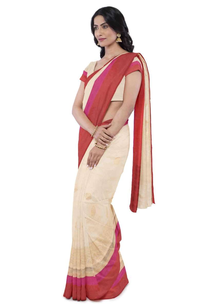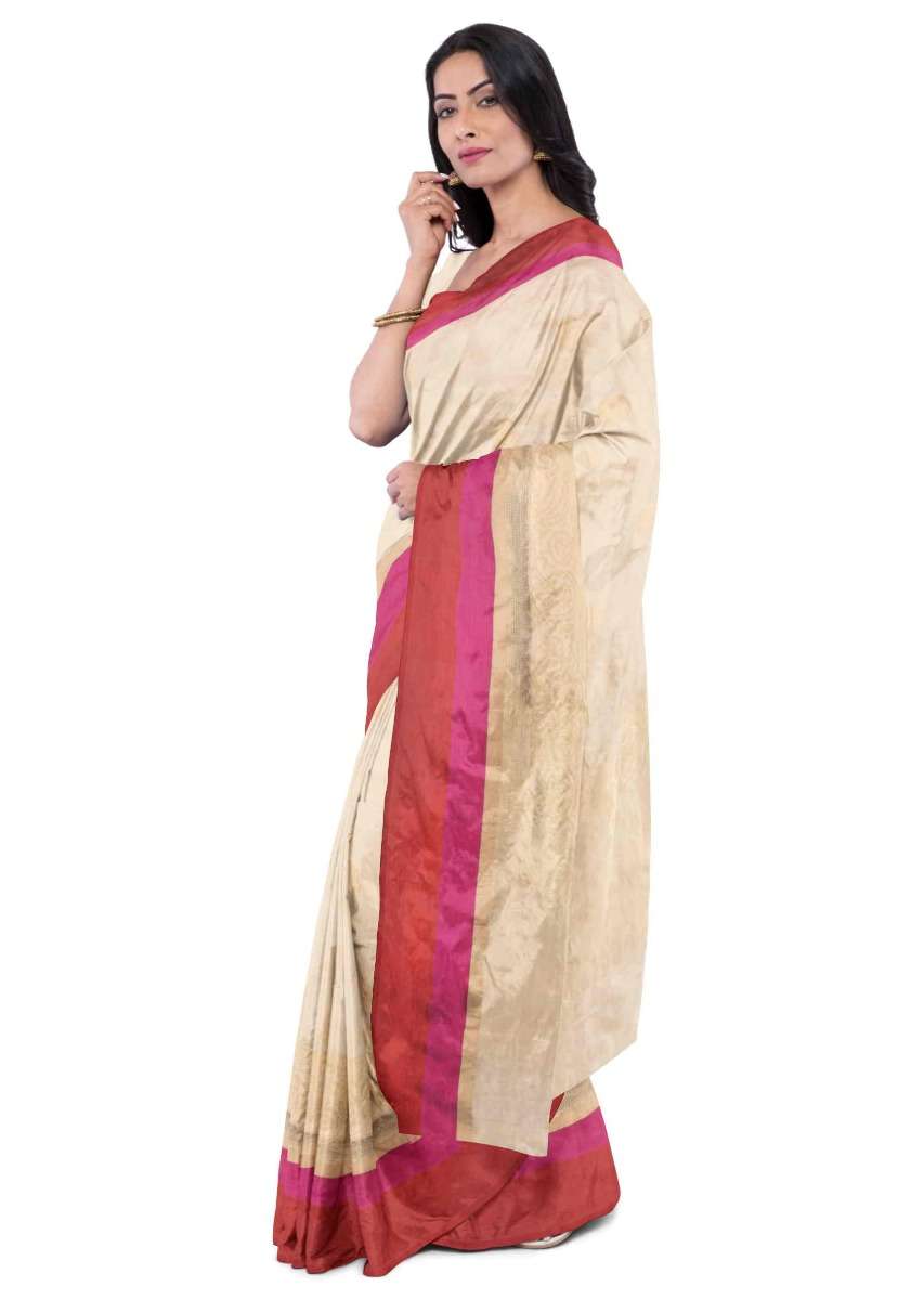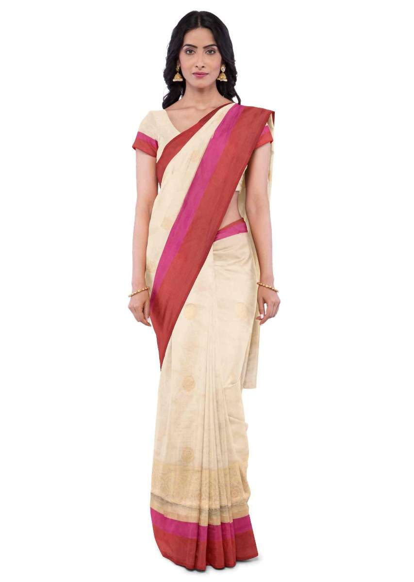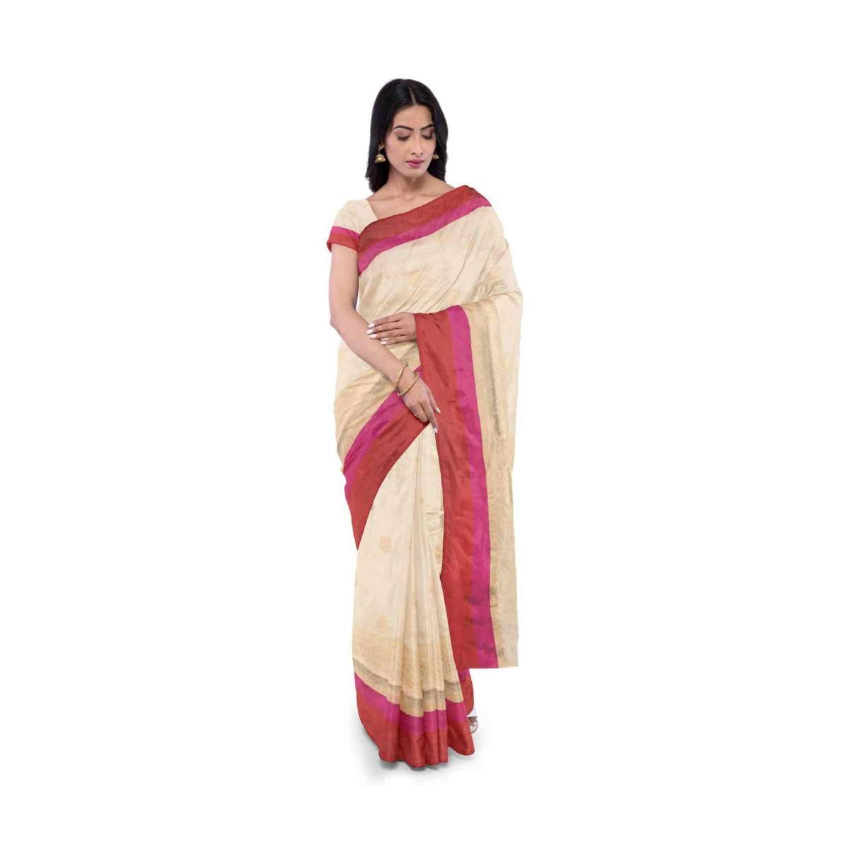 Powder Peach Banarasi Silk Saree With Matching Blouse Piece Online - Kalki Fashion
