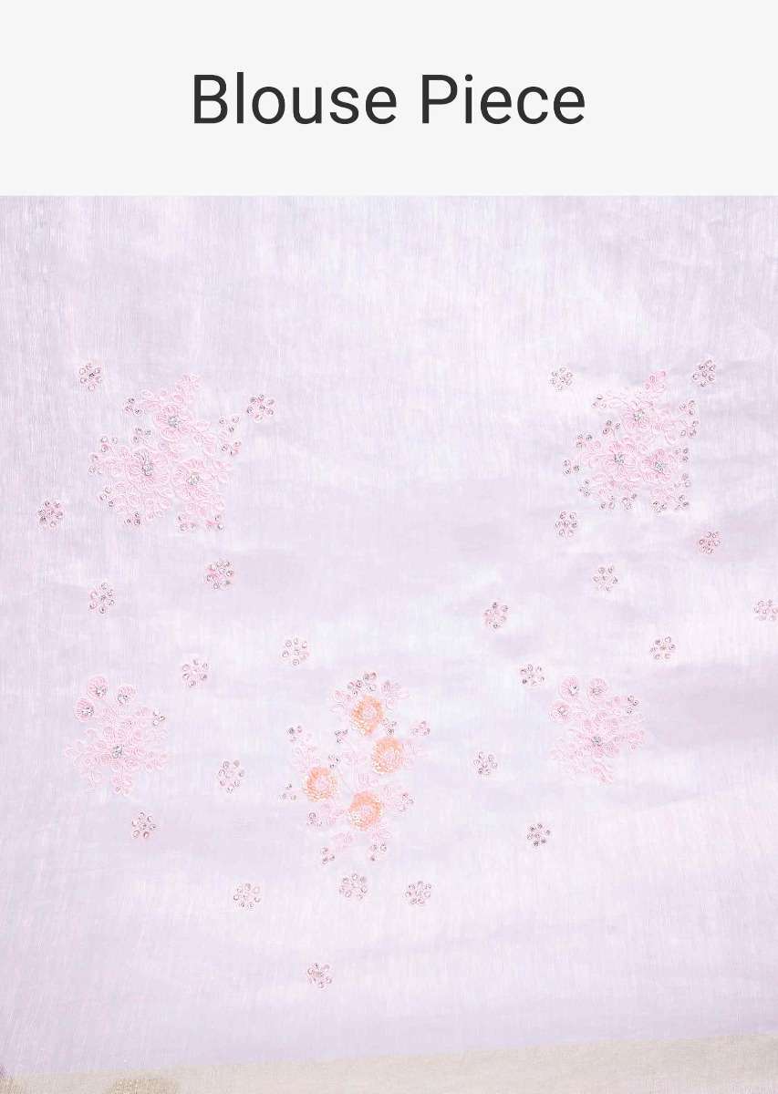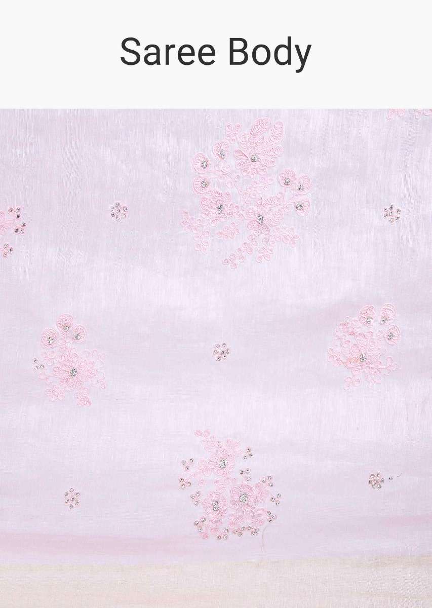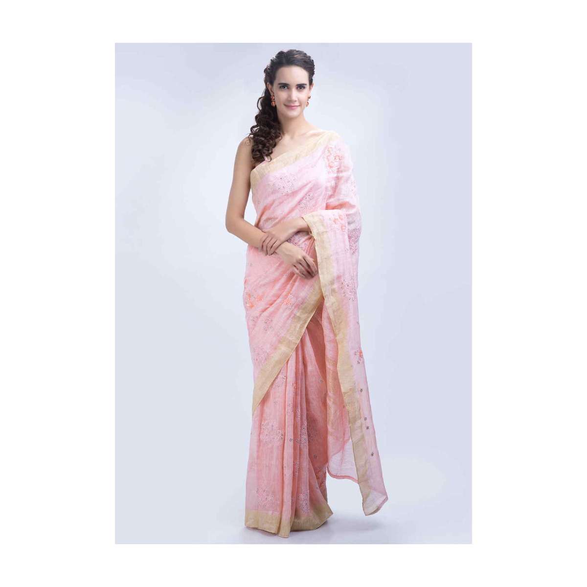 Powder pink linen saree with floral embroidered butti only on Kalki