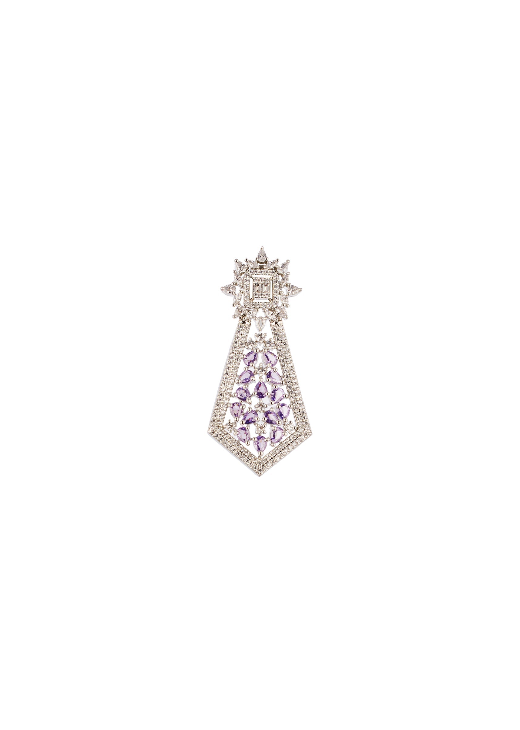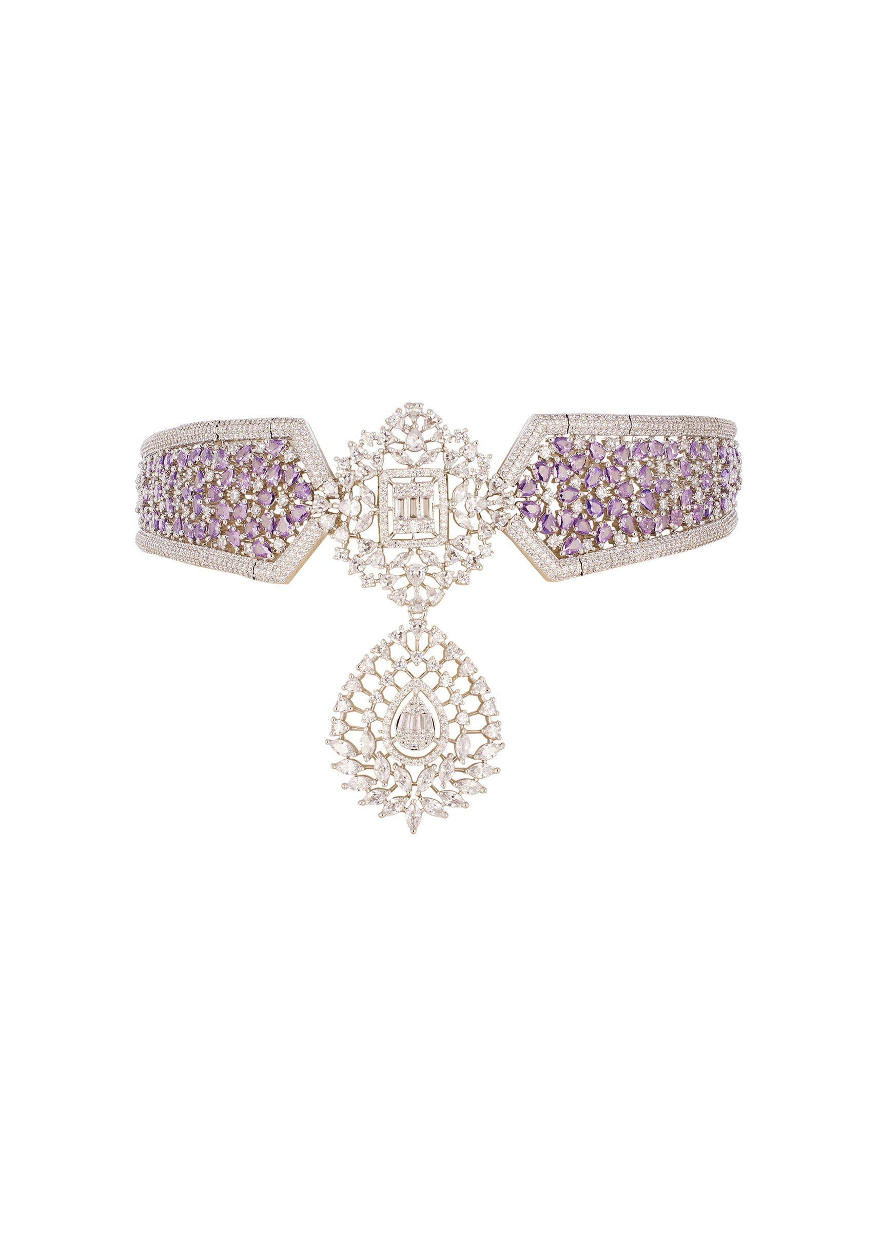 Purple Anti Tarnish Rhodium Plated Long Necklace Set with CZ Diamond