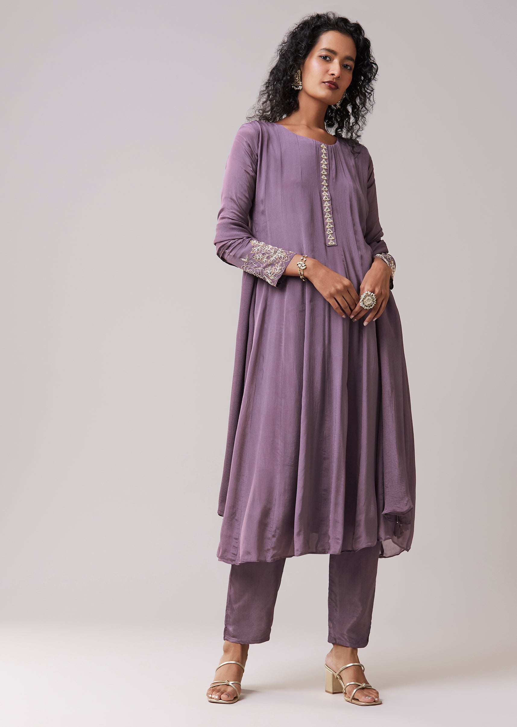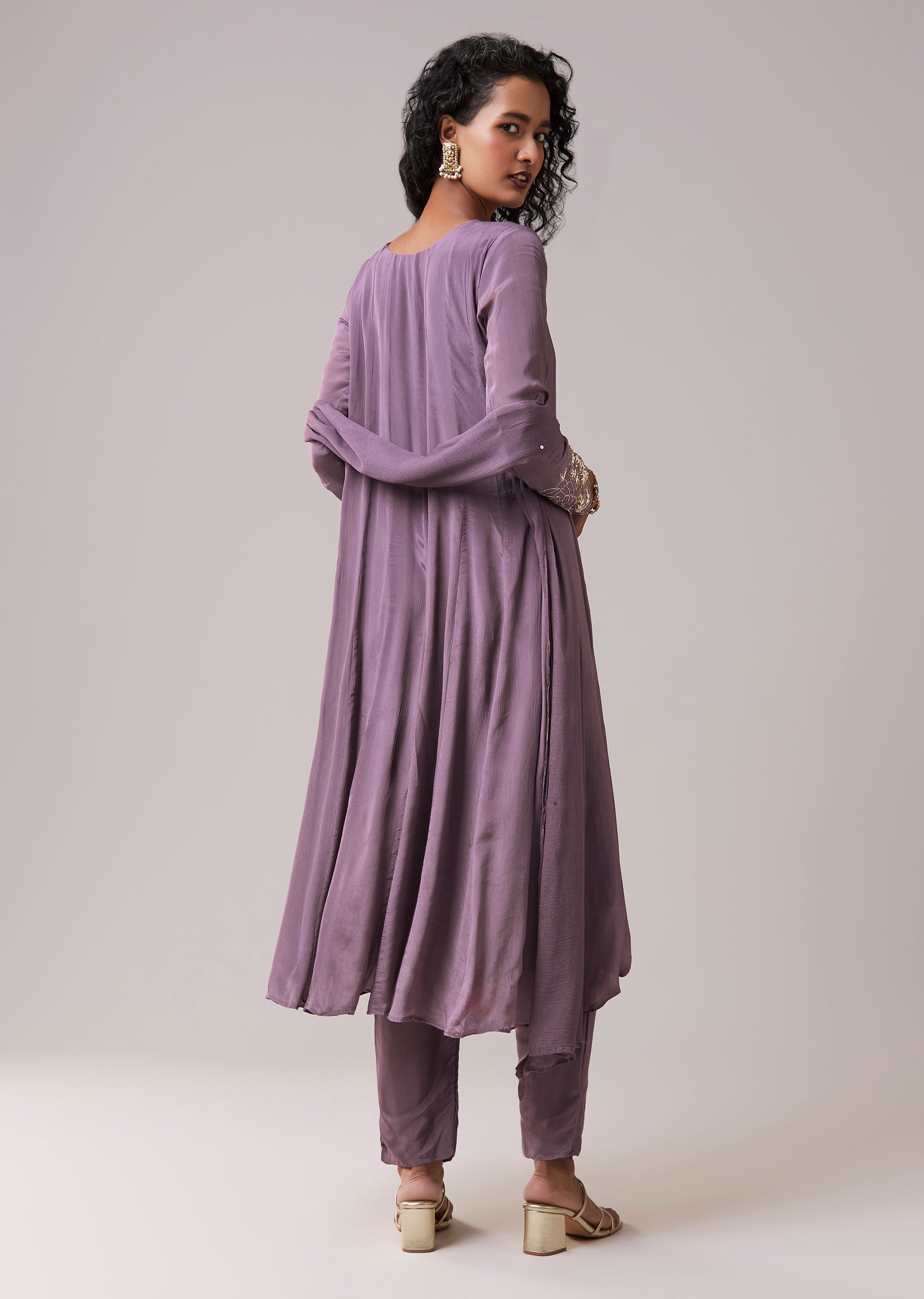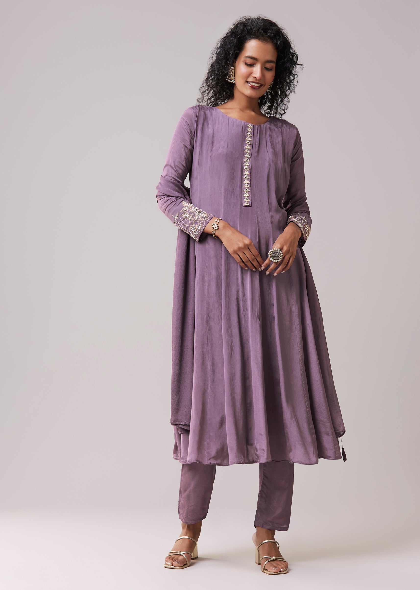 Purple Moti Work Cotton Silk Embroidered Anarkali Set