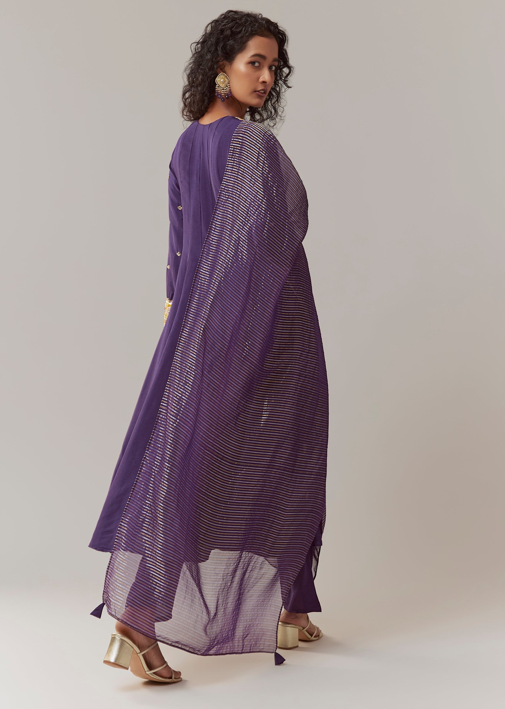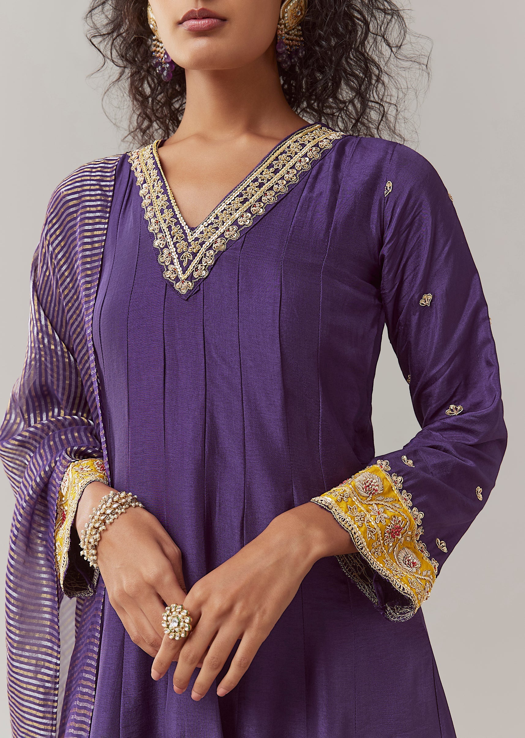A celebration of fine craftsmanship, this silk anarkali is adorned with intricate zardosi, sequins, and moti work that lends a refined festive glow. The V neckline and 3/4th sleeves are... More Product Details