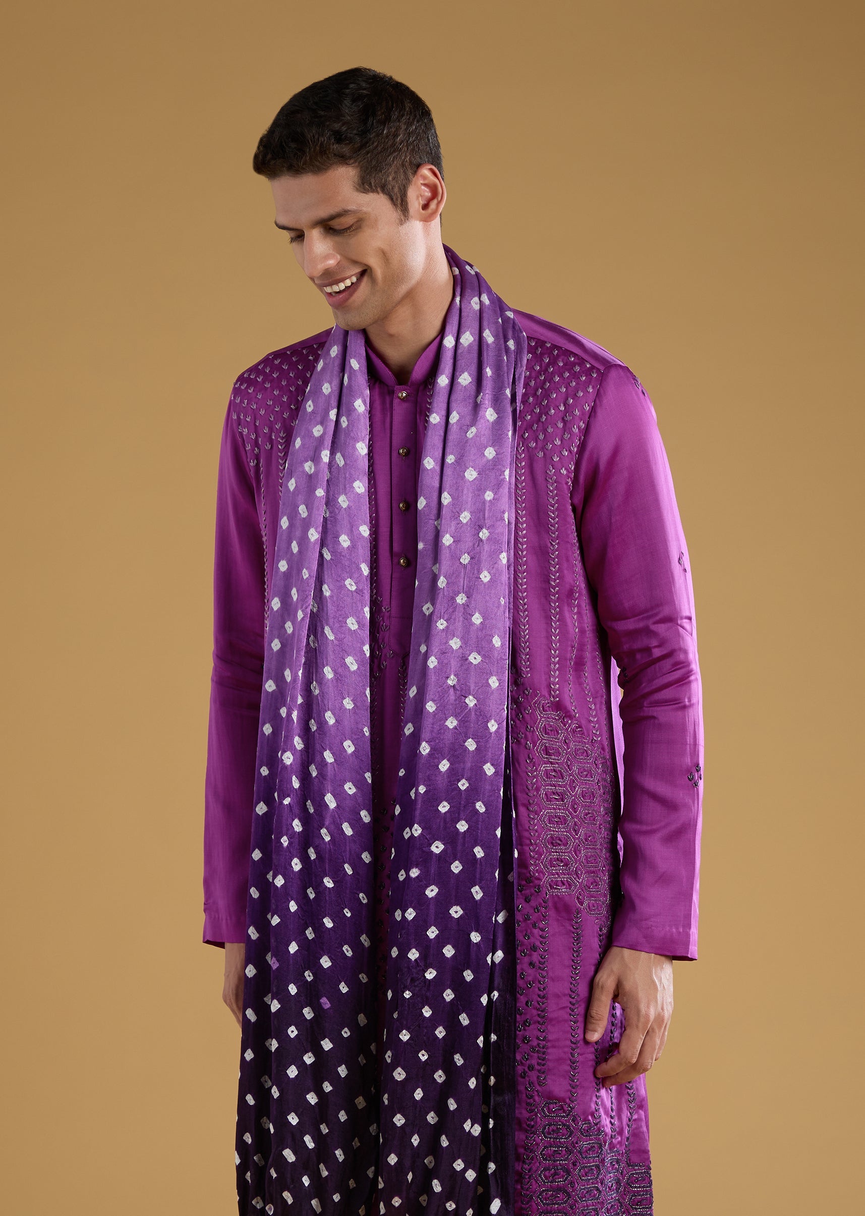 Purple Silk Embroidered Men's Kurta Set with Dupatta