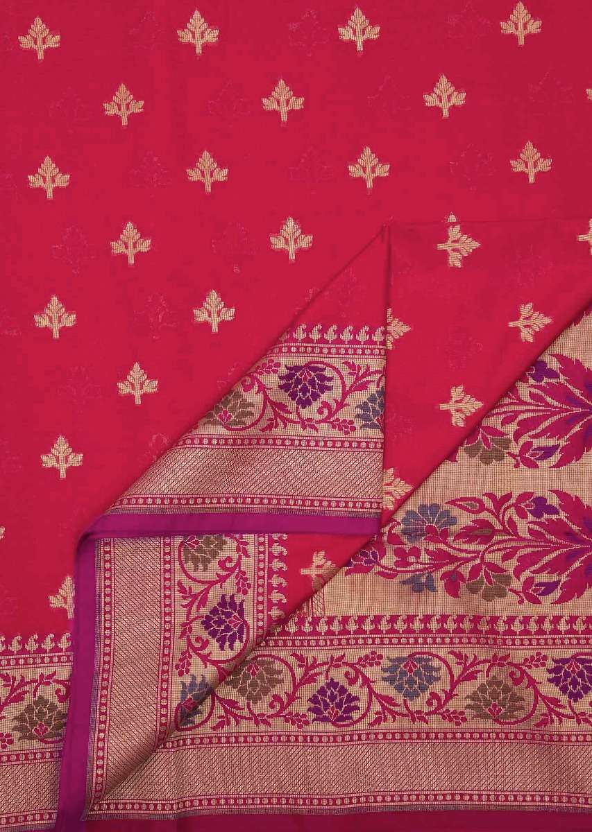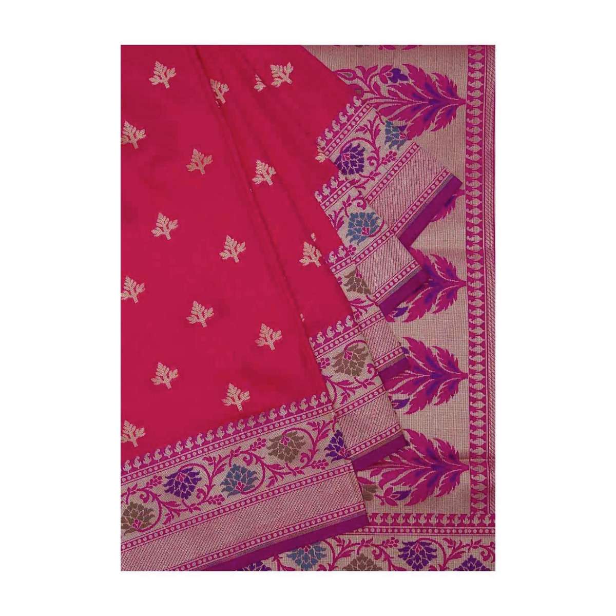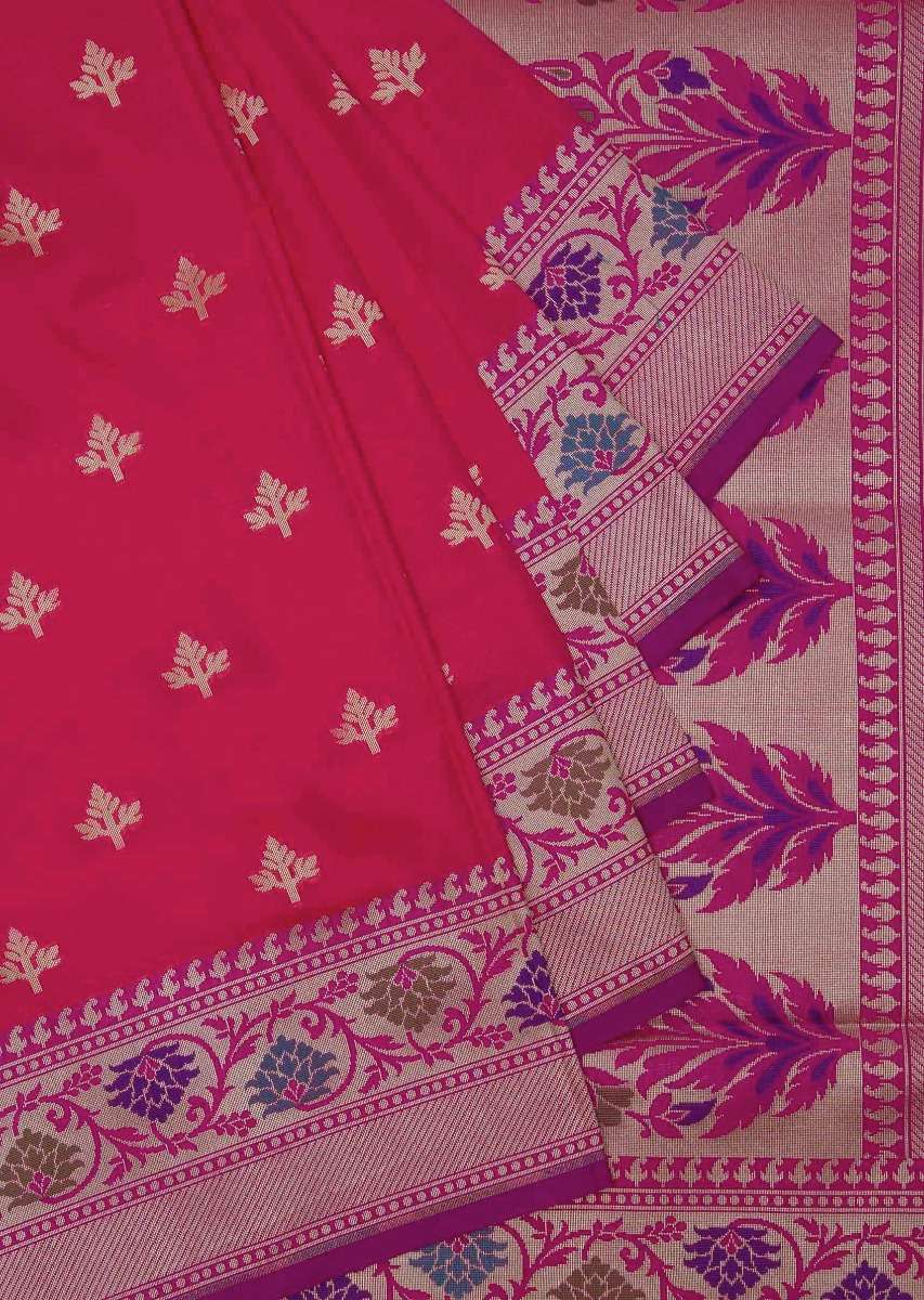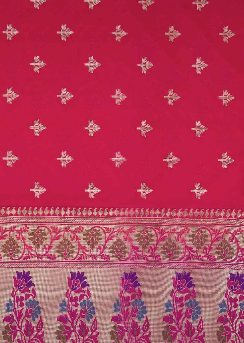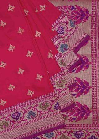 Rani pink saree in silk with weaved butti and brocade pallav only on Kalki