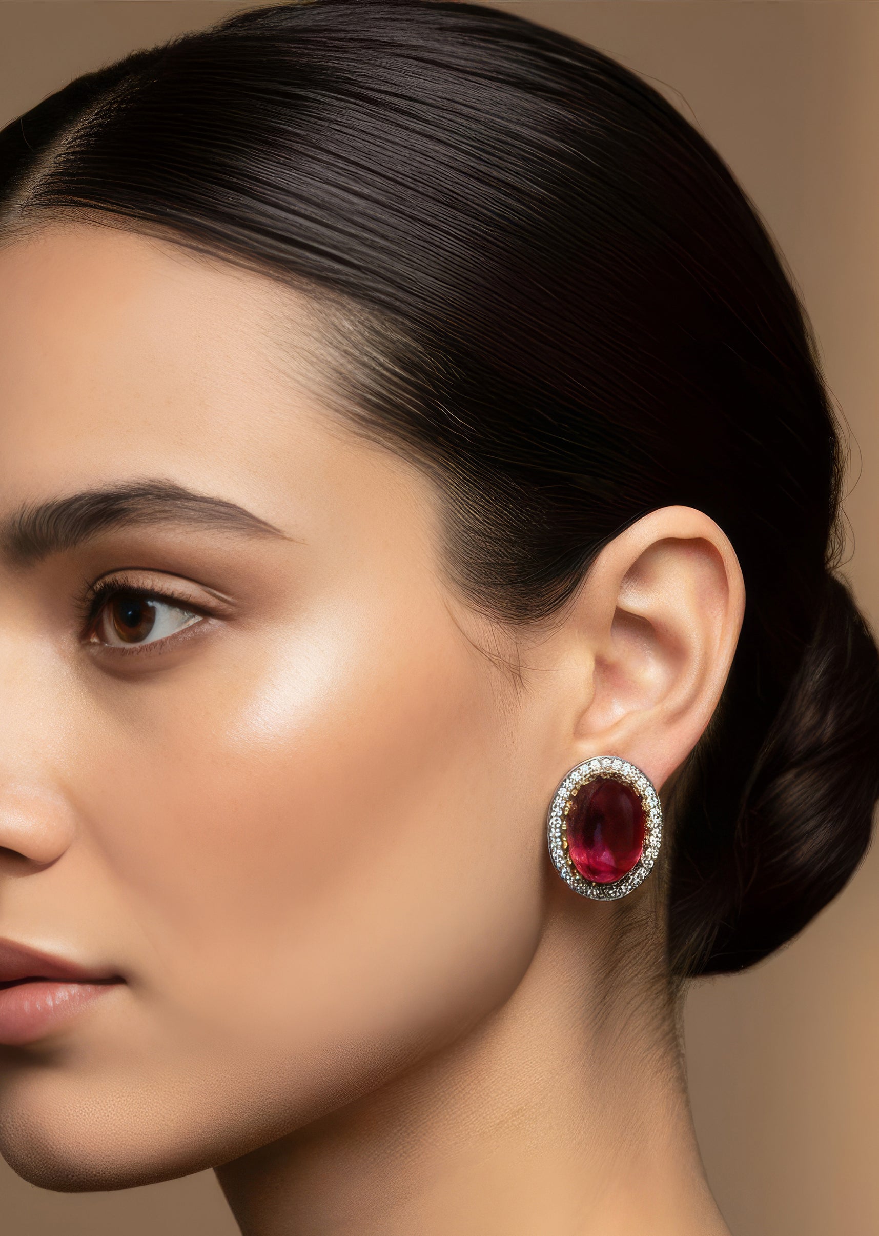 Rani Pink Studs In Kundan Jadau With Semi Precious Stones