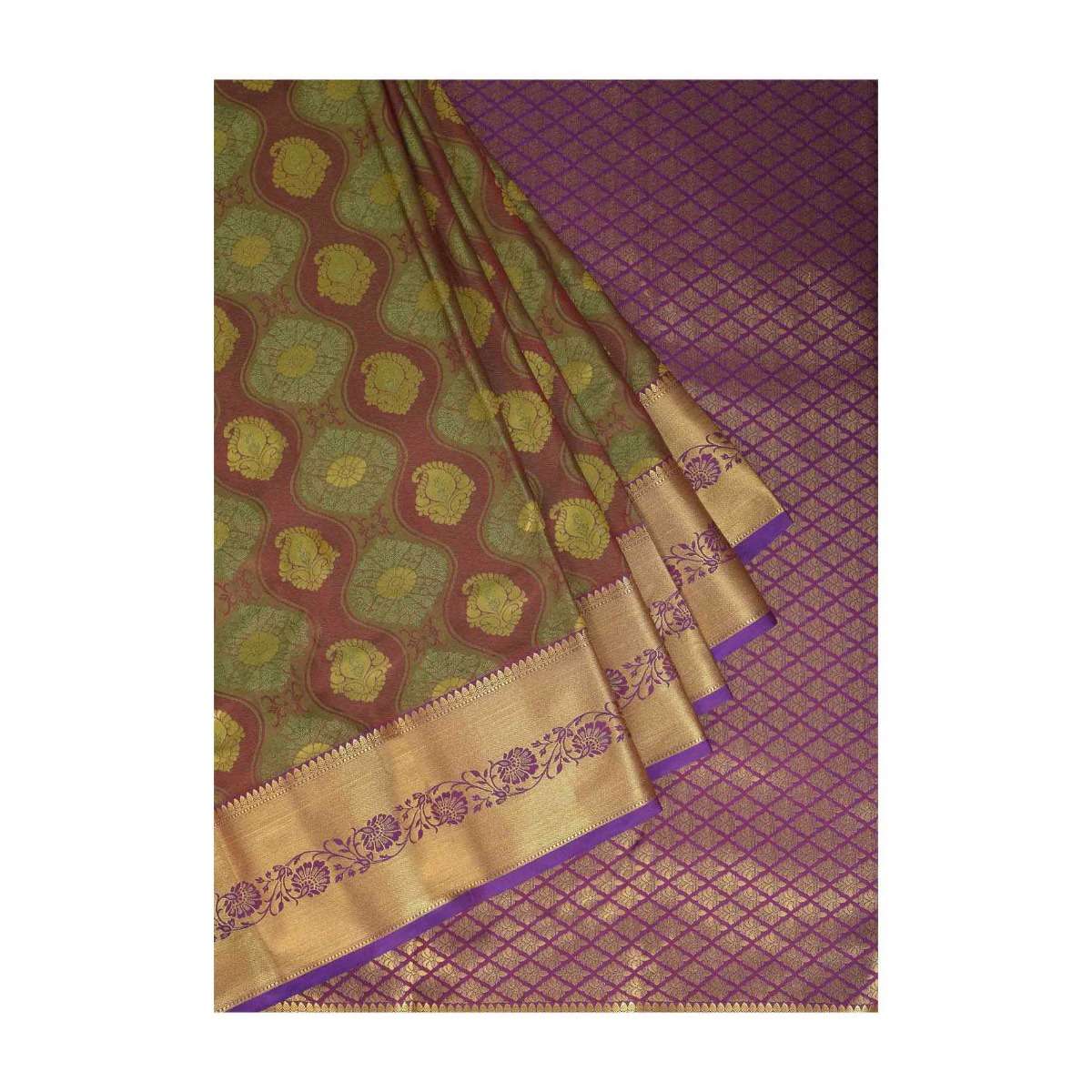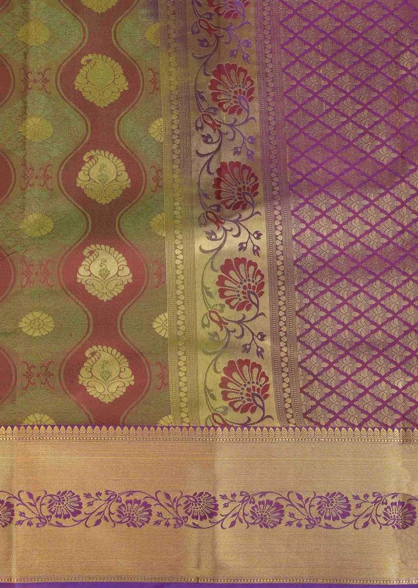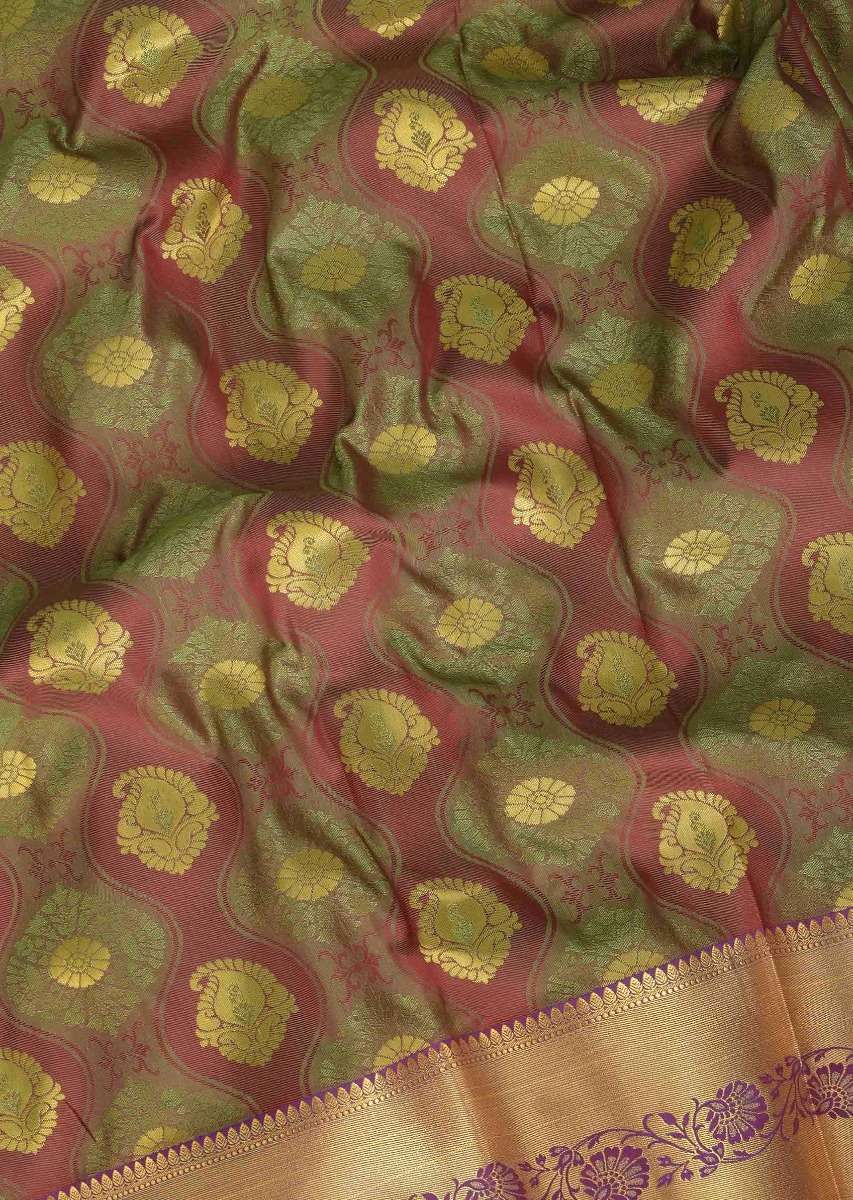 Red And Green Saree In Banarasi Silk With Paisley Floral Buttis All Over Online - Kalki Fashion