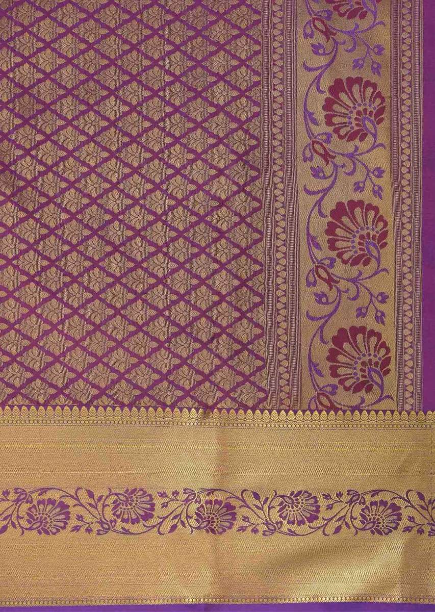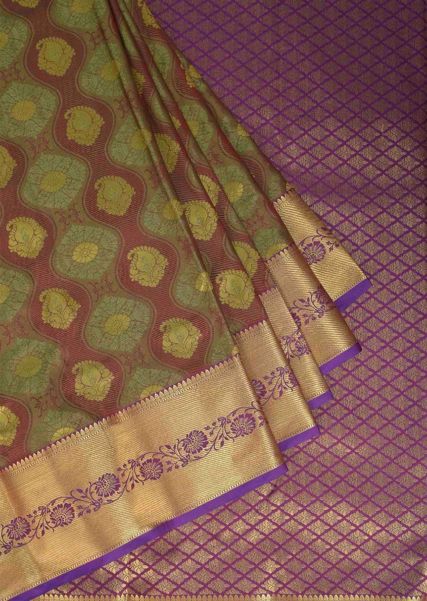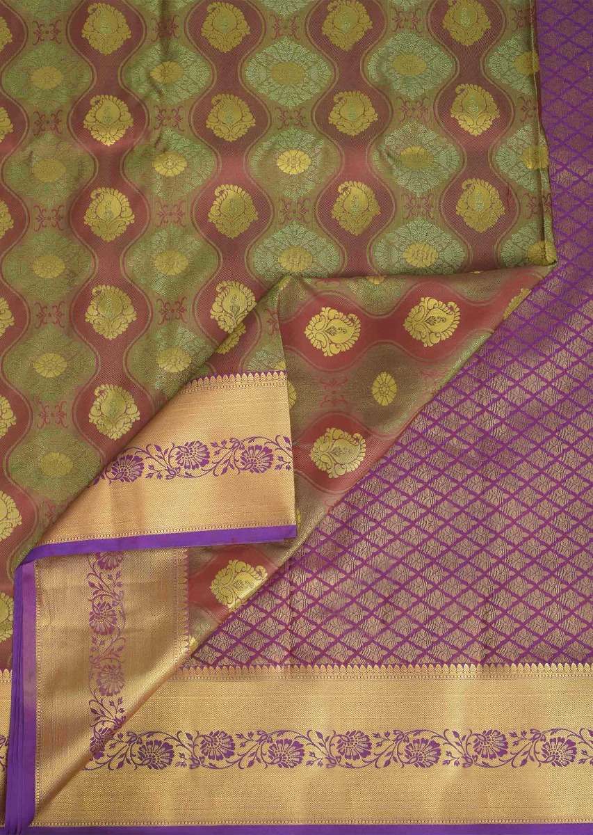 Red And Green Saree In Banarasi Silk With Paisley Floral Buttis All Over Online - Kalki Fashion