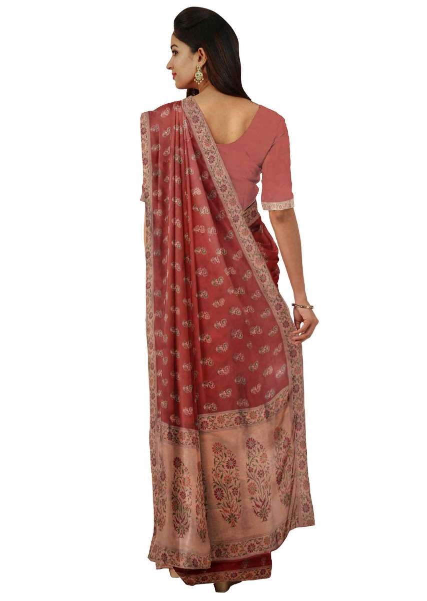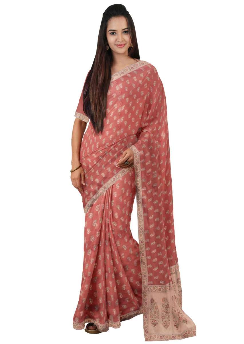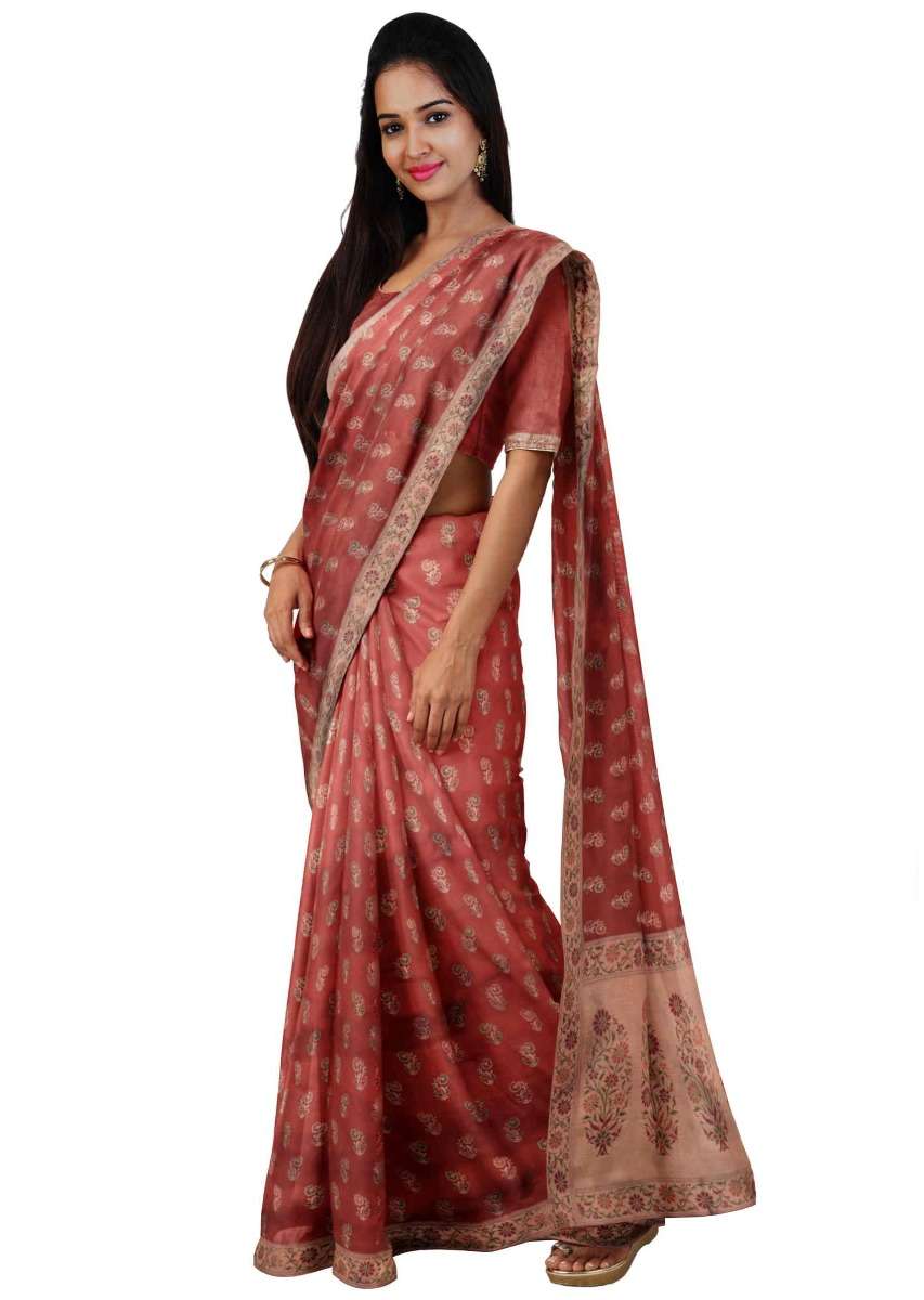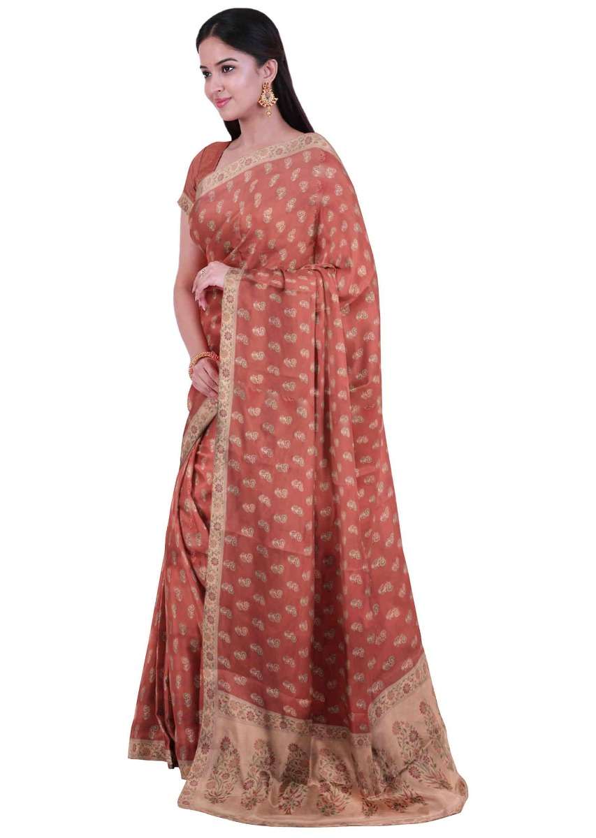 Red And Orange Banarasi Saree In Two Toned Silk With Matching Blouse Piece Online - Kalki Fashion