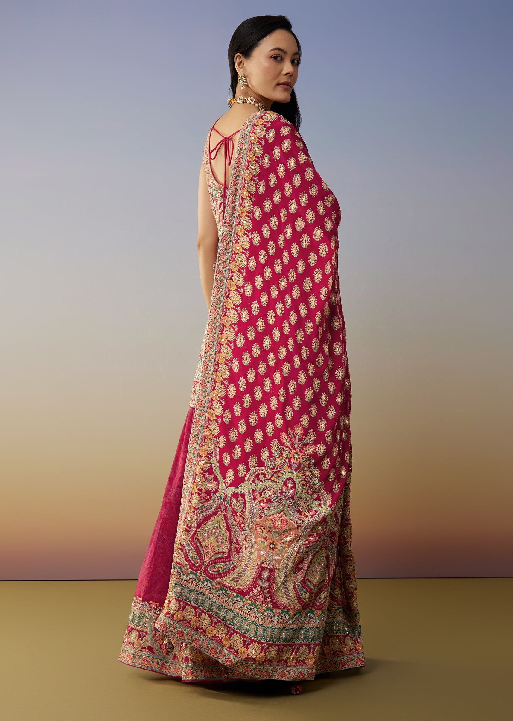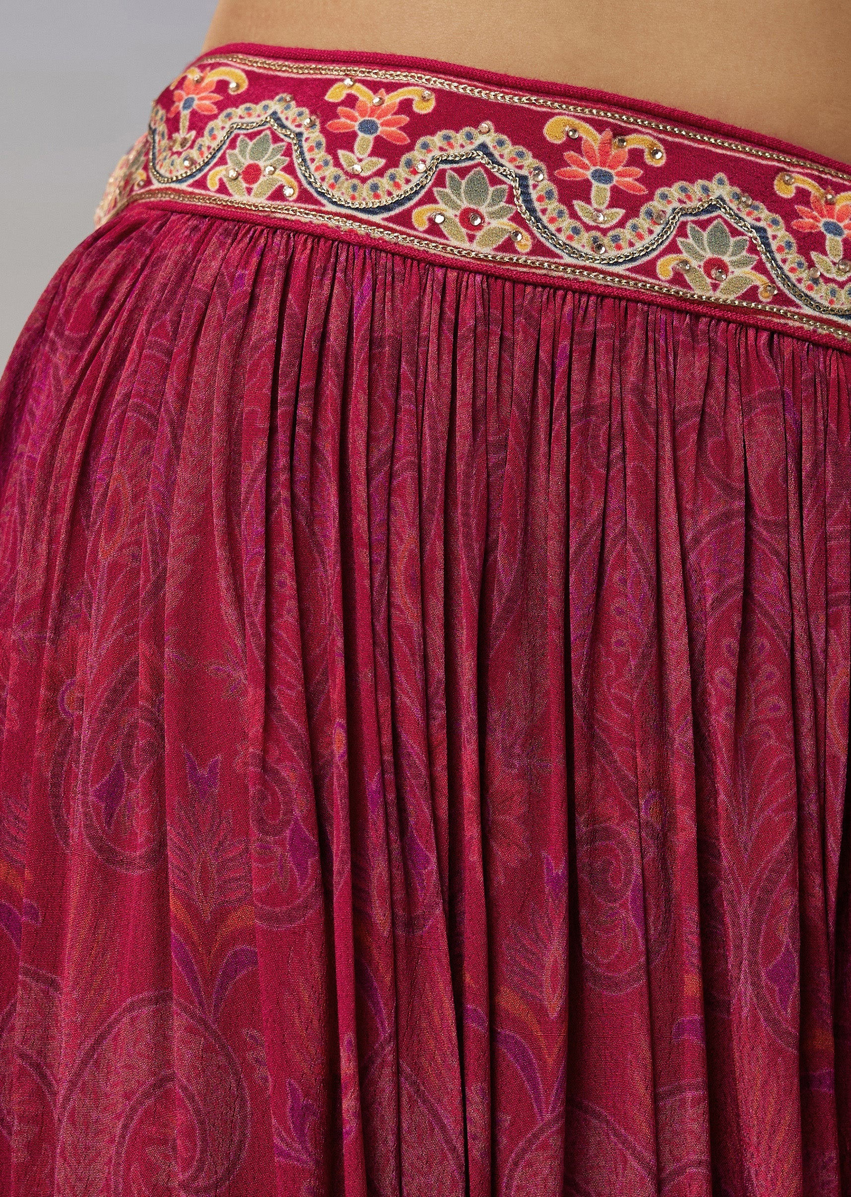 Red Crepe Palazzo Suits with Gotta and Stone Work