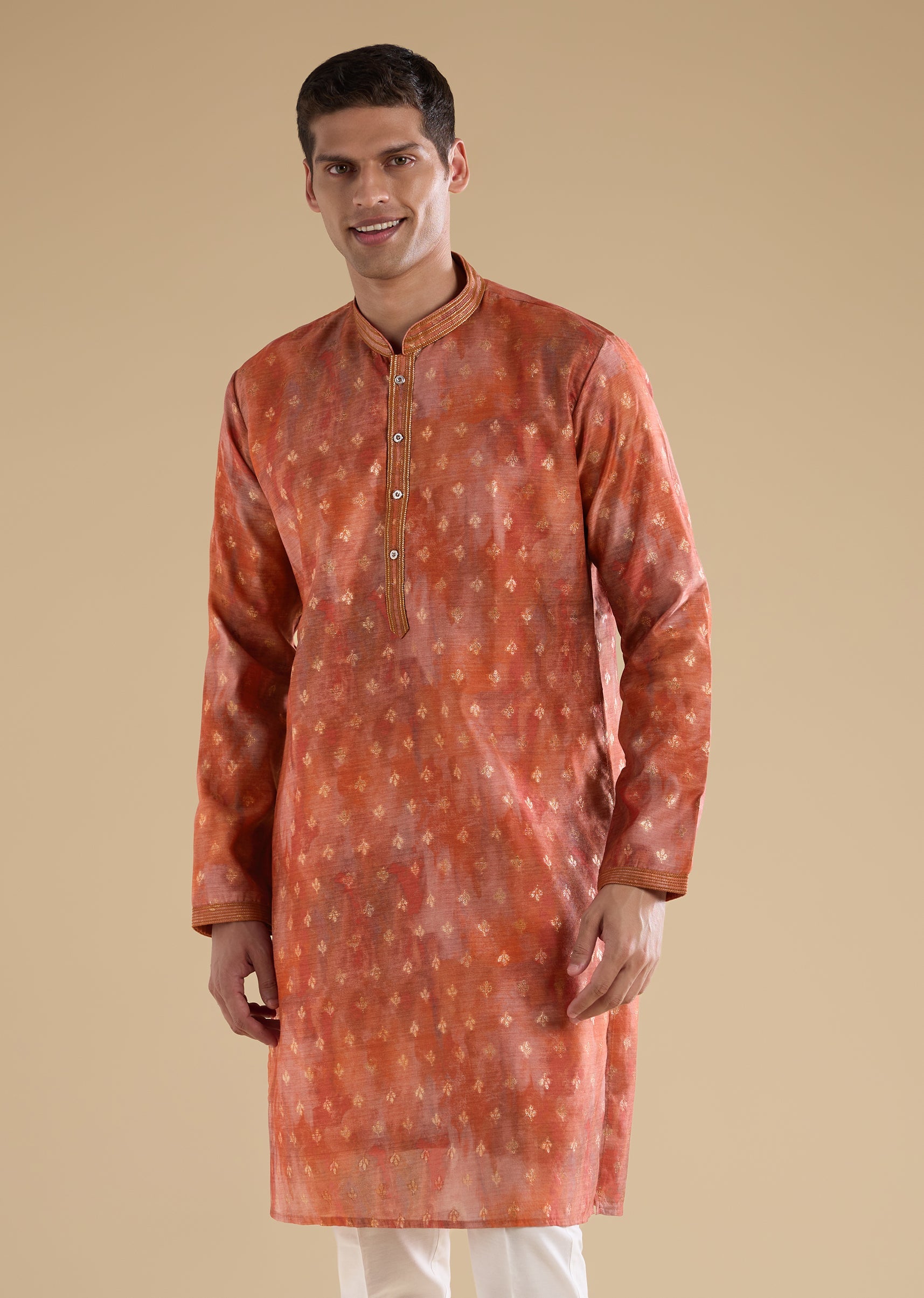 Bold and celebratory, this red kurta jacket set is crafted in rich art silk for festive elegance. The kurta features a mandarin collar, full sleeves, and side slits, paired with... More Product Details