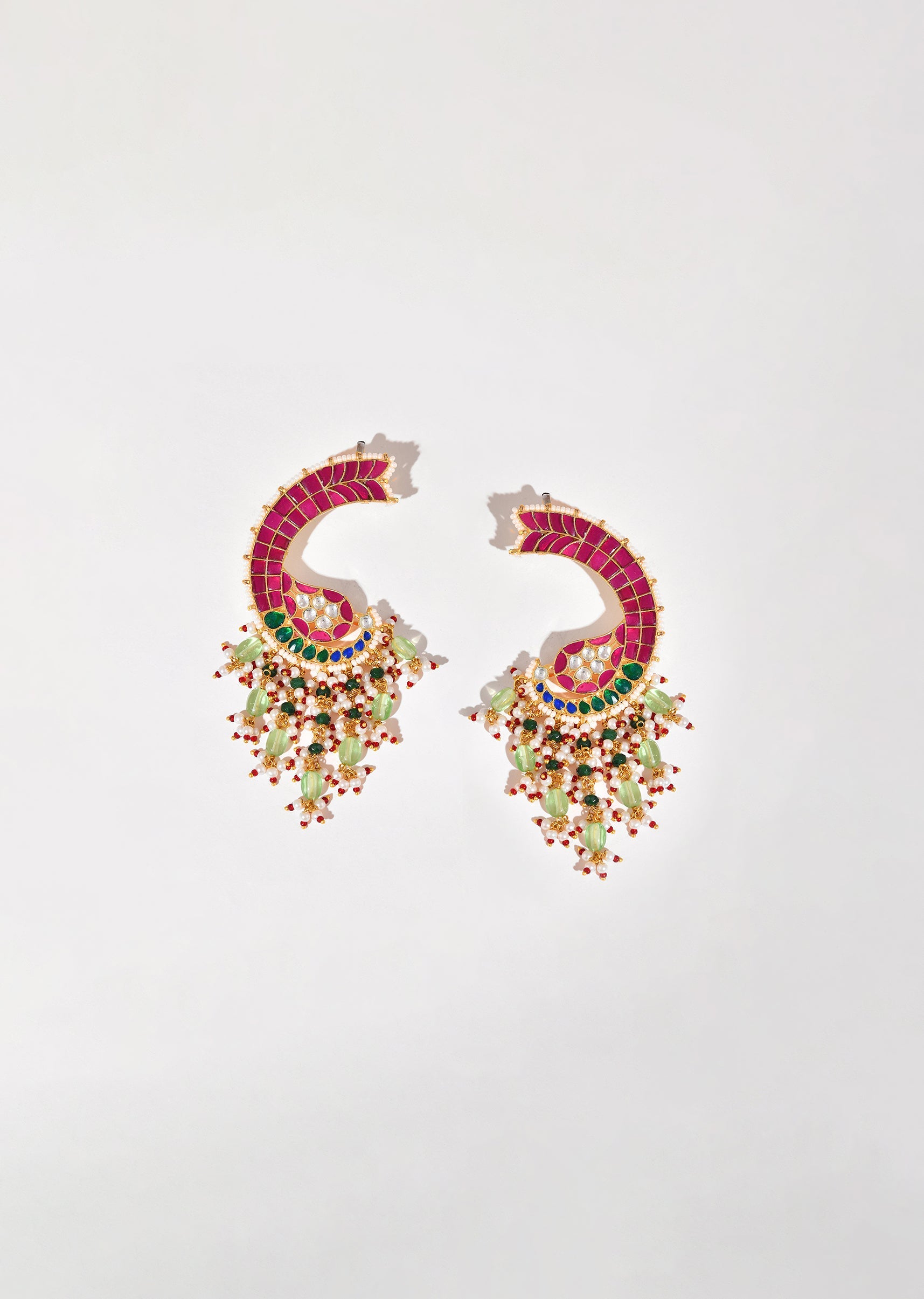 Make a bold statement with these red kundan ear cuff bead drop danglers, designed with intricate detailing for a striking festive finish. Perfect for weddings and celebrations, they add a vibrant pop of color and modern elegance to any ethnic look.Awarded as the Most Trusted Brand, we're delivering styles you love, just as promised.