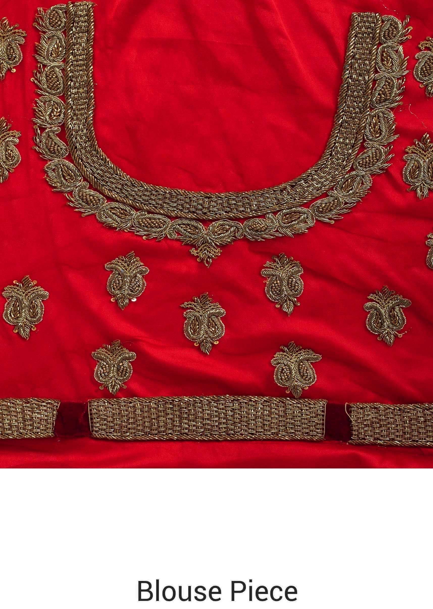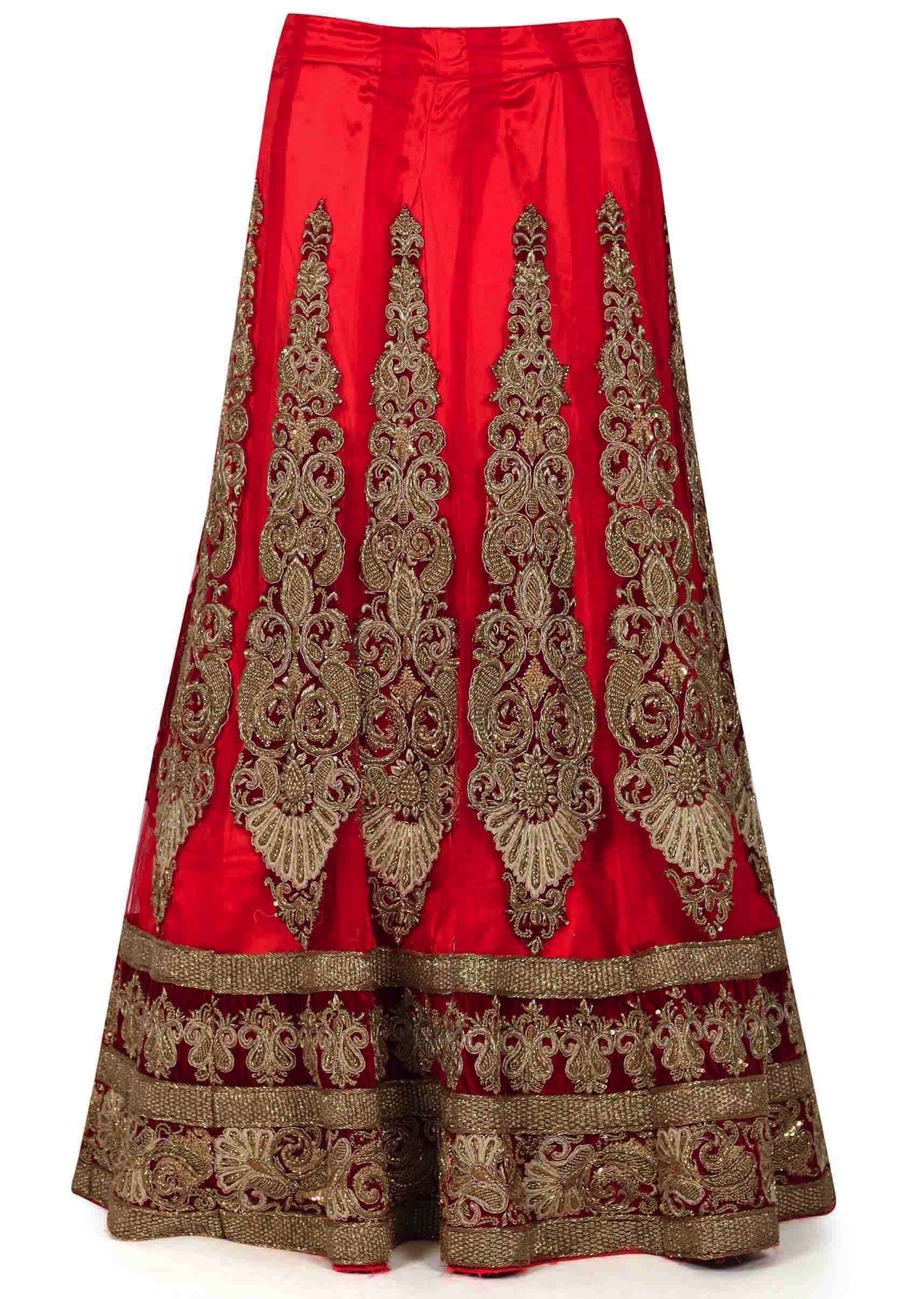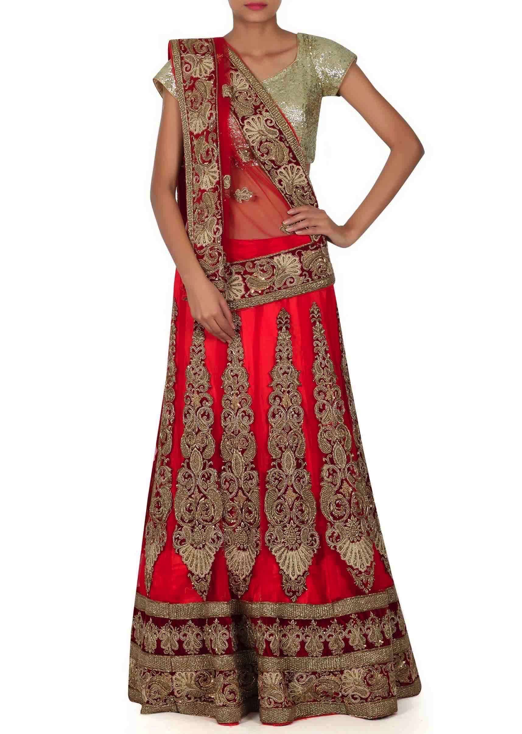 Red Lehenga Choli In Semi Stitched Form With Zardozi Patch Work Online - Kalki Fashion