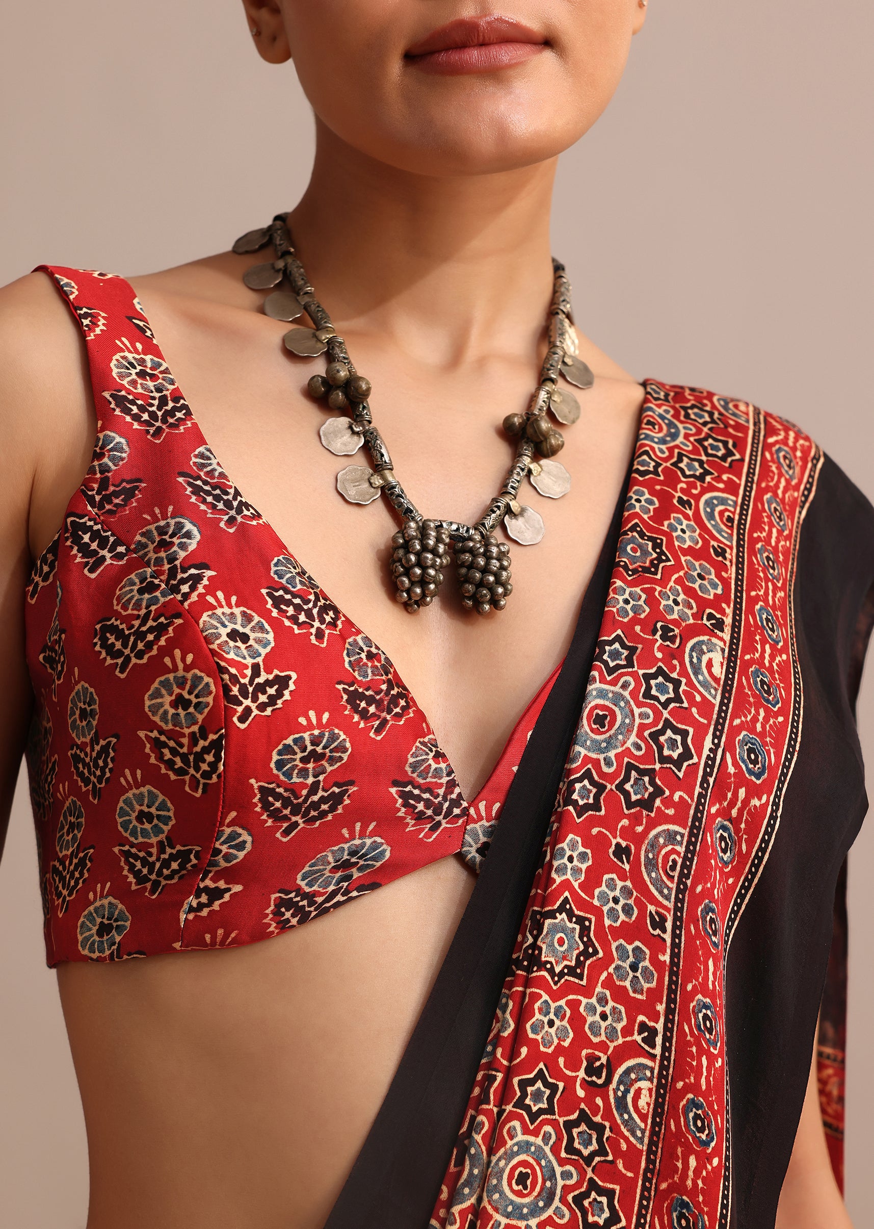 Embrace timeless elegance with our Red Modal Satin Ajrakh Handblock Printed Saree. Crafted from luxurious modal satin, this saree drapes gracefully, offering a smooth, lustrous finish. The striking Ajrakh hand block print in rich, deep red showcases intricate patterns that celebrate traditional craftsmanship with a modern twist. Perfect for festive occasions or special events. This saree comes with an unstitched blouse. Awarded as the Most Trusted Brand, we're delivering styles you love, just as promised.