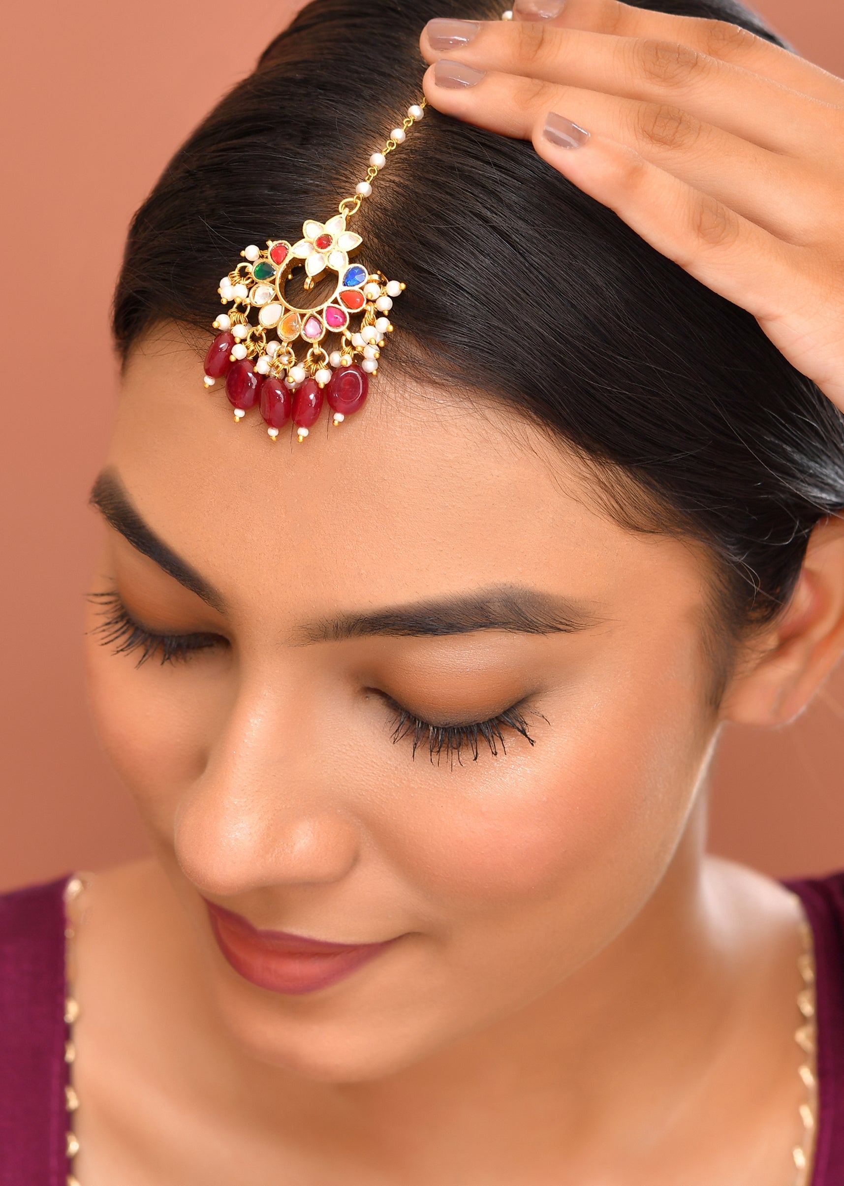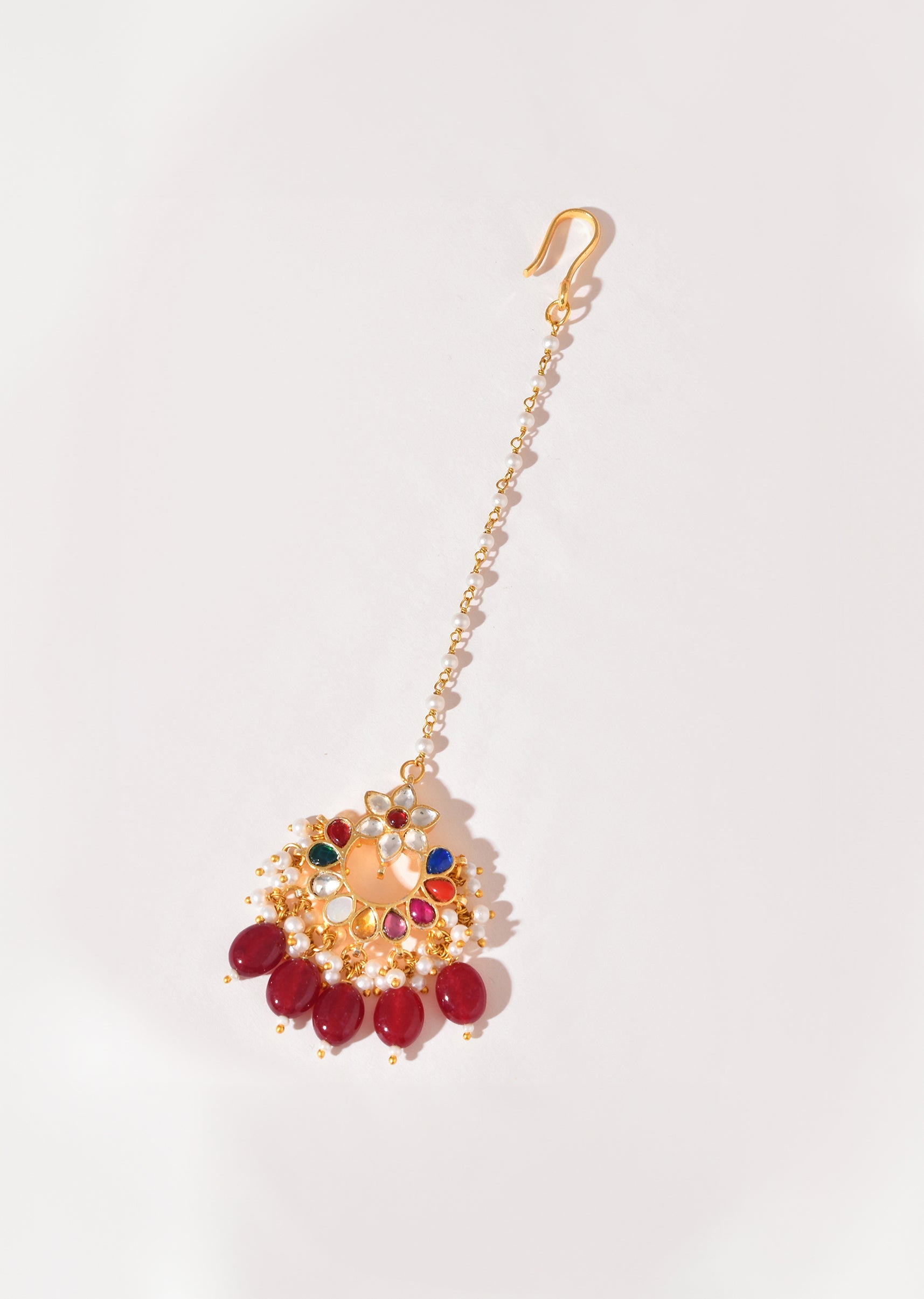 These red multi colored earrings feature intricate pachi kundan work for a festive and vibrant look. Perfect for weddings, haldi, or mehendi celebrations, they are ideal for bridesmaids or guests... More Product Details